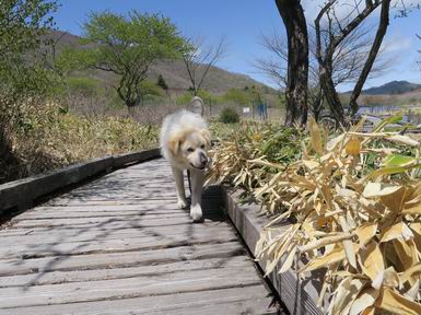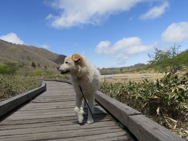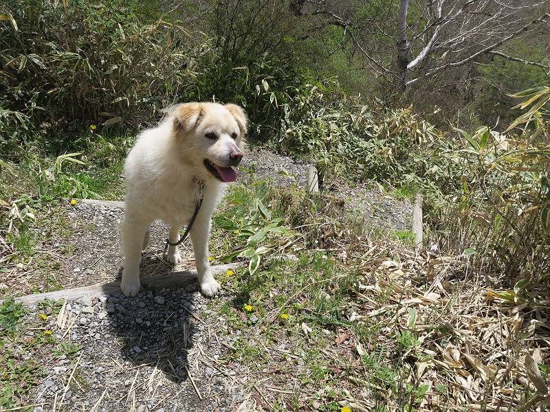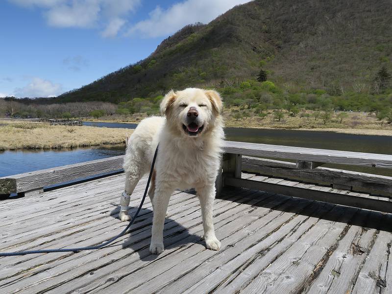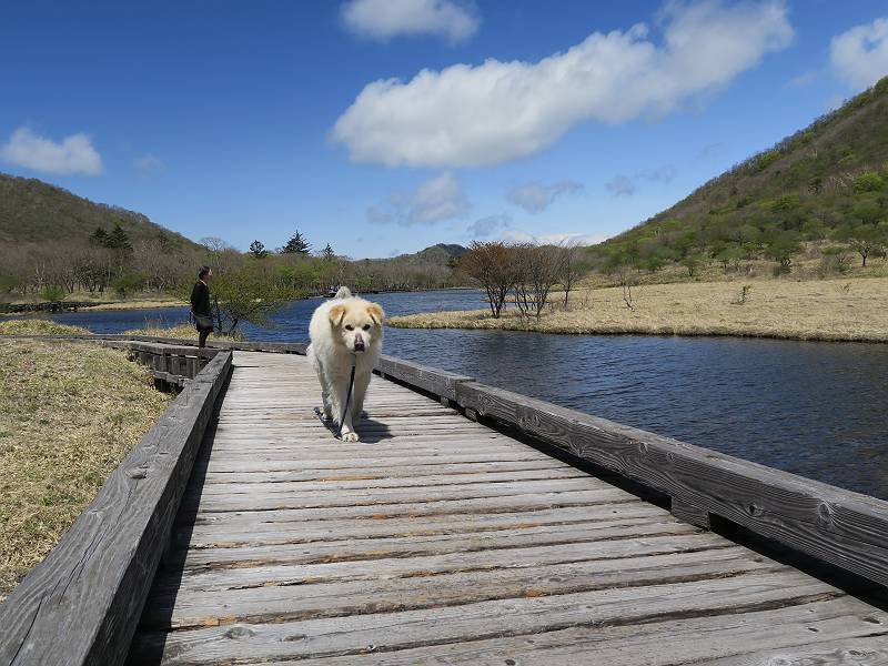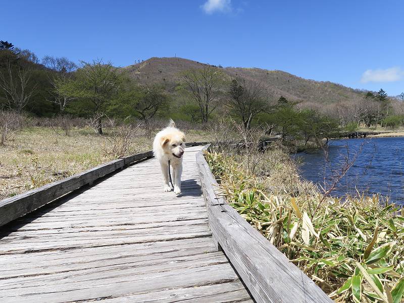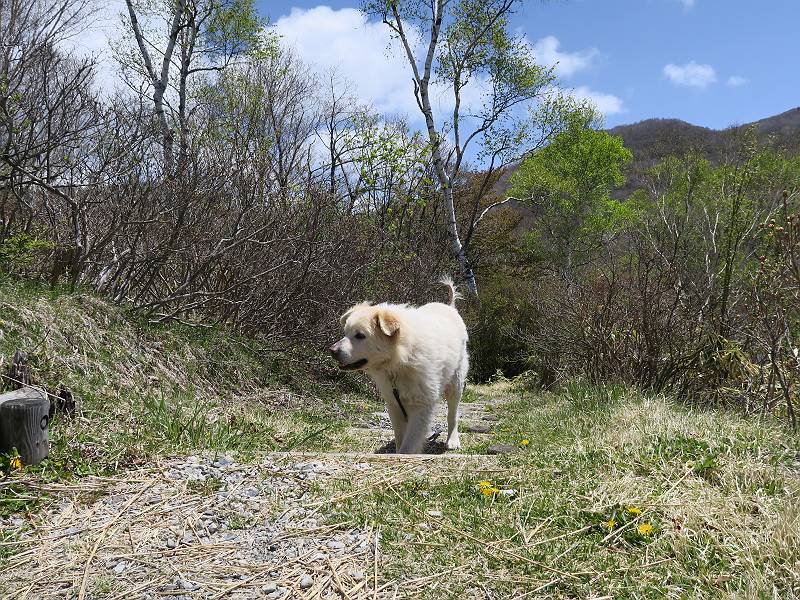 | 平成三十年五月十四日 日付順記録へ 8080221の雑記帳へ 12日にリタイヤした後、フクラハギがパンパンに腫れちゃって、昨日は全く動かず、今日は慣らしに忠治を連れて赤城山へ出かけました。負担にならない覚満淵を一回り、ちょっと戻ると、牧場に大きなミツバツツジ、見晴山を往復。忠治はすっかりご機嫌モード、車に戻りたくないしぐさ、エサでだまして山を下る。 覚満淵散策、草木も芽吹いて春の装い 寒さは感じませんが、強い風が吹いてました。 時々陰ります 地蔵岳はまだ茶色ですね 水辺にはオタマジャクシが集まって、真っ黒になってました 中学生が自然観察している以外は静かでした 時々藪に入って、自然の感触を楽しみました 覚満淵を一周して、見晴山へ移動しました ミツバツツジが1株だけ満開でした 坂道を上がると アズマ屋です その奥が見晴山です。つつじはまだ蕾でした ヤマカラシ? 咲きそうなヤマツツジ もう帰るのかな? ゆっくりしていこうよ、って感じ 道の駅に寄ってお弁当を頂きました、後ろは鍋割山です、緑一色です。 芍薬が咲いてました ヤグラの上からの景色がきれいでした 芍薬畑と風車です、見頃もあるし、これから咲く種もあります これで今日の散策はお終いです 日付順記録へ 8080221の雑記帳へ |