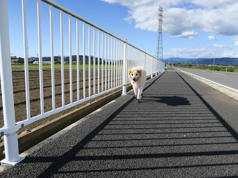 | 令和二年九月二十八日 日付順記録へ 8080221の雑記帳へ 猛暑、続いて長雨、やっと治まって本日は秋晴れ。カメラを腰にいつもの忠治の午後の散歩、エリアは工業団地造成前で、草ボーボー。野草化した花々が咲き乱れ、ワンコとぶらぶらするにはもったいない。 マルバルコウソウ ツユクサ 太田桐生IC調整池付近を出発、野生の花を眺めながらブラブラ 見上げれば青い空に白い雲 足元にはヌスビトハギ、足を踏み入れれば、忠治も私もベッタリついてしまう ICからR122に沿って南下、北方向に赤城山を眺める、一番右が黒檜山 ヒガンバナがあちらこちらに これはヨメナかな? もう少し先で右折 雲が綺麗だな R122の1本西側の道、袈裟丸山を遠望する、陽ざしは弱くなったが路面は35-40℃、忠治は防熱スタイル靴 路地を抜け さざえ堂へ立ち寄る、山門&仁王像、奥が本堂 本堂、脇の手水舎(ちょうずや)で水を頂く 山門の南横に鐘突堂 駐車場の横を通り南に進み回り込んで先ほど通った道へ 金山の東を進んでます 造成地に入りました、野生化したニラです センダングサ(ひっつきむし)に止まったモンシロチョウ R122に沿った道で車がほとんど通らないので安心して歩けます 間もなく出発点です、この時間帯は散歩する人も犬もいません。 終点です、遊びながら、ゆっくり歩きましたので楽しかったようです。 日付順記録へ 8080221の雑記帳へ |