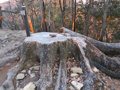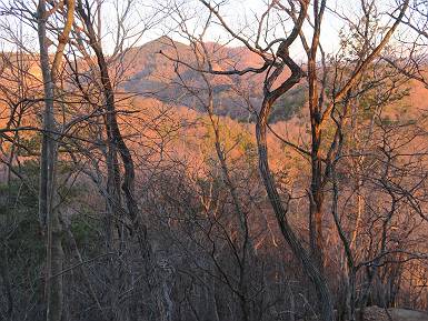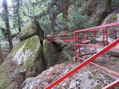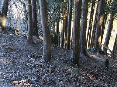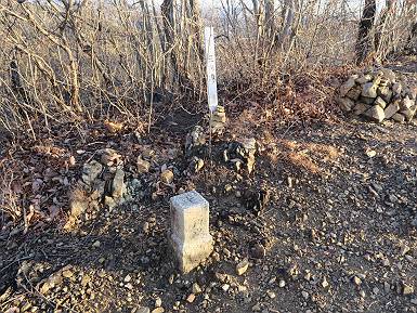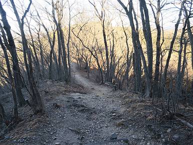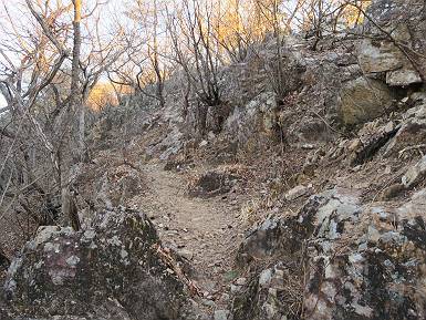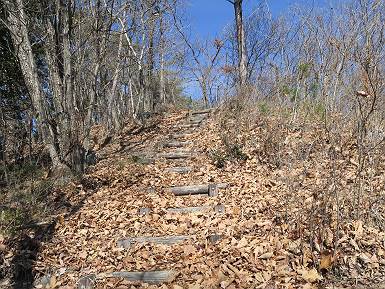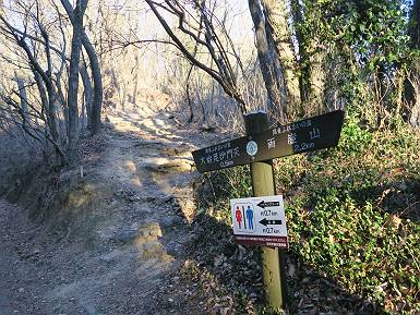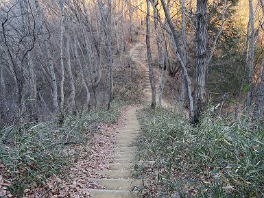 | 山行日 2022年1月19日 晴れ 単独 コース 概略図はこちら 織姫神社前→織姫神社→両崖山→林道横断→大岩山登山口→大岩山→石尊山(行道山)→行道峠→ 縦走路出合→馬打峠→三角点388m→藤坂峠→巨石群湯の沢分岐点→厳島神社→大鳥居→飛駒方面合流点 →本城一丁目→織姫神社前【総距離≒28km】 雪山も歩きたいけど、山道のメニューも程々に入れないと、老化は避けられない。織姫神社-名草厳島神社、山道16kmは良いトレーニングコースだ。両崖山で日の出を見て、延々と続くアップダウン、寒中であるが大汗をかいた、両崖山までは早朝ウォークの年配者たち10人ほどに会っただけ、静かな山道を北上するだけだった。 6:06織姫神社前出発 織姫神社 夜明けの市街地を展望 大坊山方向に陽が昇るようだ 縦走路へ 日の出方向が白々してきた 両崖山へあと1.3km ギリギリ日の出に間に合った、新しくなった展望台 日の出、大坊山のとなり、6:52 山頂直下の東屋 6:57両崖山着 山頂の大きなタブノキの切り株2つ 大岩山を左手に縦走路を下る 次の小ピーク、両崖山0.4km、毘沙門天2.3km 南西方向に天狗山 西に浅間山 東に筑波山 アップダウンして 7:21,雷電神社分岐 正面に大岩山 階段を下る 鞍部の横に地蔵尊 登り返して休憩所 下って 林道切通し アップダウン、アップして 7:50,三角点のある小ピーク 富士山遠望 下って、林道を50mほど歩き 再び山中へ 祠が2か所 急坂の向うに大岩山 8:08,林道終点に出る、小休止 大小山方面 女峰山 常緑低木をくぐって 8:29,大岩山山頂 別名剣ケ峰 隣の展望ピークから袈裟丸山、白いな 赤城山も白い 浅間山 八ヶ岳 富士山 アップダウンを繰り返し 8:46、行道山 袈裟丸山 袈裟丸山〜日光白根山 日光白根山、太平山 下って 浄因寺分岐、ここは直進して尾根伝いに進む 小ピーク 少し先で右方向に曲がる 緩いアップダウンがあり 急降下する 伐採ヶ所から男体山、女峰山 筑波山 少し下って鞍部に出ると そこは行道峠、9:17 少々登って ここで右に曲がり、ちょっと下って、軽く登り返すと 9:27、縦走路に出る、休憩 この辺の案内図あり 少々道なりに北進 下って9:44,馬打峠 道路を斜めに横切って縦走路へ 道なりにアップダウンを繰り返し 10:24,三角点のあるピークへ、休憩 名草巨石群まで6.5kmとある ここからもアップダウンが連続する 祠もあり 藤坂山の山名板あり やっと、道路が見えた 11:23,藤坂峠に出る、巨石群まで2.3km 11:57,やっと分岐点へ、左松田湖、右巨石群 長い階段を下って 林道終点へ、巨石群まで0.6km 大鳥居からの参拝道にでるっと 12:16名草弁天着 名草弁天 12:32,入口の厳島神社大鳥居へ ここから道路を歩いて織姫神社前へ戻る 12:47,ここを左折 13:43、飛駒分岐点 旧道分岐 高速道を抜ける 利保町三丁目 14:56,本城一丁目 15:24,織姫神社前着 総所要時間は9時間18分、山靴の路上歩きで大きなマメができました。 日付順記録へ 8080221の雑記帳へ |