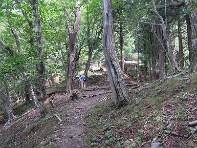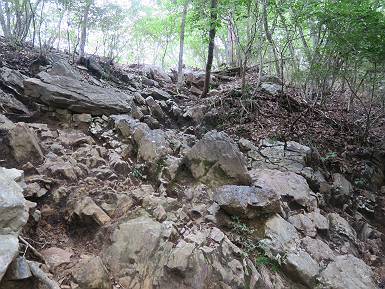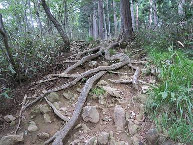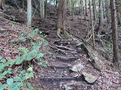 | 山行日 2021年8月26日 晴れ 単独 コース 吾妻公園駐車場→吾妻山→肩の広場→鳴神山→肩の広場→鳴神山登山口(駒形)→白滝神社入口バス停 先週予定していたが、雨で中止、本日は雷予報は出ていたが、蒸し暑い中の山行だった。頭で10人ほど、尻尾で5,6人会ったが中間では誰にも会わなかった、静かなウォーキングだった。概略、標高差1000m超、時間は山間部が6時間14分(10km+3km)+路上が56分(4km)、トータル7時間10分(17km)だった。 5:45吾妻公園駐車場発 5:59吾妻山登山口 6:04トンビ岩 岩々の道を抜け 尾根に出る 6:30-6:37吾妻山山頂、鳴神山まで8.6km、3時間50分 桐生市街地を望む 次のピーク、女山 木段、アップダウンが連続 7:00村松峠、鳴神山まで7.6km 西斜面が開けて 赤城山が顔を出す 7:18標高486m、鳴神山7.06km、3時間10分 赤城山、雲多し 自然観察の森分岐 イノシシの落とし物 7:37祠 7:38西方寺沢の頭、鳴神山6.3km、2時間50分 7:50-7:57岡平、 ホトトギス 8:23大形山681.5m、鳴神山5km、2時間20分 鳴神山4.5km、2時間10分 8:37金沢峠、鳴神山4km、2時間 樹間に鳴神山かな? 祠 直ぐ先が三峰山697m、9:05-9:16休憩、鳴神山2.9km 9:41三角点 10:35肩ノ広場、鳴神山0.125km、5分 10:44-10:58鳴神山山頂 ヒョウモンチョウ 11:05肩ノ広場 駒形登山口に下る レンゲショウマ(柵の中) 下って、下って 11:30中間点 11:59駒形登山口 道路を歩いて 12:20吹上バス停、12:55白滝神社入口バス停(ゴール) 総所要時間は、7時間10分、濡れタオルを絞りながらのアップダウンだった。 日付順記録へ 8080221の雑記帳へ |
