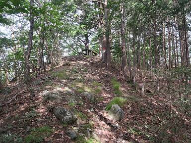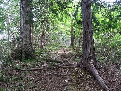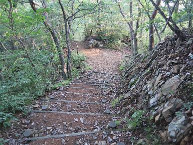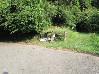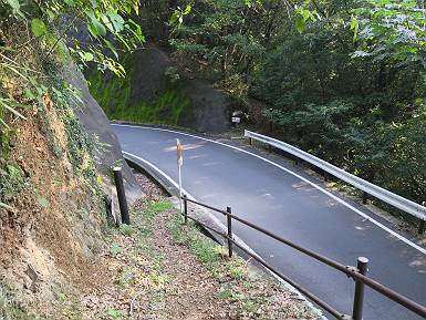| 山行日 2018年8月31日 ほぼ晴れ 単独 コース 織姫神社前→織姫神社→両崖山→切通→三角点274.5m→車道→車道終点→大岩山→行道山→浄因寺分岐→行道峠 →縦走路合流→馬打峠→三角点388.0m→藤坂峠→松田町分岐→厳島神社参道→厳島神社鳥居→県道218号線合流 →飛駒分岐→利保町3丁目→本城1丁目→織姫神社前 トレーニングを兼ねて、足利市の山を織姫山から名草の厳島神社まで歩き、帰路は路上を歩いた、距離は27-28km、まだまだ厳しい残暑だった。5:25織姫神社前の駐車場、5:28織姫神社、6:07両崖山、ここまでは地元の方の散歩コースのようだ、20人ほど会った。この先は全く会わず、6:33切通、6:50三角点、6:55車道、7:06車道終点(毘沙門天)、7:17-7:24大岩山。 出発点、織姫神社前 石段を上って織姫神社 山荘の脇を通り 橋を渡って 尾根伝いに進む おなじみのメンバーらしい、早朝の一汗かいて・・・ 小さいアップダウンが続いて 両崖山着 次のピーク大岩山を左手に見て 下って擬木の階段を下り、アップダウン 切通を斜め横断して再び尾根筋へ 野生種のキキョウが咲いていた、二番花かな? 緩やかにに進んで 三角点、274.5m ちょっと下って車道へ すぐ先でまた山間へ 間もなく車道終点に出て、大岩山への登山道に入る 雑木林の中をジグザグ進んで大岩山、小休止 下って、7:41浄因寺分岐点、今日はパスして、尾根伝いに進む、8:01行道峠、8:11縦走路と合流、8:24馬打峠に出る。今の季節歩く人が少ないせいか、蜘蛛の巣に悩まされる、顔にベタ、ベタ、ベタ、タオルでそのたび拭きとるが気持ち悪いものだ。9:04-9:10三角点388.0m、名草巨石群まで4.7km、9:55夏草茂藤坂峠、デッカイ猿が4,5匹遊んでいた。 2つ3つ小さなピークを越えると行道山 少し下って浄因寺分岐点、ここは真っすぐ尾根伝いに 尾根は右にカーブし急降下 緩やかになると行道峠に出る かわいい手作りの道標あり シラヤマギク一株 尾根なりに進むと縦走路に出る、名草巨石群7.2km 間もなく馬打峠で車道を斜め横断 人工林、雑木林が続く ちょっと急坂を上って 三角点388.0m、小休止 名草巨石群まで4.7km 間もなく右手に石の祠 下って藤坂峠を斜め横断 丸太の階段を上り返して、しばらくアップダウン、標高点426mのベンチで小休止、10:24-10:35。鞍部で松田町への道ウィ分け、右手に下って参道に出る、10:52間もなく厳島神社鳥居。 標高点426mのベンチで小休止 その先で松田町方面左に分岐 右に丸太段を下って 参道に出る 参道を進んで 厳島神社鳥居、ここから車道を出発点まで進む ここから車道歩き、11:07県道218号線に出る、12:08飛駒方面分岐、12:55利保町3丁目、13:22本城1丁目、13:52織姫神社前に戻る。総所要時間は、8時間27分、水1500cc、梨1ケ、汗だくの一日だった。 突き当たって左折、ここから県道218号線 江保地橋から名草川の河川敷で遊ぶ子供たち 飛駒方面分岐、市街地まで8km 利保町3丁目 本城1丁目 用水に沿って進む、一帯は一方通行 織姫神社を東側から回り込んで 出発点の織姫神社前へ 日付順記録へ 8080221の雑記帳へ |