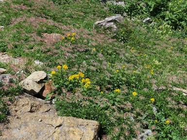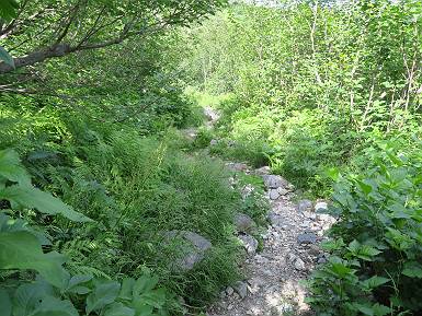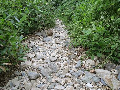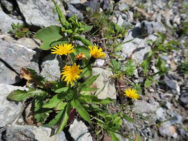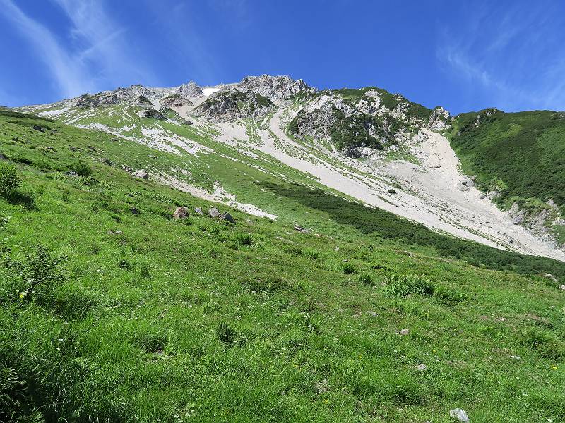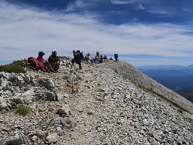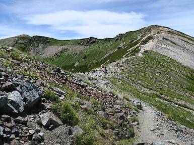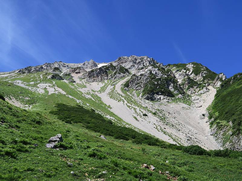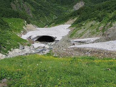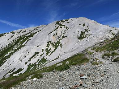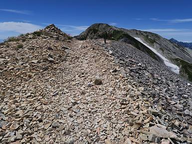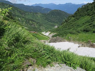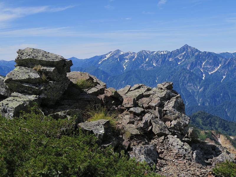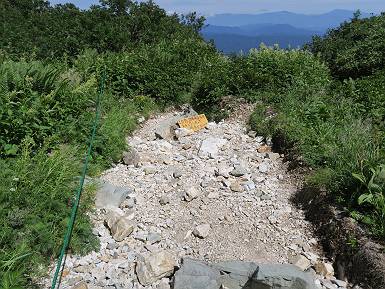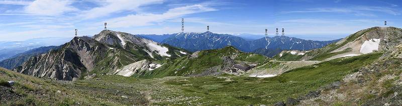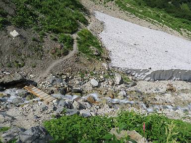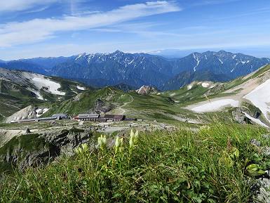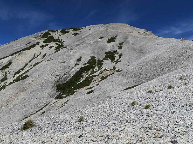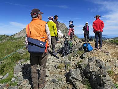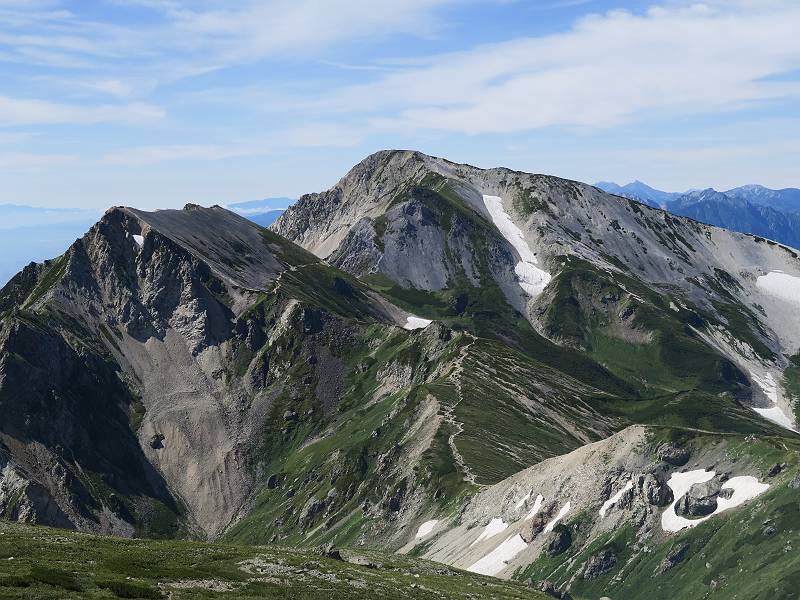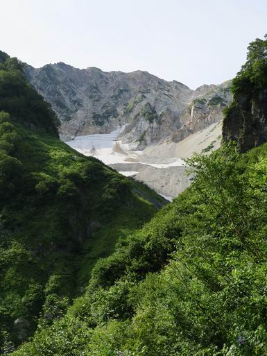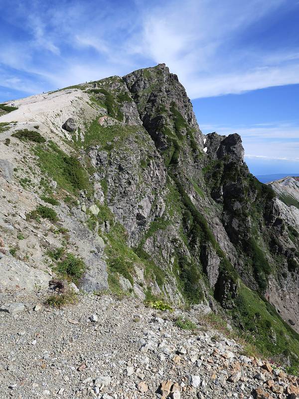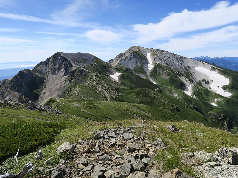 【後編:白馬岳〜鑓温泉〜猿倉】 【前編:猿倉〜白馬岳】へ ミヤマアケボノソウが咲き残っているかな、と思い迂回してみたが、終わっていた、9:03-9:07白馬山荘、9:16旭岳分岐、9:28丸山、9:50杓子岳との鞍部、10:12-10:21巻道分岐点で小休止、若いペアーが抜いていった。立ち上がって二人を追う、10:37-10:41杓子、追いついたが、あとが続かない。南方向に緩やかに下る、10:52巻道と合流、その先で登り返し、11:15-11:23標柱(?)の脇で、景色に見とれて小休止、次は山頂までノンストップで、11:44-11:53鑓ケ岳、キツーイ。 賑わう白馬岳の山頂を後に、ちょっと下り、一帯の開発の祖のレリーフの前から縁に沿って下る 山頂の南側の顔を眺める 画像クリック拡大 ![]() 山荘の南側を回って往路に出る 山荘の前から一望する 画像クリック拡大 ![]() これから向かう杓子岳と鑓ケ岳 西に旭岳 剱岳と毛勝三山の間、遥か遠くに白山を展望する 登山道に戻って、右手に清水岳への道を分け 左下方にテン場を ずっしりした感じの旭岳、右奥に雪倉岳 ちょっと拡大して、右に雪倉岳、左奥に朝日岳 一帯に多い黄色の強いトウヤクリンドウ 丸山山頂、山座同定中?、こりゃ、失礼しました 丸山山頂から杓子岳&鑓ケ岳、直に取り付けそうですが鞍部まで150m下り、200m登り返す 同、旭岳 同、白馬岳 丸山を下って鞍部付近から杓子岳&鑓ケ岳 同、立山&剱岳 この辺まで離れると、バカデカイ山荘も山本体に飲み込まれ、景観への影響も緩和される この辺が鞍部かな? 大雪渓を覘き込む いる、いる、いる・・・、ざっと50-60人見えますね 杓子岳巻道分岐点、ここで小休止 富山湾&能登半島、直線距離では30km、60kmほどかな グズグズの小石の道を登り返して杓子岳山頂着 山頂北側突端から白馬岳、小蓮華山 突端から北側一望 画像クリック拡大 ![]() 南方向へ、ヤセオネ下る、ガスがかかると危なそうな道 山頂からちょっと下って振り返る、杓子岳と左奥の白馬岳 巻道と合流して 鑓ケ岳へ登り返す 杓子岳を振り返る 左に清水岳〜旭岳 清水岳〜杓子岳 画像クリック拡大 一見、緑豊かに見えるが、厳しい条件下にあり ちょっと頑張って、標柱(?)の脇で小休止 真下に白馬村の中心部 東方向を一望 画像クリック拡大 雨飾山〜浅間山 同、杓子岳、白馬岳 清水岳〜旭岳 回り込むように進んで、鑓ケ岳山頂分岐点 槍ヶ岳方向一望 画像クリック部分拡大 立山方向一望 画像クリック部分拡大 鑓ケ岳山頂到着 白馬岳方向一望 画像クリック拡大 ![]() 杓子岳、白馬岳、小蓮華山 南〜西方向展望 画像クリック拡大 ![]() 白馬岳から鑓ケ岳まで、休憩を入れても結果的には2時間30分ほど、決してペースは遅くはない、縦走路を下り小ピークを巻いて、12:12主稜線からの降下点を左に折れる。ジグザグ下って、あっという間、12:31大出原、残り花を観ながら灌木帯の入り口まで、ここでストックをザックに、クサリ場の通過に備える。危険度からしたら、ここが一番いやらしい場所、まだ安心できる段階ではない、13:43-13:59鑓温泉で足湯につかる。 南下途中から鑓ケ岳を振り返る 鑓温泉分岐点 鑓ケ岳を見上げながら大出原へ下る 画像クリック拡大 ![]() 花はほとんど終わり、クルマユリ、ミヤマキンポウゲは真っ盛りだった エゾシオガマ ミヤマアキノキリンソウとチングルマの綿毛 鑓ケ岳を見上げながら クルマユリとミヤマキンポウゲの群落 一休みして、鑓温泉への急坂に備える クサリ場が連続、ツルツルの岩 鑓温泉が見えても、まだしばらく危険地帯 足湯に入って、猿倉までの長い道程に・・・ 温泉は、今の時間、もう混雑している様子、皆若い、テン泊も沢山いるようだ、一人ジジイが足湯につかっていると、「歳いくつ?」、「尾畠春夫さんより2つ若いんだ」、分かったかな? さあ、出発だ、あとコースタイムで3時間、ダラダラ道の下り、17時前後に着けるだろう。鑓沢、杓子沢を渡るのを心配したが、雪上は通らず、橋がかけてあった。上ってくる若い団体、台湾からだそうだ。この時間、下る人は少ない、ヒーヒー言いながら下る人にも会う、14:46杓子沢、15:03三白沢、15:33小日向のコル、辿った三山を眺め、あと残りの行程1時間半、ガンバルぞー。 鑓沢を越え 灌木の林を抜け 杓子沢を渡って 少々登り返した所から杓子沢を眺める まだまだ続く湿地帯の中、花を眺めながら・・・ ウメバチソウ オオバギボウシ シモツケソウ サラシナショウマ 少々上って、小日向のコル イワショウブが点々と 白馬三山を並べて一望 画像クリック拡大 ![]() 悪路が延々と続く 小さな沼が点々と道沿いに ガクアジサイはきれいだった やっと林道へ 大疲れさま、猿倉の駐車場着 16:51鑓温泉分岐、17:01猿倉荘、17:05駐車場、大へんお疲れの人にも会った、私は、やっとこかな、でも明るいうちに帰れた、総所要時間は、13時間18分、山地図の設定は甘いようだ。 【前編:猿倉〜白馬岳】へ 日付順記録へ 8080221の雑記帳へ |