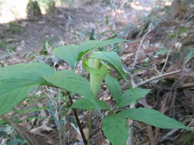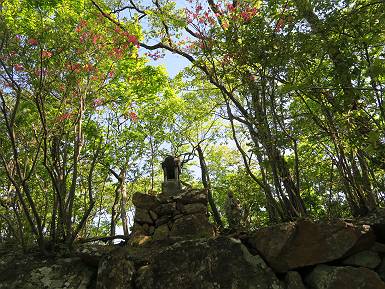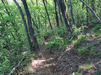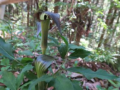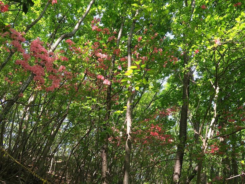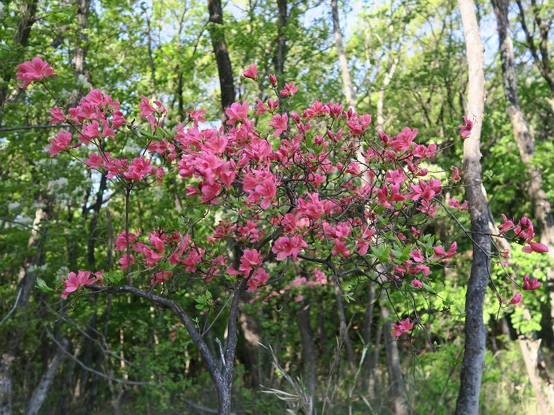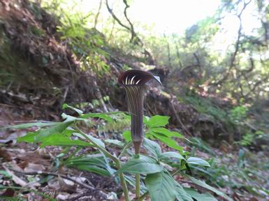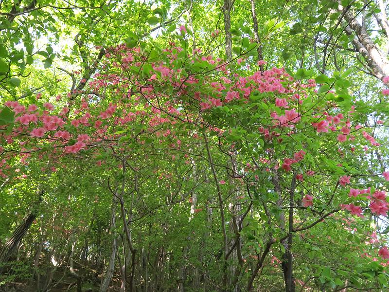 | 山行日 2021年4月21日 晴れ 単独 コース 概略図はこちら 叶花集会所P→カタクリ群生地→尾根出合→ヤシオ山→白葉峠分岐→姥穴山→白葉峠分岐→白葉峠→白葉バス停→叶花集会所P 風は吹くが山中であれば・・・・。足慣らしに桐生市の姥穴山を足利市の小俣町から一回りする。花はあまり期待していなかったが、半日蔭にはテンナンショウが、日当たりのよう尾根筋ツクバネウツギ、山中にはアオダモ、ヤマツツジなどなど咲いていた。残念だったのは、山頂直下まで道ができていたことだ。何故? 6:59叶花集会所駐車場出発 入山ゲート(鹿ヨケ) テンナンショウ 沢に沿った登山道 7:21急斜面を上り尾根出合 緩やかなアップダウン 左手に目指す姥穴山、白い花はアオダモ 桐生市広沢町方面 しばらく尾根を辿る 右手に湯殿山 ヤシオ山分岐 7:40ヤシオ山 分岐点付近から石尊山、湯殿山 桐生市広沢町、境野町付近 8:02白葉峠方面分岐 仙人ケ岳方面 同、赤城山 ヤマツツジが若葉の森に点々と ツクバネウツギ 徐々に急斜面に変わる 並行して作業道(?)が山頂直下まで続く 尾根に取り付くまでトラロープ 尾根出ると 右手が山頂、8:21着 戻って白葉峠方向に進む 赤城山展望、左しては菱町 その左に浅間山、榛名山が霞む 8:48白葉峠着、ここから出発点まで舗装された道 沿道にはテンナンショウ カキドウシ ヒメウツギ フジ 9:13白葉峠バス停で県道へ 少々先で出発点に戻る、9:28 総所要時間は、2時間29分、静かな新緑の山だった。 日付順記録へ 8080221の雑記帳へ |