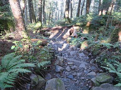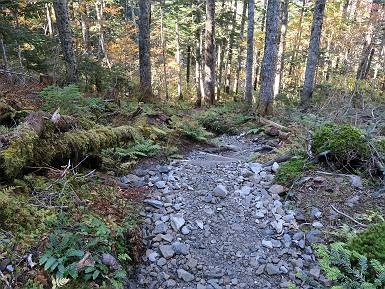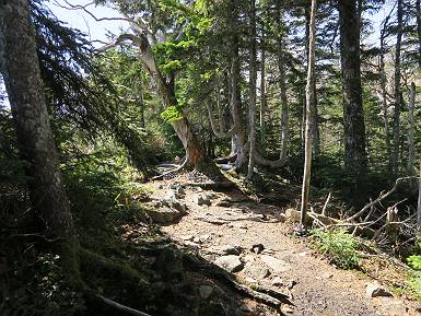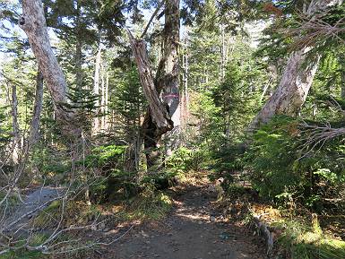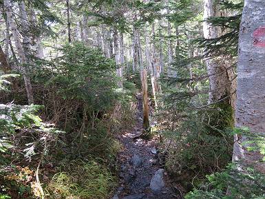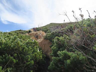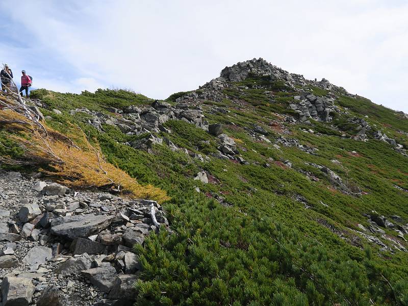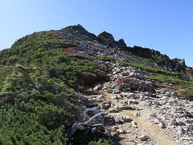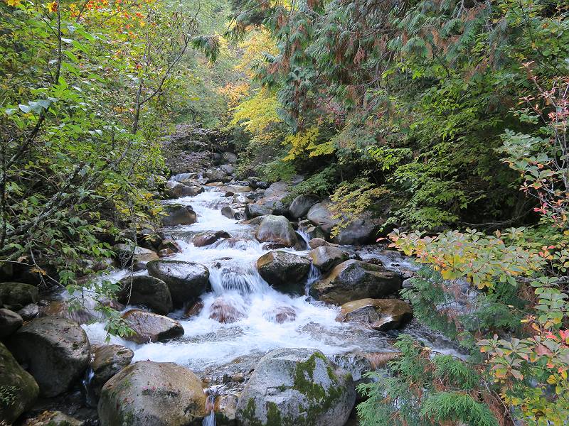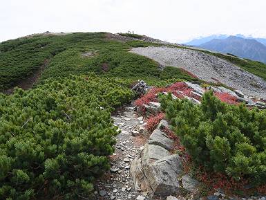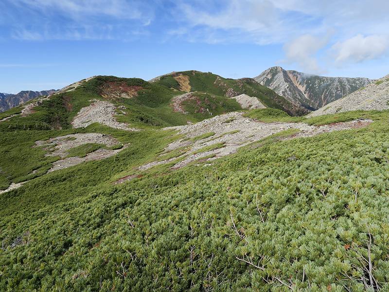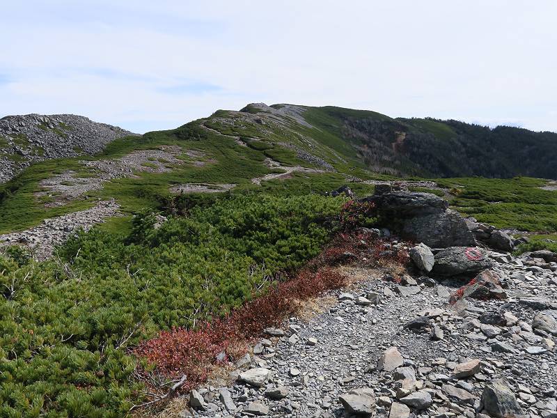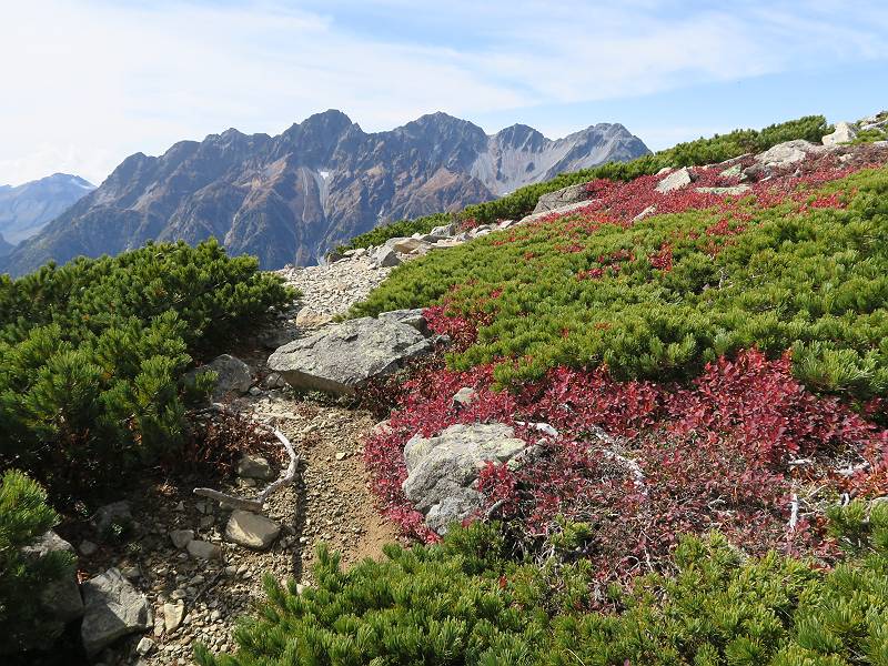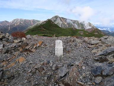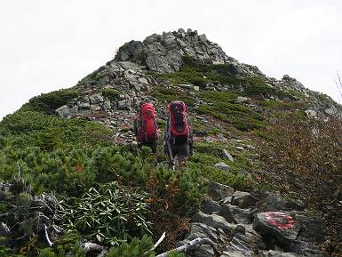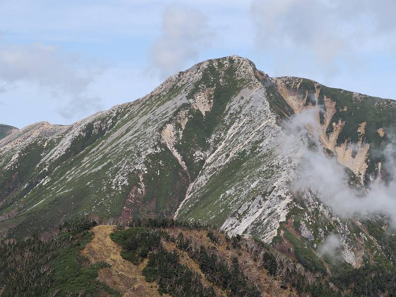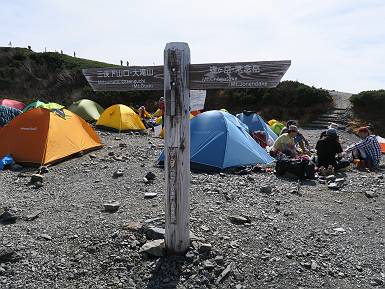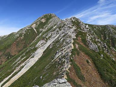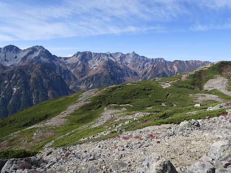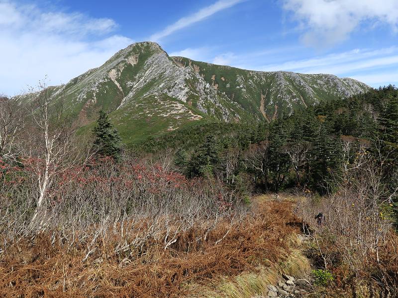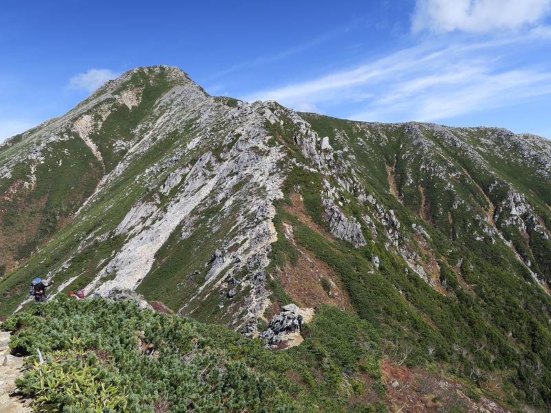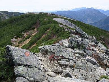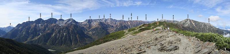 【後編:常念岳-蝶ケ岳-三股駐車場】 【前編:三股駐車場-常念岳】 常念岳から蝶ケ岳まで、西側の槍ヶ岳から前穂高岳と山脈がほぼ平行している。前者は常念山脈、後者は飛騨山脈である。こんな地形的な条件で平地(松本市の市街地)からは奥まった3000級の山並はほとんど見えない。そこに本コースを歩く価値がある。最近は机上でも楽しめるが、汗して一歩一歩、歩き眺めることに醍醐味がある。連続する岩峰のアップダウン、通り抜ける樹間、広々した蝶ケ岳から様々な様相で楽しませてくれる、11:00標高点(2592)、11:21標高点(2462)、11:57-12:11蝶槍、12:17三角点(2664.5)、12:53蝶ケ岳山頂。 飛騨山脈と常念山脈はほとんど平行している(カシミール使用) ![]() 松本城付近から見た常念山脈(カシミール使用) ![]() 100mほど下ったところから槍穂展望 画像クリック 拡大 御嶽山〜北鎌独標 ![]() 同、蝶ケ岳方面 常念岳を振り返る 立ち止まっては展望 画像クリック 拡大 乗鞍岳〜水晶岳(黒岳) ![]() 最初の鞍部から 画像クリック 拡大 前穂高岳〜赤岩岳 ![]() 鞍部 常念岳を振り返る 登り返して 常念岳 下って、この先樹林帯 前方、枯野 蝶ケ岳 常念岳を振り返る 再び樹林帯 標高点2592 蝶に近づいた 下って、小さい沼 もう少し下って 鞍部、標高点2462 登り返し 常念岳を振り返る 間もなくハイマツ帯へ 北斜面から槍穂展望 画像クリック 拡大 前穂高岳〜前常念岳 ![]() 蝶槍直下 蝶槍到着 蝶槍の展望 画像クリック 拡大 前穂高岳〜前常念岳 ![]() 蝶ケ岳、この先に三角点、その先にヒュッテ&蝶ケ岳山頂 下ります 蝶槍を南側直下から 三角点のあるピークへ ゆったりした起伏の小さい展望コースをアッチコッチ 画像クリック 拡大 霞沢岳〜野口五郎岳 ![]() 画像クリック 拡大 焼岳〜前常念岳 ![]() 蝶ケ岳ヒュッテ到着 少々上って蝶ケ岳山頂 蝶ケ岳山頂の槍穂展望 画像クリック 拡大 焼岳〜有明山 ![]() 蝶ケ岳を枕に、なんとも贅沢な昼寝 山頂を後に槍の見納め ハイマツの間から 三股への下山路に入ります 13:01去りがたき蝶ケ岳山頂部を後にする、沢山の三股からの登山者と「こんにちは、お先にどうぞ」、を交しながら悪路を下る。13:16最終ベンチ(2500m)、13:39第二ベンチ(2350m)、13:57蝶沢(2140m)、14:12(2000m)付近通過、14:27まめうち平(1916m)、15:04力水(水場)、15:19三股登山口、15:29三股駐車場着。 悪路が続きます、所々にホットな場所が・・・ その先は、木段が整備されてました 蝶沢 水場 樹林帯に入りました 勾配が緩やかになって、 まめうち平、1900m 樹間から雲のかかった常念岳 黄葉も進んで 下山者も点々と、 力水、美味しいですよ 清流 つり橋を渡って、 今朝通った分岐点 小橋を渡れば三股登山口 ダートをテクテク、三股駐車場着 総所要時間は、11時間35分、前回よりちょっとかかったが、誤差の範囲。天気に恵まれて眺望は楽しめたが、花はなし、紅葉は晩々期、槍穂が雪化粧でもしていたら、また楽しめたが、真夏のような陽気の中の山歩き、日焼けの土産をもって帰路についた。 【前編:三股駐車場-常念岳】 |