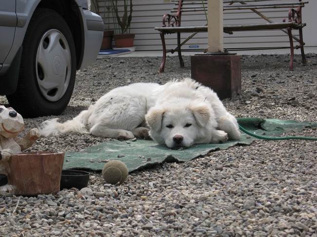 平成十八年四月十九日 Before 写真集目次へ Next “春は眠くなる、猫はねずみを捕ることを忘れ、人間は借金のあることを・・・・”、ぼく、只今熟睡中です。 「ああ、起こされちゃった」、「忠治、眠そう、起こしちゃってごめんね」 「また寝るよー」 「ああ、良く寝たなあ」、「忠治、リードをぐるぐる巻きにして・・・」 「お母さん、何してるの、お仕事?」 「お母さん、ぼく、ボール遊びしたいなぁ」 Before 写真集目次へ Next