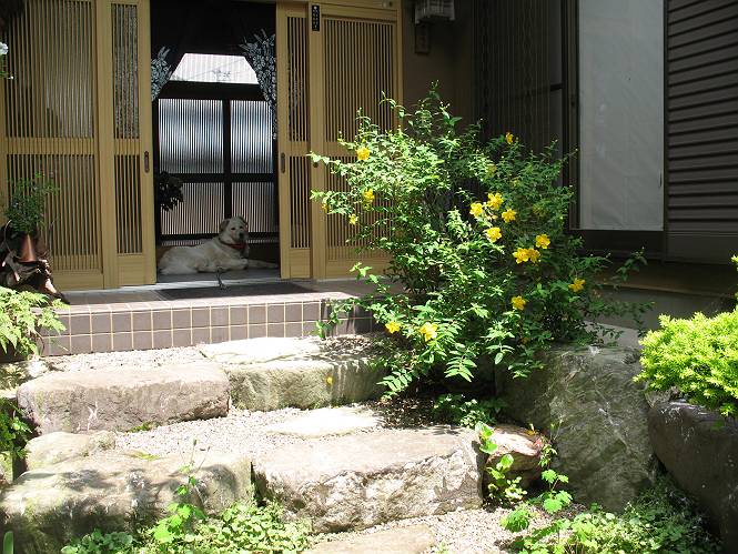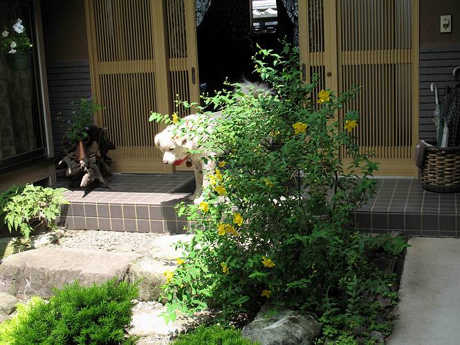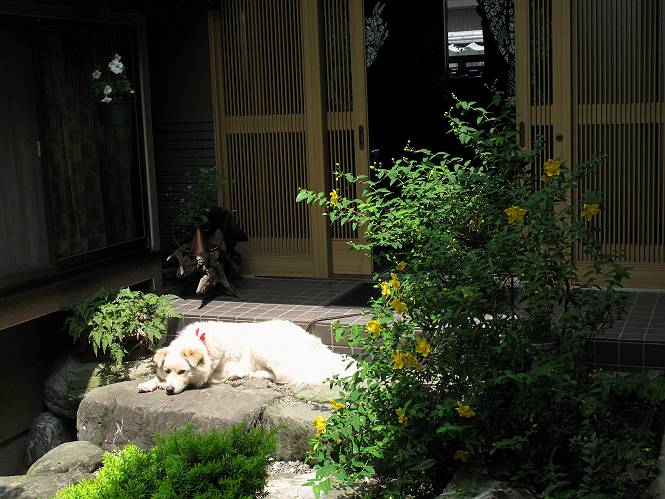 やっと雨が上がって、今朝から良い天気です。玄関で気持ちよく寝そべっていると。お父さんが、「忠治、邪魔だ、下がれ!」って、言うんですよ、