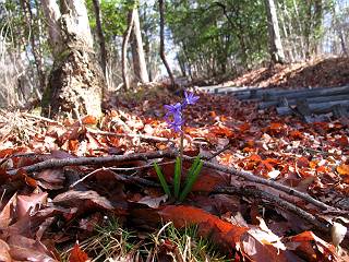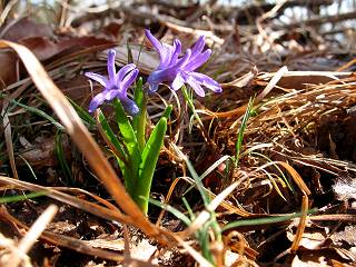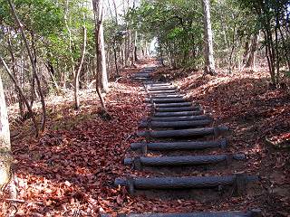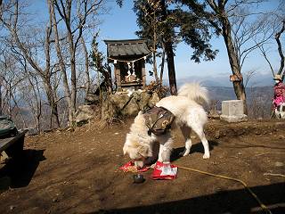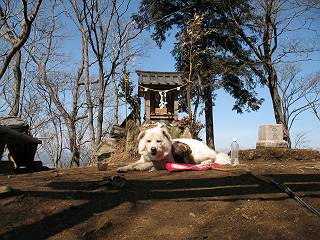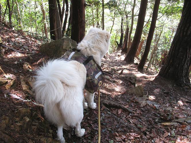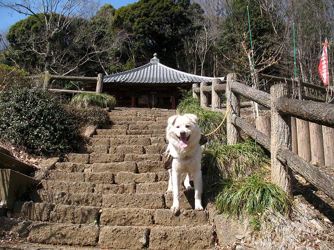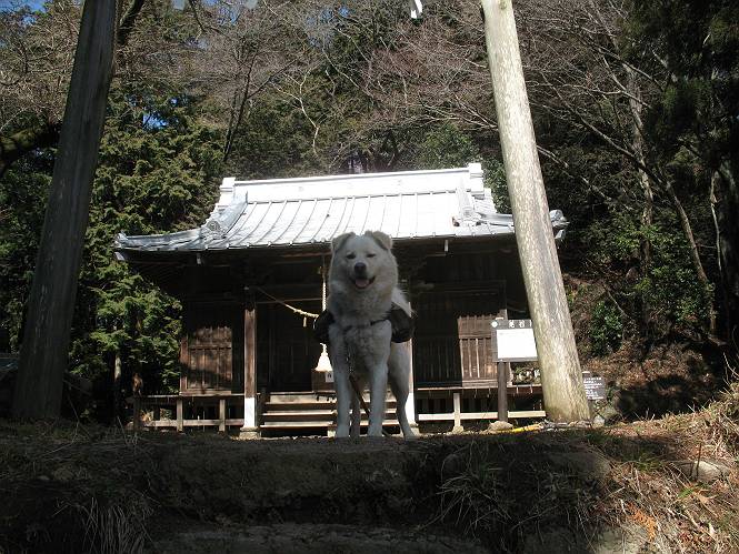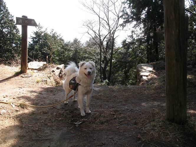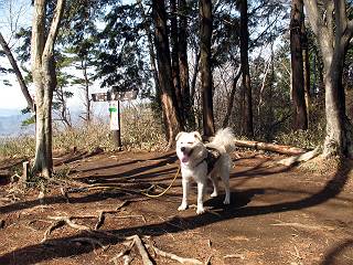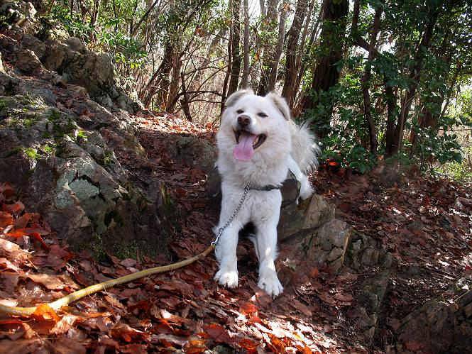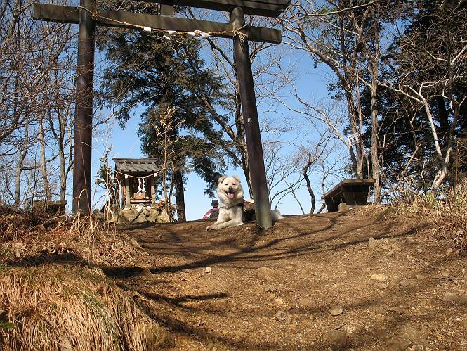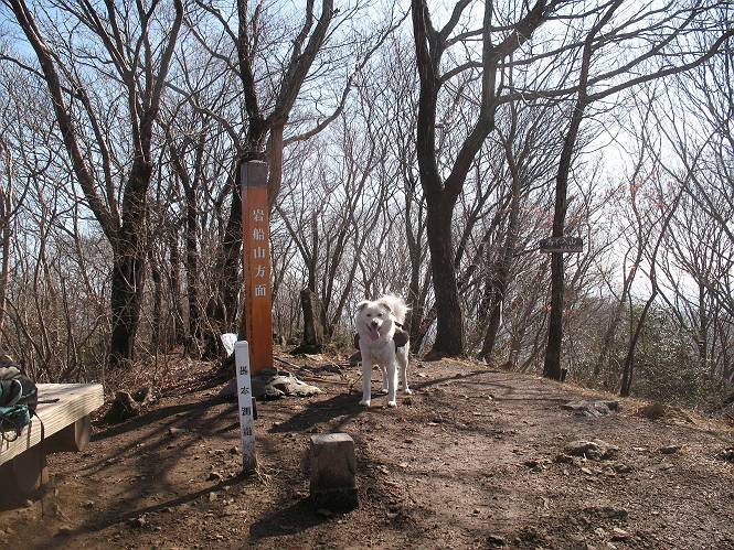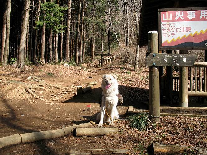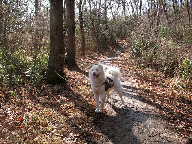 | 平成二十二年三月五日 Before 写真集目次へ Next 暖かい陽気に誘われて、栃木県の大平山系、馬不入山と晃石山に連れてってもらいました。馬不入山は二度目ですが、晃石山は初めてです。晃石山の麓にある清水(セイスイ)寺の駐車場から林道を歩いて 馬不入山の登山口にでました。ここから馬不入山山頂までは前に歩いたコースです。 出発するとすぐに桜峠へ入る道がありました。 そこからしばらく誰も通らない林道を歩き 自動車道を少し歩くと 馬不入山の登山口に出ました。 ここから丸太の階段を真っ直ぐ上って鉄塔にでます。 いきなり、すごく急ですからきついようです、ぼくは平気です。 適当に山に入って遊びながら歩きました。 お父さんが脱いでいる間、ちょっと、お休みしてます。 こんな花が咲いてました、これって、ヒヤシンスですよね。「植えたのかな?」って言ってました。 次の長い階段を上ると 馬不入山が見えました。 また、ちょっとね、オヤスミです。 少し下ると山頂が見えました、最後の上りにかかります。 馬不入(ウマイラズ)山山頂に着きました。おじさんが一人景色を眺めています。 山頂の標高は345mですって 北側に日光の山々が見えているようです。 こんな格好でもう一枚撮ってもらいました。 おじさんは、ぼく達の来た方向に下って行きました。ぼく達は大平山方向に向かいます。 緩やかな落葉樹の林が続きます。陽だまりハイクでなく、今日は暑いですよ。 ちょっとはっきりしませんが、正面が晃石山だそうです。 この辺には赤松がまだ少し残っていて、頑張ってます。 桜峠の直ぐ傍にきました。今日は、良い天気なので大勢の人に会います。アズマヤにも3人おります。 ここが桜峠で十字に道が交差してます。後ろに大きなヤマザクラがあります。 少し休憩して晃石山へ向かうそうです。ここから出発点に出る道もあるそうです。 また長い階段です、道の真ん中にガッチリした手すりがあります。ぼくは四駆ですから、・・・・。 晃石山山頂の手前の小さいピークに出ました。歩いてきた馬不入山が南に見えてます。 また、少し下って 登り返してます。 今日の二つ目の山、晃石山山頂に着きました。 早速、お水とオヤツを頂いてます。 次々とやってきます、今は三人ですね。ぼくを撫でてくれたおばさんがいたので、 抱きついちゃった、悪かったかな。 山頂からは、北側に日光の山々、南に馬不入山が見えてます 東に少し下ると晃石神社にでます。 ここから車の止めてある清水寺へ真っ直ぐ下るそうです。 露出した岩がゴツゴツして、まだ濡れてますので、“注意”ですって。 清水寺に到着です。まだちょっと早いようですが、春の山も良いですね。お天気が良すぎて、ぼくにとっては暑かったです、お水をいっぱい飲んでしまいました。 駐車場は、すぐそこです、楽しかったなあ。 Before 写真集目次へ Next |