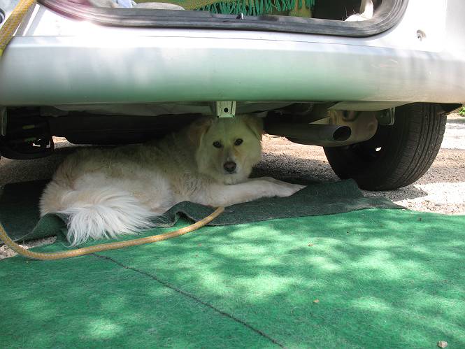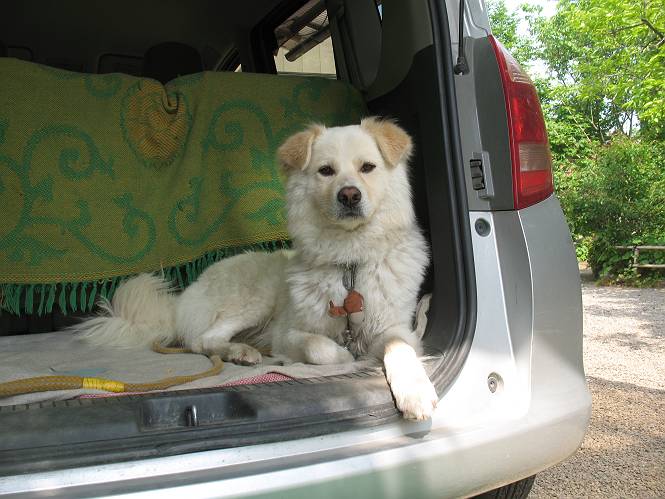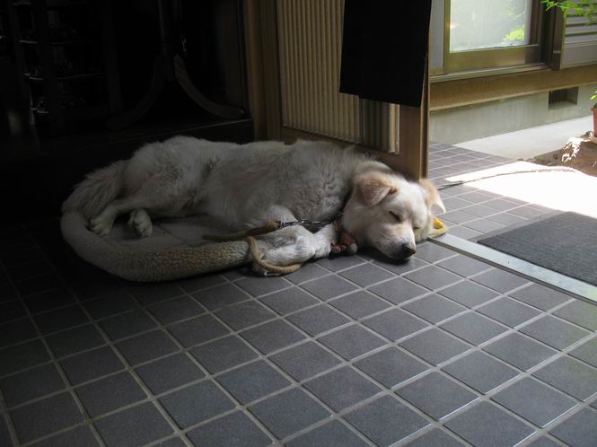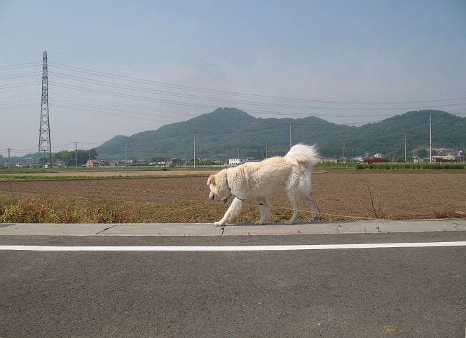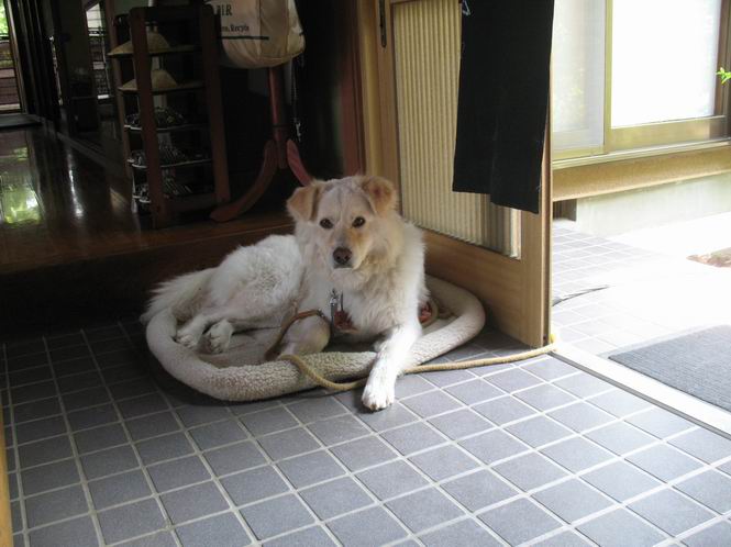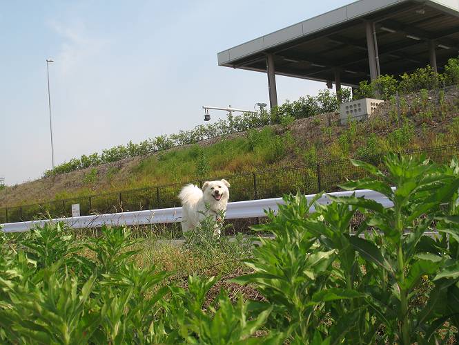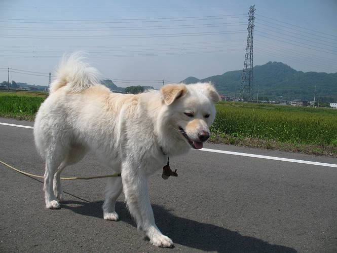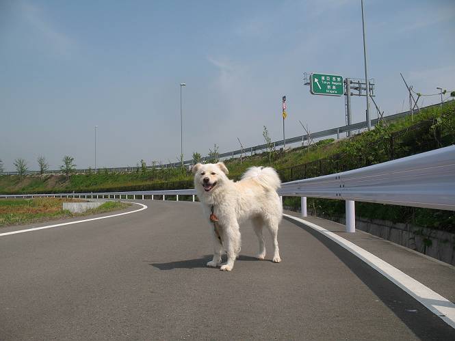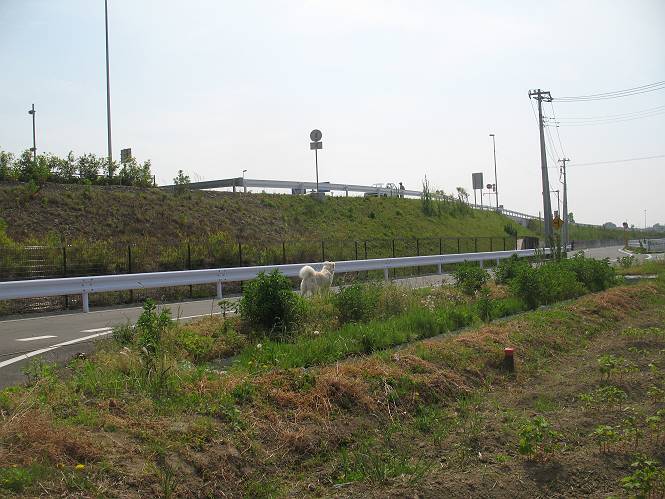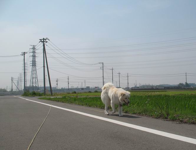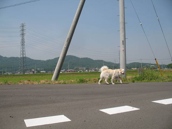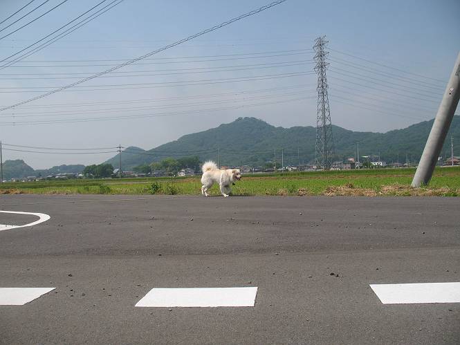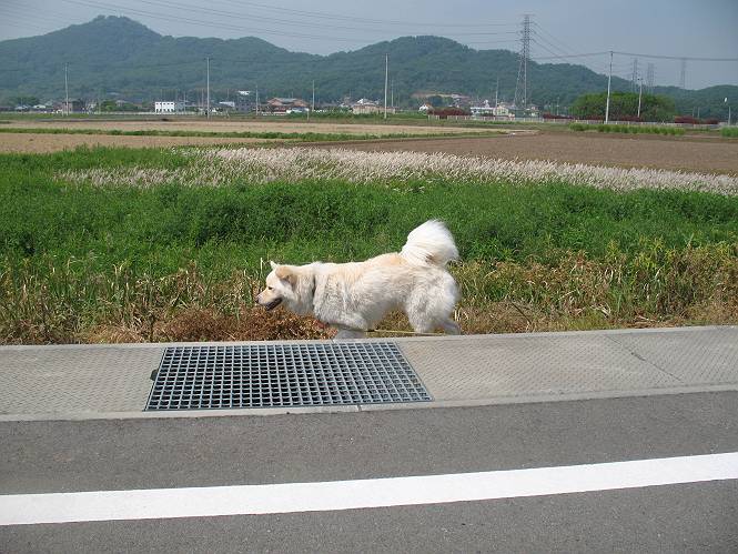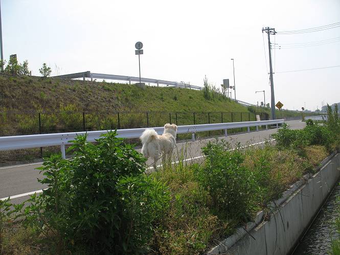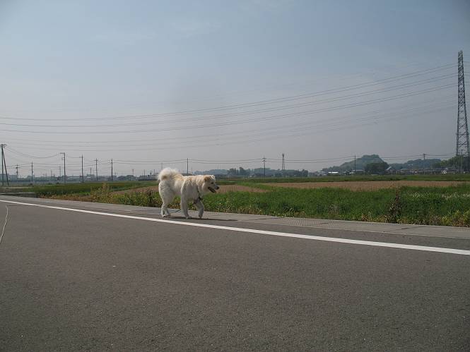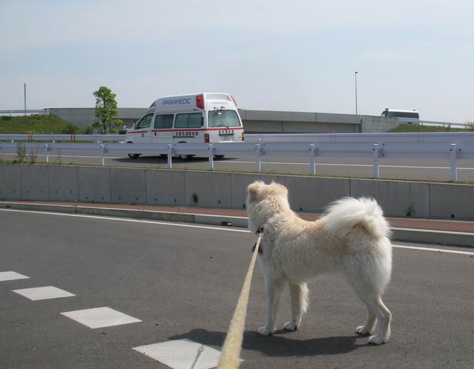 | 平成二十二年五月十八日 Before 写真集目次へ Next 午後お医者さんへヒラリヤの予防薬をもらいに行くんですって、その時診察されるんですよ。ついでにシャンプーしてもらっちゃってね、今乾かし中です。カーペットが敷いてあったのでもぐっちゃったら「乾かないうちに、そんな奥までもぐったら又灰色になっちゃうぞ」、と言われちゃいました。 そして、「じゃあ、一回りしてくるか」、となりまして近くのIC付近へ出かけました。 田圃の畦道を、あっち、ふらふら こっちふらふらしながら歩いてます。 用水には水が沢山流れています、田圃では苗代も始まっているんですよ。背景は金山です。 ここは休耕田で草が茂っています。白いのは草の穂だそうです。 料金所の下まで来てしまいました。 「あれっ! 何だ! 人がたってるぞ」 「わかんないなあ、見えなくなってしまった」 ここから少し南の方へ回り込むいつものコースです。 「救急車が行った、何だ、事故かな」 救急隊が動いてますよ、担架で収容されたようです。 救急車は高速道路へ入って行きました。 麦畑に沿った道をゆっくり 歩いてます。 車のほとんど通らない安心して散歩できるIC南西の一角、 のどかな風景ってところかな。 車はすぐそこです。 戻りまして、玄関で「ZZZ、・・・・・・・・」 「気持ちよく寝てれば、起こしちゃうんだから、・・・」 Before 写真集目次へ Next |