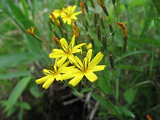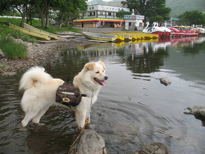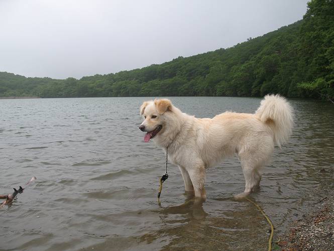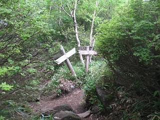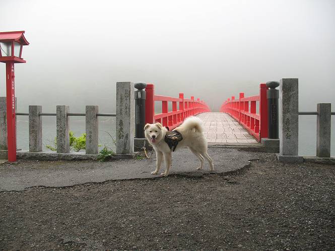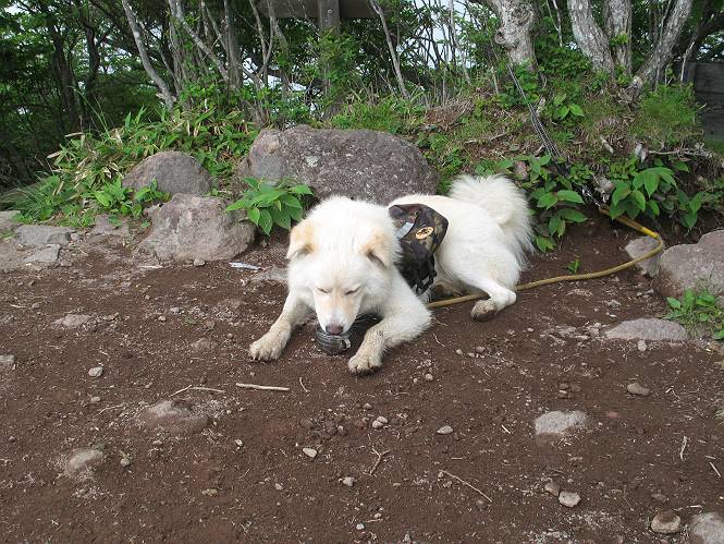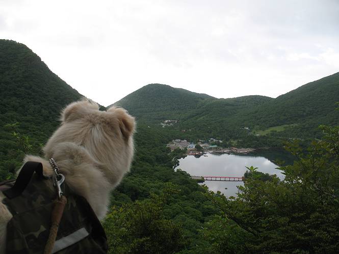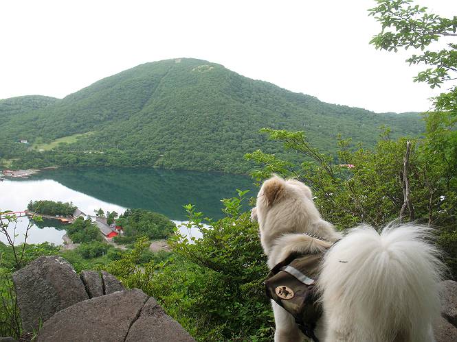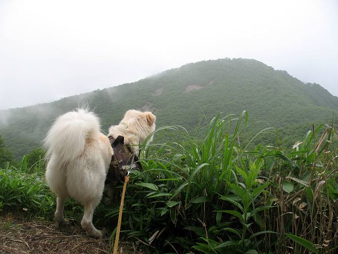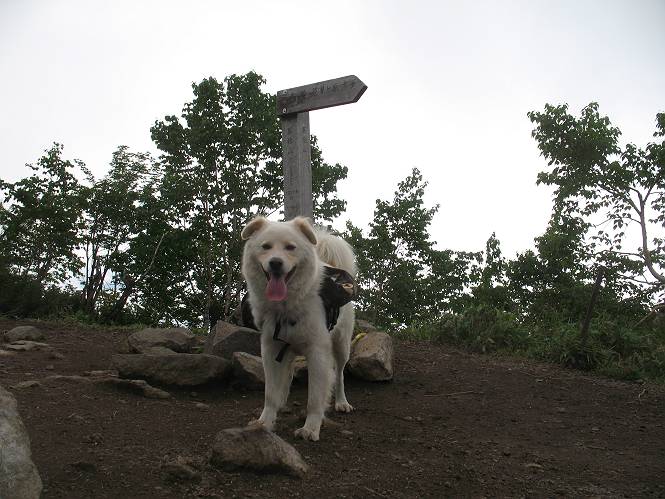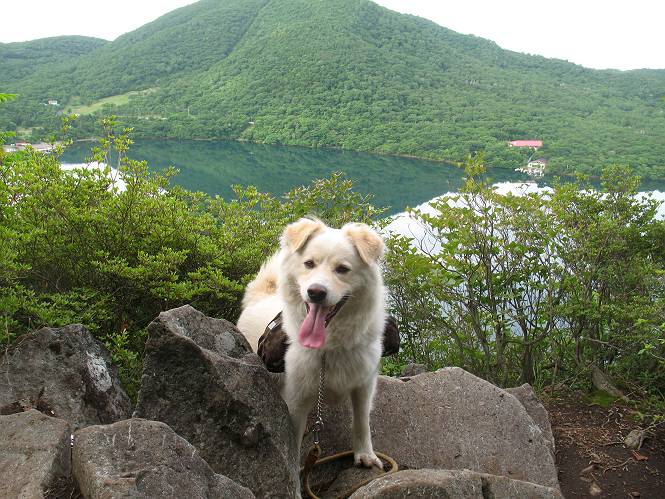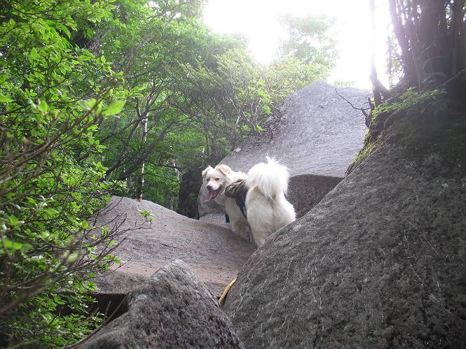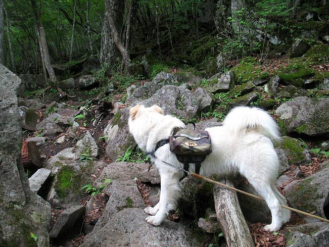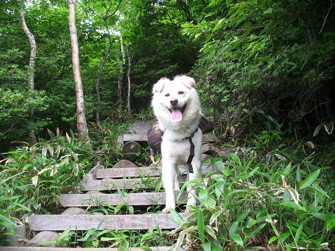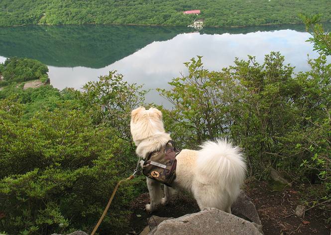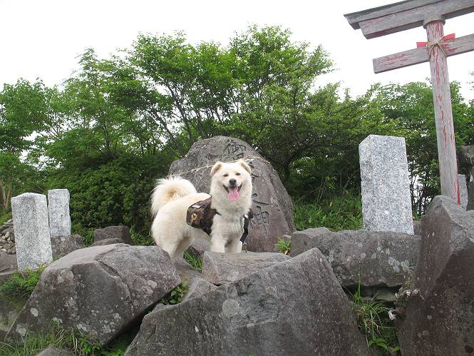 | 平成二十二年七月五日 Before 写真集目次へ Next 高いお山に連れてってもらうのを待ってましたが、ずっと天気がはっきりしません。お父さんの靴の修理が終ったこともあり、今日は、赤城山へ連れてってもらいました。朝の散歩をぬいて、赤城山大洞に向かいました。もうシーズンオフで登山者も少ないようですから、黒檜山と駒ケ岳を一回りするそうです。ぼくは、黒檜山は花見ケ原から、駒ケ岳は大洞から往復してます、今日は2度目となります。 黒檜山の登山口です、雨が降り出しそうな空模様なので、山の中は薄暗い感じがします。 ぬかった急坂を上って猫岩に出ました、大沼に地蔵岳が写ってました。 大沼をバックに撮ってもらいました。 真下に赤城神社が見えてます、きれいだなあ。 その向こうにお店があって・・・・・、その後の山が小地蔵岳ですって。 ここから尾根を少し歩いて、また大きな岩のゴロゴロした急坂です ハー、ハー、荒い呼吸が続きます、時々うさぎ跳びをして跳ね上がります。 また尾根に出て大沼を眺めました。 小地蔵岳には雲がかかり、枝間からモクモクした入道雲が見えました。 ここでまた小休止しをしました。 そろそろ出発だそうです。 大きな岩でしょう、この間を抜けていきます。 きつい坂道がずっと続いてます。 一段高い所に上がり、またひとやすみしてます。もう山頂は近いようです。 花見ケ原、駒ケ岳から来る道に合流しました。この奥が山頂のようです。 黒檜山山頂に着きました。周りは曇っていて見えません。 2年ぶりの山頂で休憩中です。あの時は沢山人がいましたが、今日は誰もいません。 黒檜山山頂は曇ってます 一番近い黒檜山大神のピークが見えるだけです。 先ほどの合流点に戻りました、すぐ先が黒檜山大神です。 黒檜山大神で記念写真を撮ってもらいました。 花見ケ原の分岐点に来ました。ここから駒ケ岳山頂までが、ぼくの初めて歩くコースです。 木段が連続します。「忠治、木段歩きが上手くなったなあ」、とお父さんが言ってました。 また、下の方が見えてきました。 駒ケ岳も見えてきました。 ニガナ クサタチバナが咲いてました。 真っ白なクサタチバナ、きれいですね。 この花はニシキウツギというそうです。色が変化するようです。 草原の中を下って大タルミに出ます。ぼくの前にニガナ、後にクサタチバナが咲いてます。 ここが大タルミです。クサタチバナが点々と咲いてました。 小さいピークを越えて、木段を沢山上って駒ケ岳山頂に到着です、早速お水を飲んでます。 「ああ、お水がおいしかった」、また景色が霧で見えなくなってしまいました。 駒ケ岳山頂 南の小さいピークです。 南のピークから人声が聞こえてきます。到着を待って出発します。 先ほど見えたピークにやってきました。 ここから大洞への下りです。霧が一段と濃くなってきました。 鉄階段、木段と続きます。 またお父さんに「下るのがうまくなった」、って言われちゃった。ぼく、はじめは怖かったんですよ。 大洞の駒ケ岳・黒檜山登山口到着です。 大沼湖畔で遊んで 啄木鳥橋を渡って 赤城神社に参拝してきました。この先の駐車場で一周となります。 帰りに小沼に寄ってまた水辺で・・・・・・ 駐車場の斜面を走り回って・・・・・・、楽しかったなあ、でも疲れた。 Before 写真集目次へ Next |