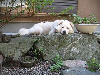 犬走りに移動して、コロン。また眠くなっちゃった。