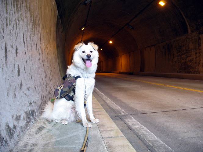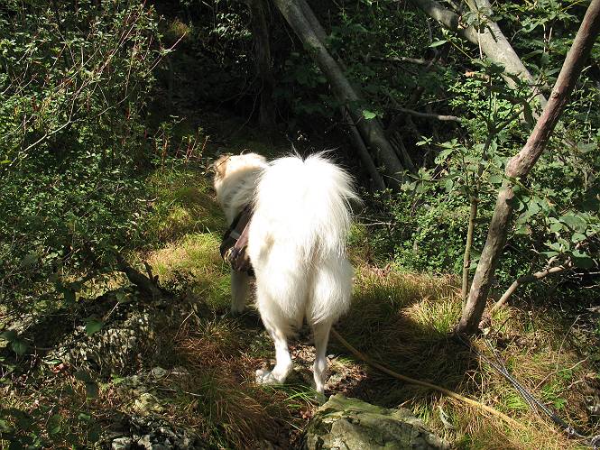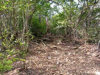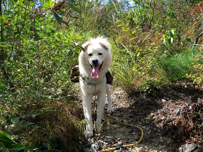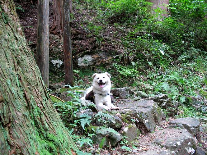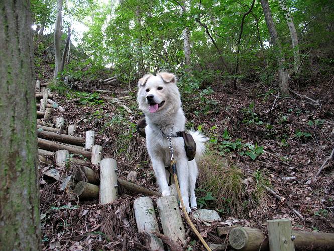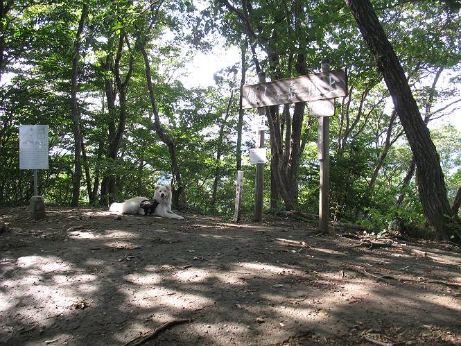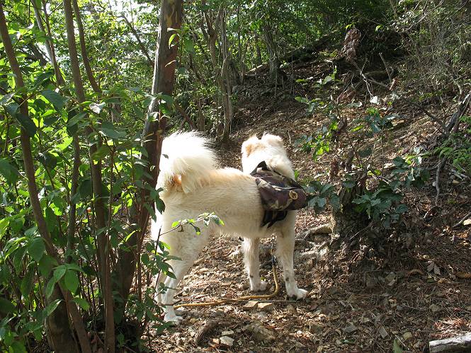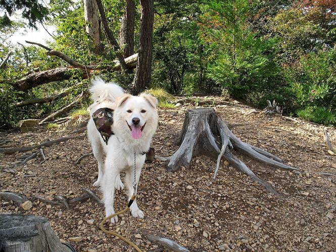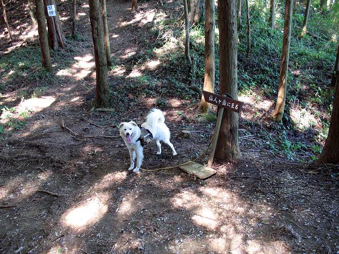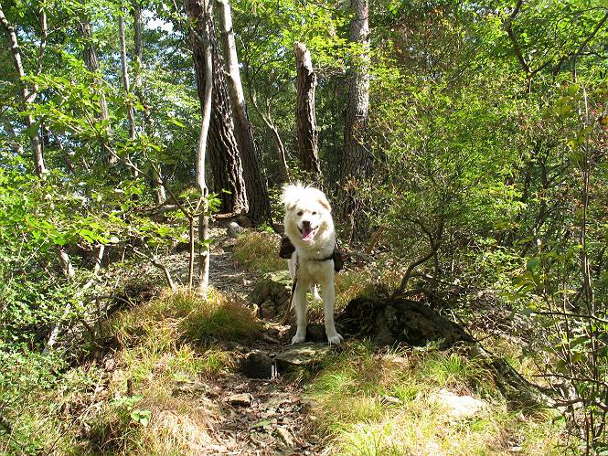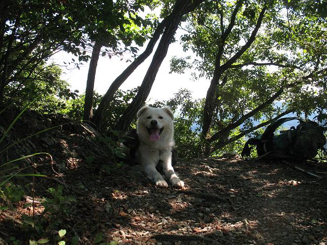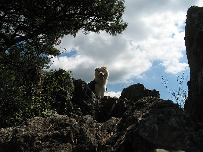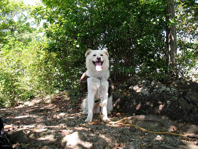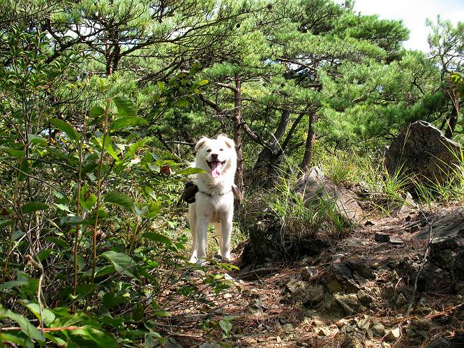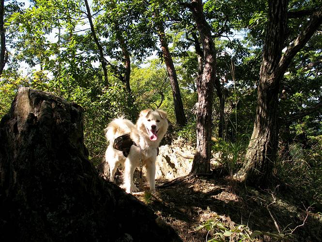 | 平成二十二年九月二十六日 Before 写真集目次へ Next お父さんの午前中の用事が早めにすんだので、足利の仙人ケ岳へ連れてってもらいました。猪子トンネルの東側から少し林道を歩き、小さな沢に沿って上って行くと猪子峠にでました。ここから左に入って深高山、石尊山に行ってますが、今日は右に曲って尾根伝いに、仙人ケ岳を目指すようです。 ここが猪子峠です。道標が桧に立てかけてありました。 峠からここまで、急な坂道でした。お水を飲んで一休みしてます。ここから左に曲って西へ尾根が延びています。良く遊びに来る松田川ダムの南の尾根がこれですって。 今日は真っ青な空で、日差しが強く、緑が眩しい位です、そろそろ出発です。 小さなピークを2つほど越えるとダムの北側に赤雪山が見えました。この山も幾度か登りました。 登山道に岩が出てきました。もっと大きい岩が沢山あるそうです。 ここも小さいピークです、標高511mだそうです。 大きな岩が出てきましたね。尾根には松が沢山生えてます。 岩場は足の爪をしっかり使って歩いているんですよ。 ここは格好いいでしょう。岩の間から登ってきました。登山道は下を巻いてます。しばらく岩場が続くそうです。 ここは“犬帰り”と言って、クサリ場があります。苦手の人は巻道を使うんだそうです。ぼくも安全のため巻道を歩いてきました。もう少しで尾根に出て合流するようです。 ここから2つほどピークを越えるようです。岩場はもう少し先で終わるんですって。 ここの茂みを抜けると東方向にダムや歩いてきた山並が一望できるそうです。 6つほど見えるピークを歩いてきました。 下に松田川ダムが見えます。 ここでお休みして、おやつをもらいました。お父さんのパンも少し頂きました。 あと2つ、3つ越えて、熊ノ分岐にでるそうです。前回は沢から熊ノ分岐に上ってきましたが、今回は岩尾根を歩いてきました。 熊ノ分岐到着です。 こちらが山頂に向かう道です。 熊ノ分岐からも3つ、4つ越えましたかね。全部でいくつこえたかな、わからない。やっと仙人ケ岳山頂に着きました。猪子峠の近くて2人会っただけ、静かな山頂です。 山頂でゆっくりした後は、先ほど通った熊ノ分岐から沢筋を下りました。大雨で道が大分荒れてました。生満不動で小休止してます。 岩切から道路を歩いてここまで来ました。猪子トンネルを抜ければ右側の駐車場が終着です。もう一時の暑さがなく、尾根筋はさわやな気分でした。 Before 写真集目次へ Next |