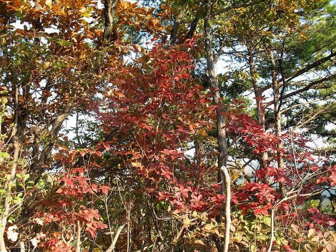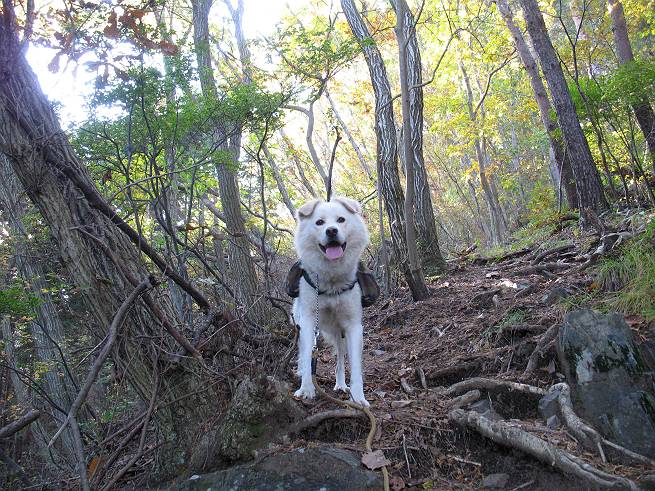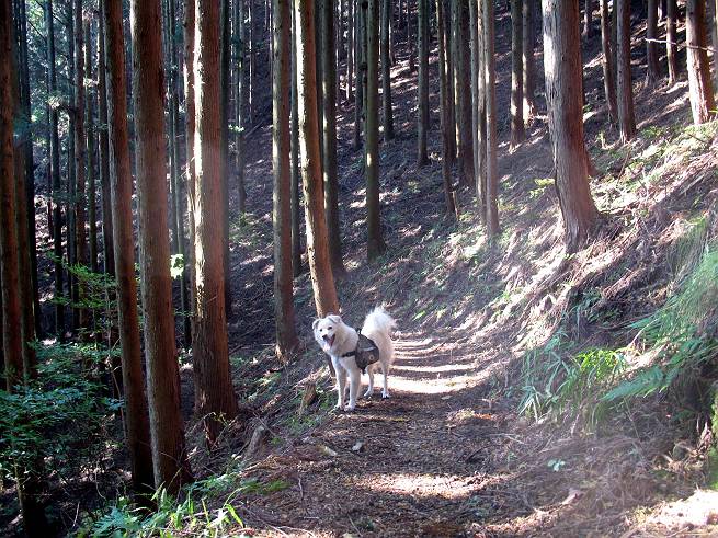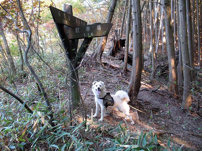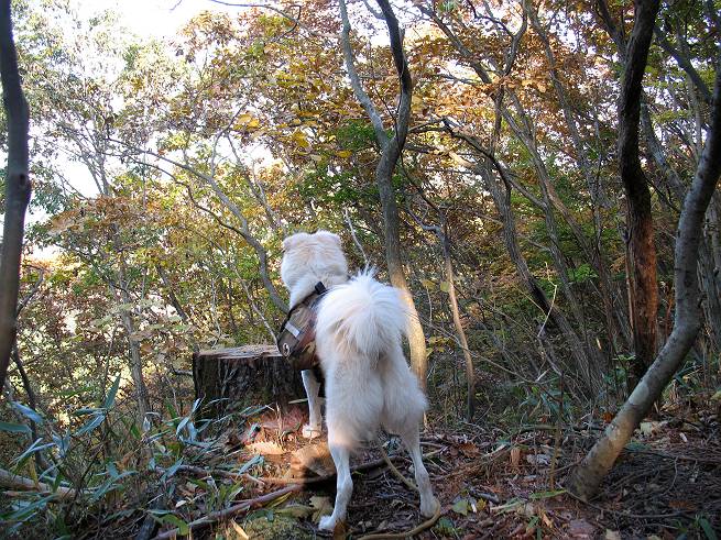 | 平成二十二年十一月七日 Before 写真集目次へ Next 午後、お庭で遊んでいたら、お父さんが「渡良瀬川へ遊びに行こう」、と言って、出発しました。渡良瀬川に着きますと、日曜日でグラウンドが賑わってましたので、真っ直ぐ松田川ダムまで走りました。「今日は、赤雪山で紅葉を見よう」、と変わりました。赤雪山駐車場から小さな沢に沿って上って行きました。 沢から離れて杉森に入りました。 木段がここで終わり、道はジグザグに尾根までつづいているそうです。 この辺は木漏れ日がさして明るいですね。 稜線にでて、長石林道から来る道に合流しました。 1本真っ赤に染まったツツジがありました、きれいですね。 あとはまだ少し紅葉には早いようです。 結構な急坂を上ってきました、もう少しで赤雪山の山頂ですって。 赤雪山の山頂に着きました、誰もいません。 アズマヤの中でお休みするそうです。 東の方の山並が見えてますが、少し霞がかかってます。 山頂の紅葉も少しはやいようです。 ここから戻らず、南に下るそうです。 少し下った所に真っ赤に紅葉したツツジがありました。 ミズナラが多いのですが、ダイダイ色に紅葉した木もあります。 ヤシオツツジの紅葉です。 これはミズナラの紅葉です。 ここから桧の森に入りました。これはセンブリの花だそうです。 これはリンドウです、きれいですね。 暗い森の中に真っ黄色の葉をした小さな木がありました、ヤマギリかな?、と言ってましたが。 間もなく桧の森を抜けて松田川ダムに出ました。ここから道路を歩いて赤雪山駐車場に戻りました。河原で遊べなかったので、赤雪山に来ましたが、ぼくは山の方が好きです。今日も得しちゃったかな。でも、紅葉はこれからですね。 Before 写真集目次へ Next |