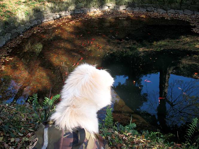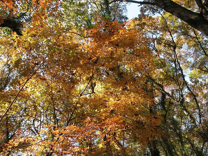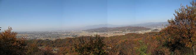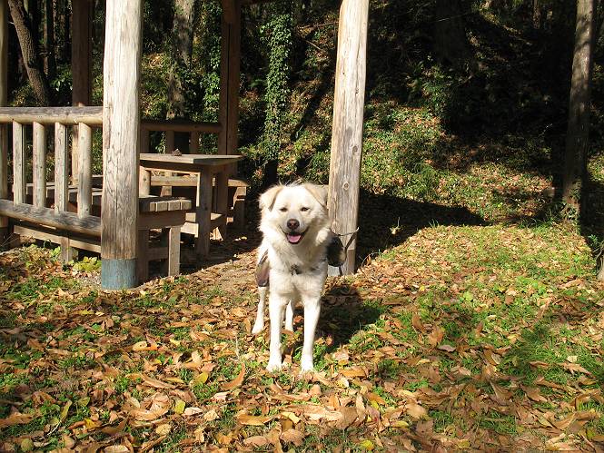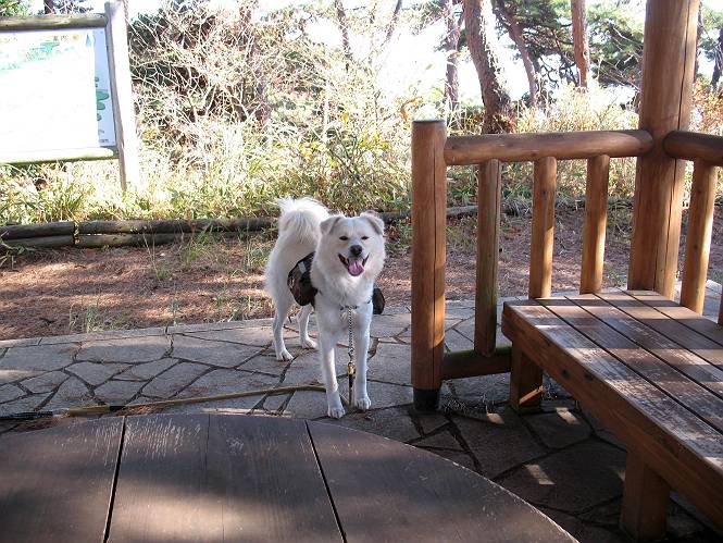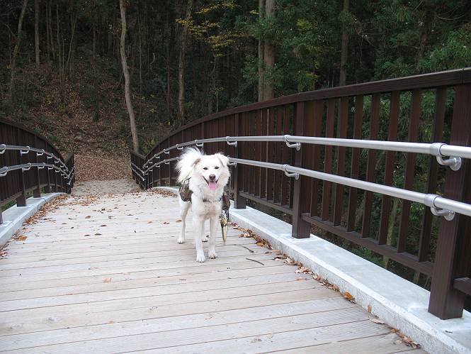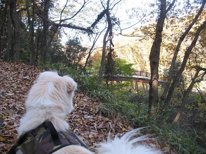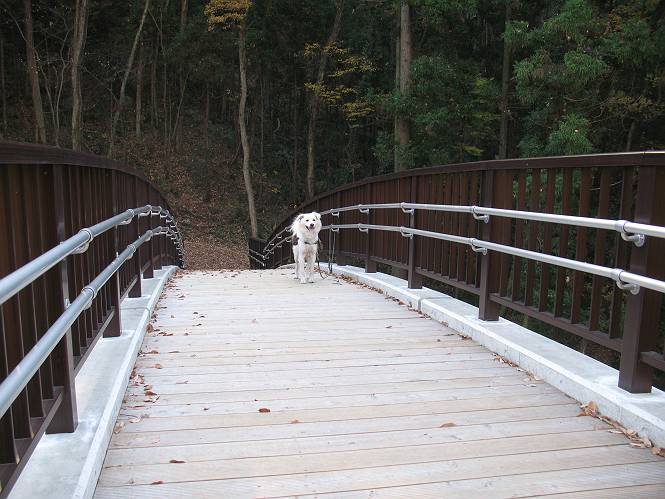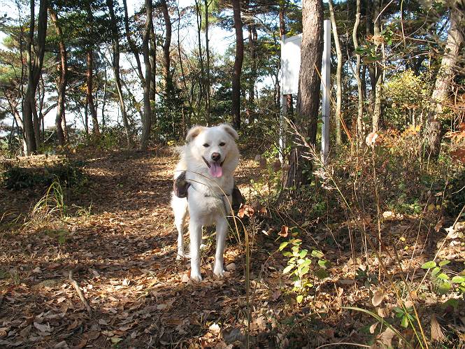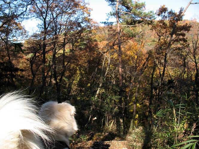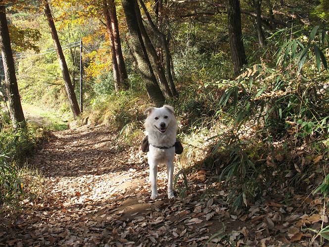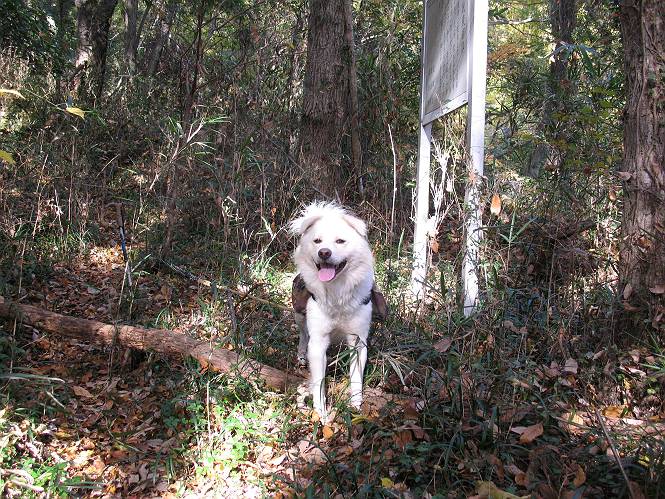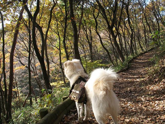 | 平成二十二年十一月三十日 Before 写真集目次へ Next 昨日湯殿山を歩いて霞んで見えた太田の山、今日は親水公園から御城橋を渡って金山山頂へ、ぐるっと散策してからたち沢へ下って親水公園へ戻るコースを歩くことになりました。いつも車から見ている太田の山、「さあ、出発進行! ワン」 大光院に向かって坂道を上り、少し下って左折して、赤松の山を上って行くと親水公園です。公衆トイレの脇に駐車して、ここから歩き始めました。 砂利道を少し歩いて、御城橋と書かれた案内に沿って八王子山・からたち沢方面に入ります。 紅葉の終わりかけた雑木林の間を進みます。 「八王子山という山があるんだ、行って見ようか」、と左に入って間もなく、アンテナと東屋のある小さいピークに着きました。 「ここが八王子山かな?」、と言って、案内板を見ましたが、それらしい表示は見当たらなかったようでした。 ちょっと戻って北側へ小道を入りました。すると“中八王子山矢倉台”と書かれた山城の案内板がありました。その中に大八王子山というのがあり、見渡すとボコ、ボコ、「ボコと小さい山が見えるのでこの辺だろう、ということで先に進みます。 再び東側に周り、木の間から遠くに街が望めました。お父さんは「これでは、初日の出は駄目だな」、と言ってました。もしかすると、お正月に・・・・。 北方向に回りこむと、金山の山頂部が見えてきました。 続いて、御城橋が現れました。先ほどはこの橋の下を走って行きました。 これが御城橋です、良い感じですね。 下を走る車があっという間に見えなくなってしまいます。 こちらが西側です。 こちらが東側(松風峠)です。 踏み跡を辿って山頂の東南下に出ました。登山道から少し入った所に“本城東南郭”と書かれた案内板があり、そばにきれいなモミジが2本ありました。 赤でしょう、 黄色でしょう。 南に回って山頂の鳥居下に出ました。 モミジの間を真っ直ぐ進むと大きなケヤキの木がありました、樹齢800年と書いてあるようです。 山頂に紅葉が少し残ってました。 山頂から東側に渡良瀬川、足利の山が見えました。 山頂にある新田神社です。 新田神社の前で撮ってもらいました。 南に回って景色を眺めました、こちらは竹薮で見えません。 後に関東平野が大きく開けているのですが、今日はモヤがかかって見えません。 “月の池”を眺めてます。金魚が沢山泳いでました。 少し西側に歩いて展望台から眺めています。真ん中が赤城山です。 写真をクリックすると大きくなりますよ。 日光白根山も見えました。良く散歩する丸山も直ぐ下に見えました。 こっちの方向は良く見えますね。 モータープールの上を通って、分岐点に着きました。「どっちへ行くのかな」、「左だよ」 少し下った東屋の所からからたち沢の方へ入り、下って道路脇にある東屋に出ました。 ここから道路を横切って、金龍寺を見下ろし、赤松の間を歩いて出発点に戻りました。今日は平日ですが40,50人に会いましたね、ワンちゃんには遠くの鳴き声は聞こえましたが、全然会いませんでした。 Before 写真集目次へ Next |