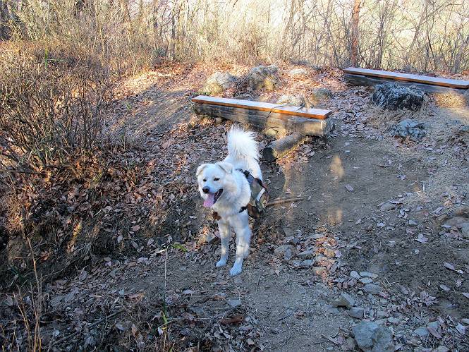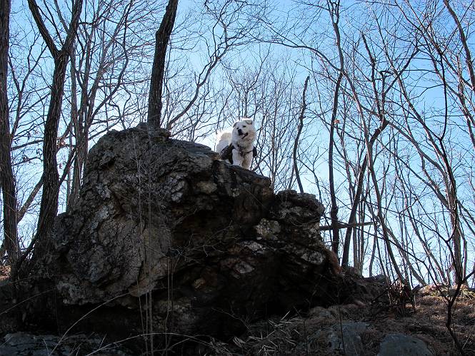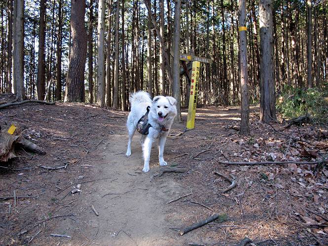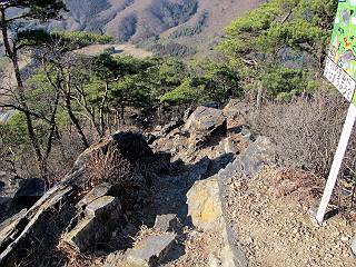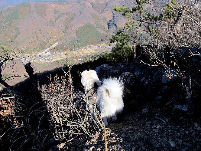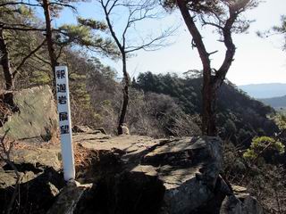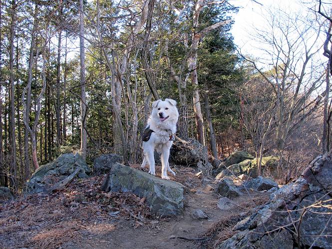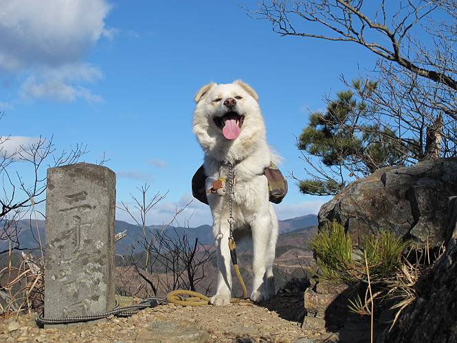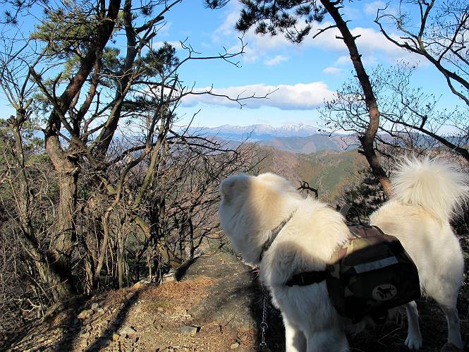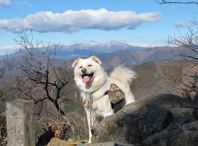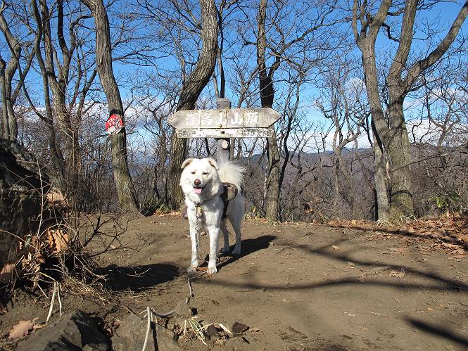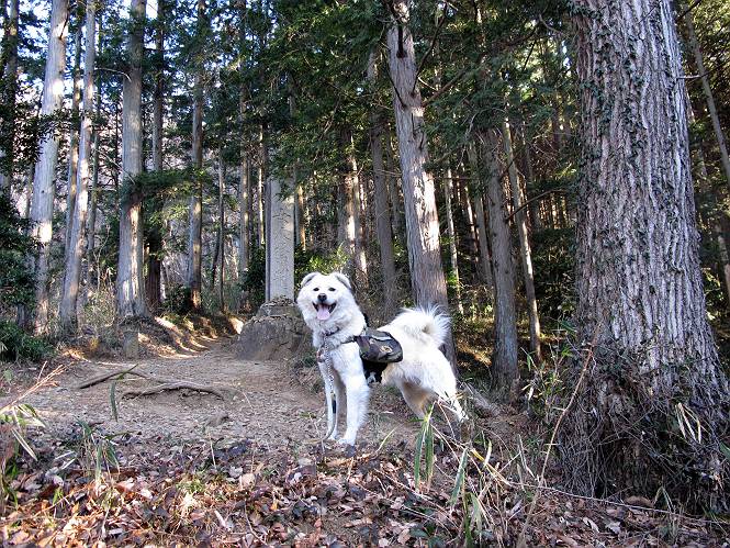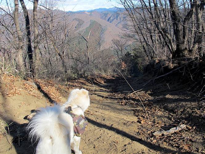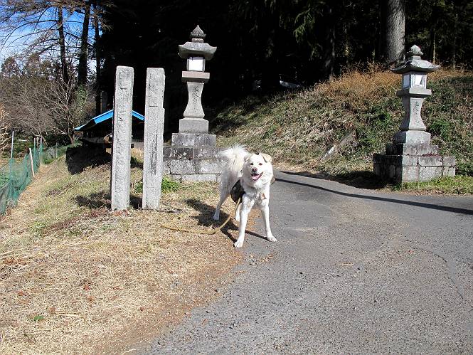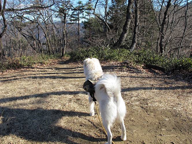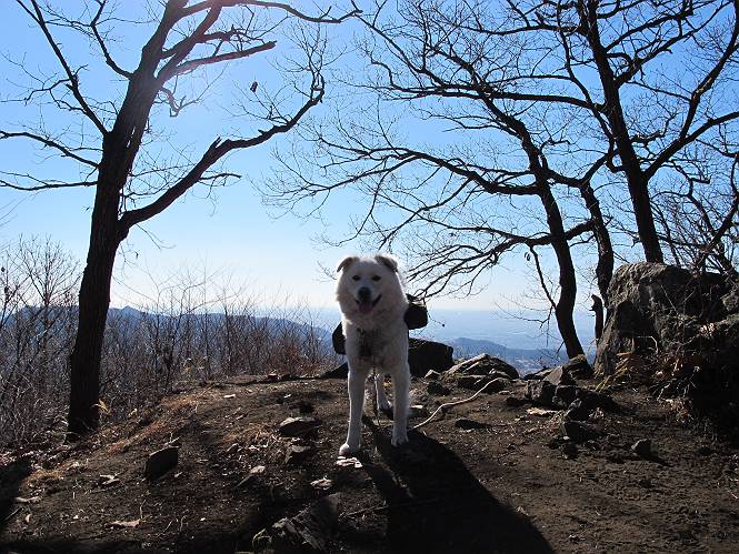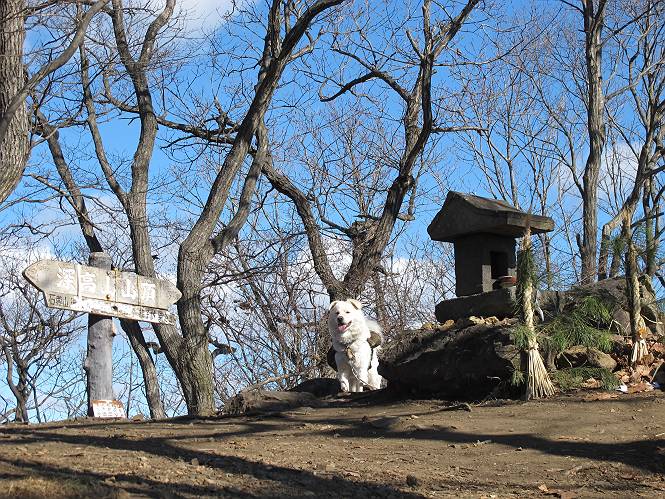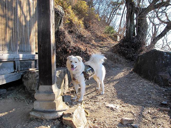 | 平成二十三年一月二十七日 Before 写真集目次へ Next 久しぶりに足利の山、石尊山と深高山をお父さんと陽だまりハイクしてきました。小俣町の叶花不動尊前をスタートして、杉森の中を少し歩いて石仏の所から急坂になりました。 叶花不動尊 石仏の所から急坂になりました 尾根に出る中間付近に昔の女人禁制の大きな石碑があります。そしてまた、急坂が続きます。 ベンチのある尾根にでました、この辺でマンサクの花を探すそうです。 「あった?」 「あったけれど、まだ蕾が固いなあ」 露岩の尾根を歩くと赤城山、浅間山が見えてきました。でも山頂部には少し雲がありました。 山頂は、雪がちらついているのかな。 少し進むと釈迦岩展望に出ました。 シルエットは観音様に似ていますね。 下に見える人家は、小俣町で登山口の近くのようです。 もうここまで来てしまった、奥の院まで、もうわずかです。 赤城山を入れて撮ってもらいました。 ここから登山道を見ています。こちらが来た方向です。 この先が奥の院です。 ここから見た浅間山です。右が榛名山、手前は姥穴山だそうです。 赤城山です、雲が沢山漂ってますね。 奥の院に着きました。 南の方向から富士山が小さく見えてます。 アップしてみました、天辺の部分は真っ白ですね。 奥の院には赤、青、大きな面が2つ奉納されてました。 奥の院の裏の広場です、ここで小休止しました。お父さんは暑い、暑いと言って沢山脱いでました。 こちらの方向に少し歩くと石尊山山頂です。 ここが石尊山山頂です、道標が隠れてしまいましたね。 小さいピークを4つ、5つ越えました。作業道の所で男体山が見えました。 大きくしました。天辺は富士山に似てますね。 大きな岩がありましたので、“お山の大将”をしました。 深高山に着きました。 祠にはしめ飾りがつけてありました。 こちらは大岩山-行道山の方向です。 小腹がすいたので頂きました。 お父さんも食べています、じっと見ていると少しもらえるんですよ。 深高山から猪子峠へ下ります、露岩の尾根を歩いてます。 落葉の積もった道に変りました。 粟谷町への分岐点に出ました。 林道をかすめて猪子峠にでました。ここから猪子トンネルの西側で道路に出て、出発点まで道路を4kmほど歩きます。 白葉峠分岐点付近です、仙人ケ岳の登山口、岩切から広い歩道がついてました。 一周して叶花不動尊に戻りました。暖かい一日でしたが、今日は誰にも会いませんでした。次は、どこのお山かなあ? 雪遊びできるといいなあ。 Before 写真集目次へ Next |