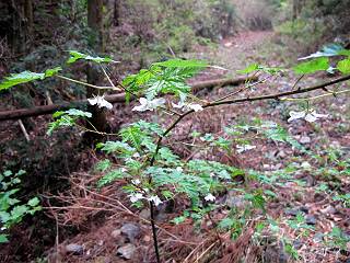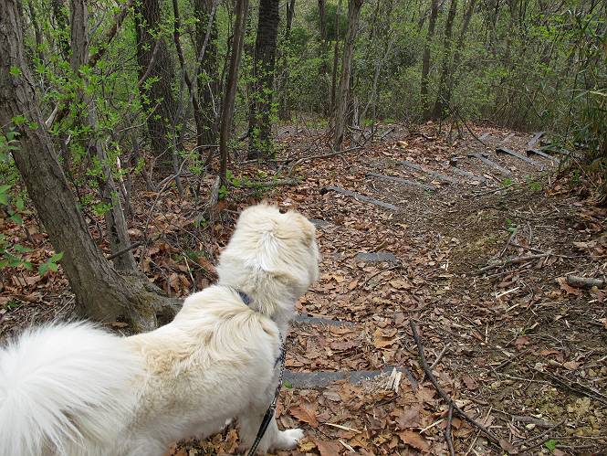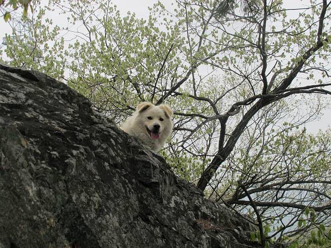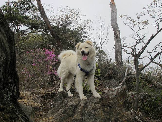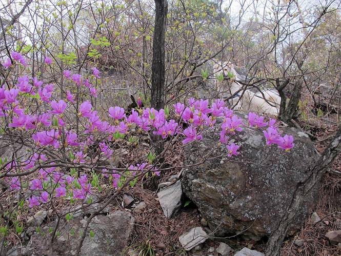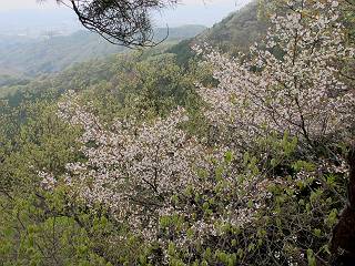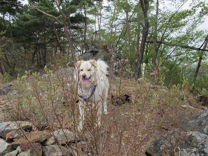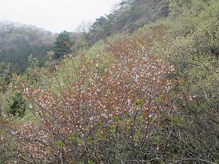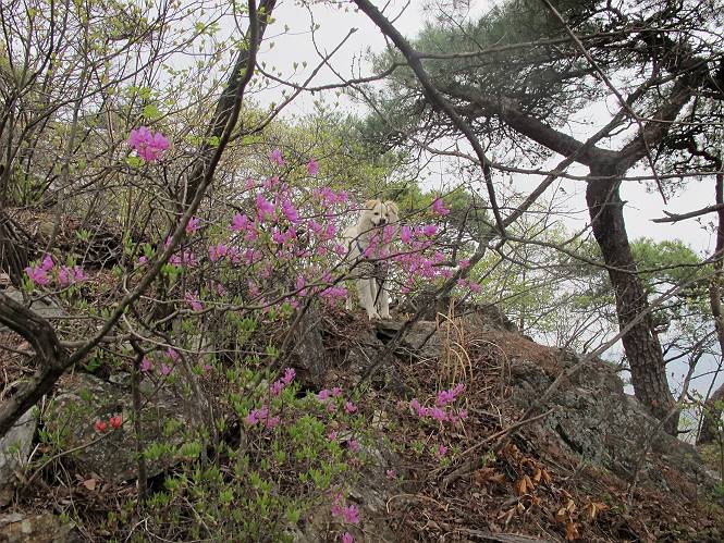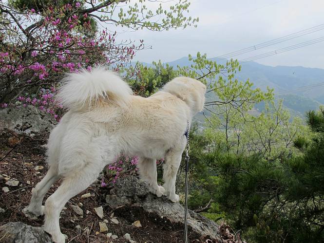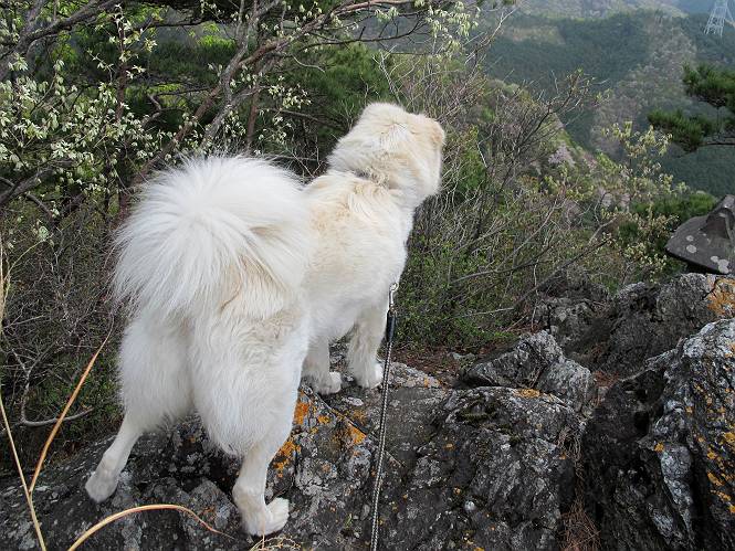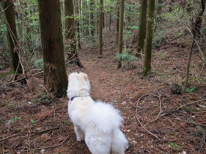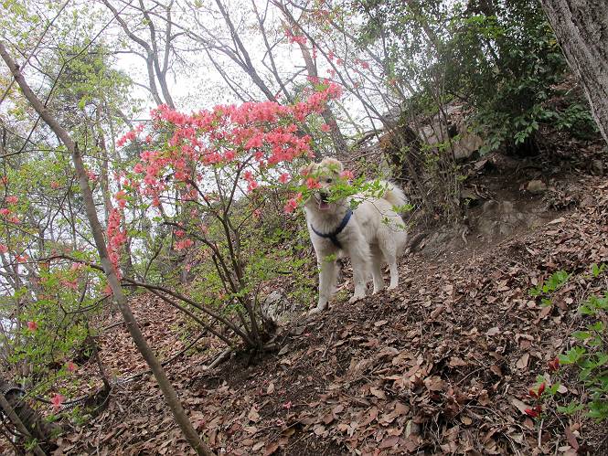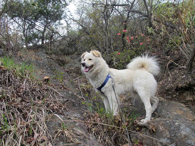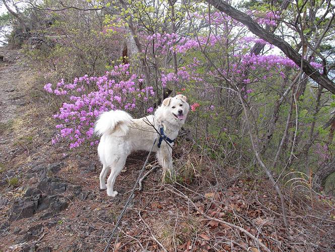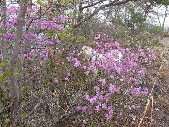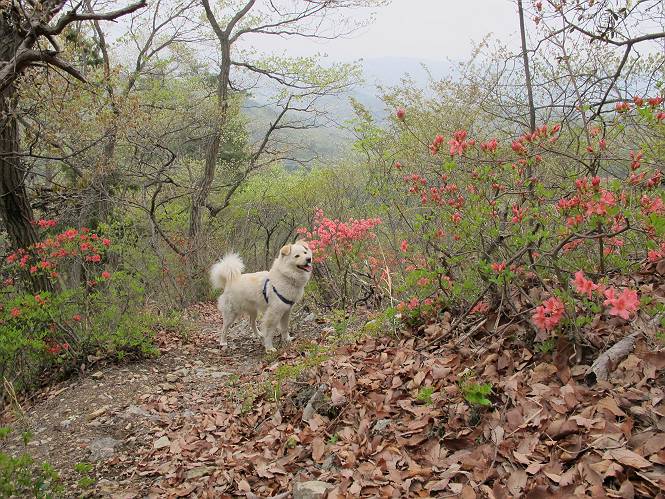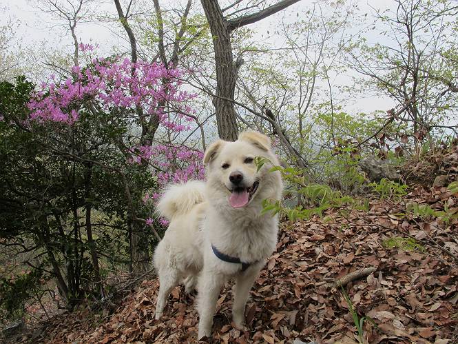 | 平成二十三年四月二十一日 Before 写真集目次へ Next 足利の山、湯殿山へツツジの花を見に行ってきました。すっかり若葉に変って、ツツジやヤマザクラが沢山咲いてました。残念ですが、曇りで遠くの景色が霞んでました。 新緑の美しい尾根道を歩いてます。 ヤマツツジが満開に近いようです、小枝の間から「お父さんが見えますよ」 ヤマツツジがきれいですね、色の濃いのと薄いの、いっぱいだ。 岩場に近づいたら紫色のミツバツツジが咲いてました。このツツジもきれいですね。 岩場から登ってきた下の方を覗いてます。直ぐ下は崖になってます。 「ヤマザクラを撮ってるんですか」、「そうだよ」 ヤマザクラが少し葉を出して、花は満開です。 西の方にも大きな岩場がありますね。 「今度は何を撮っているのかな」 「花を撮ってるのかな、ぼくを撮ってるのかな」 岩場を過ぎると平らな所に出ました。 すぐ奥が祠のある湯殿山の山頂です。 下の方にお家が沢山見えてますよ。 湯殿山に到着です。 ひ・と・や・す・み、しました。今日はオヤツを持ってこなかったそうです、お水だけでした。、そろそろ出発です。 東の岩場を下ってます。 深高山が見えているようですが、ぼくにはわかりません。 岩場から南に下って、松の倒木の間を通って鉄塔へ進みます。 この辺にもミツバツツジが沢山咲いてました。 ここに湯殿山の三角点があります。 こちら側からも下の方にお家が見えますよ。 鉄塔まで下ってしまいました。 雑木林の中の階段を下ります。 間もなく右に曲って杉林を抜けると林道に出て、車はその奥です。 小さな沢沿いにヤマブキやモミジイチゴの花が咲いていました。湯殿山は低い山ですが、見晴らしは良いし、今の時期ですといろいろな花に出逢えるんですね。ヤマツツジとミツバツツジは今が見頃ですよ。 Before 写真集目次へ Next |