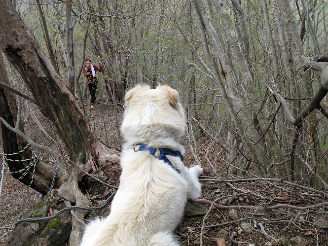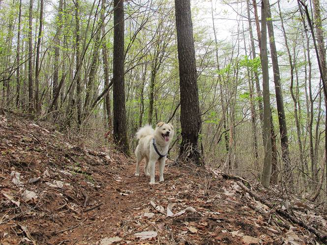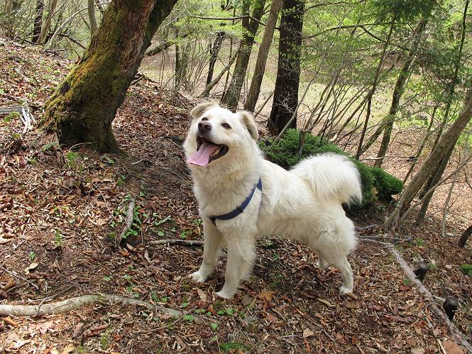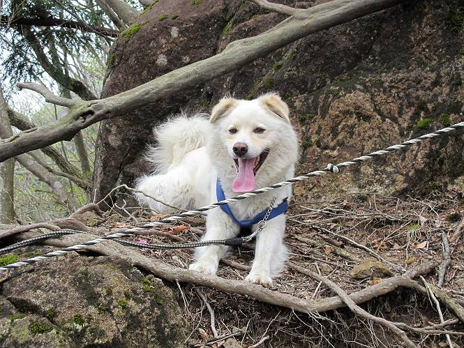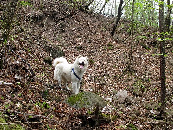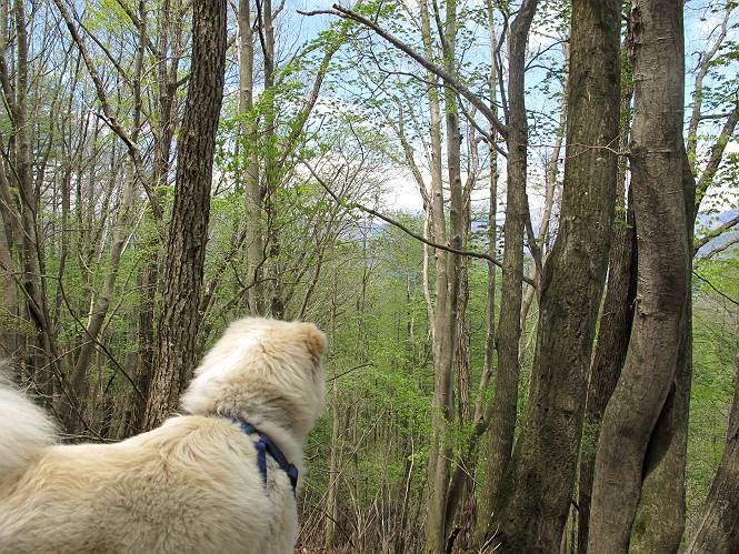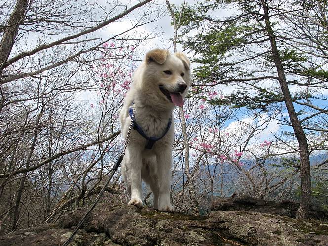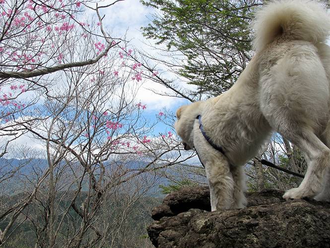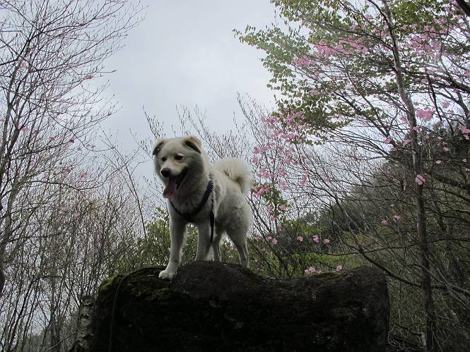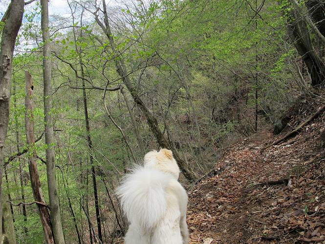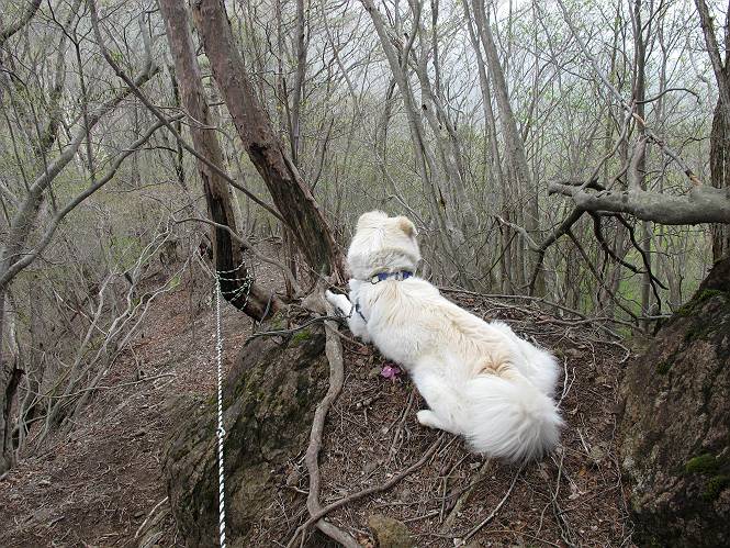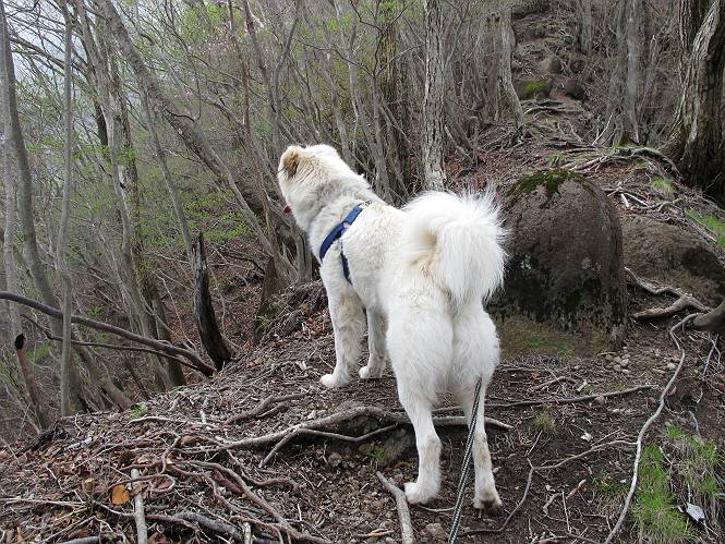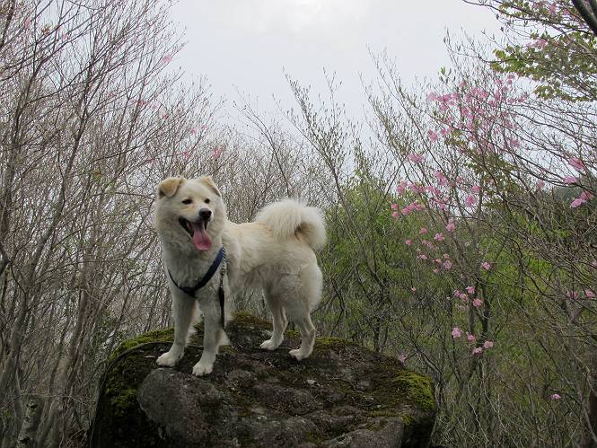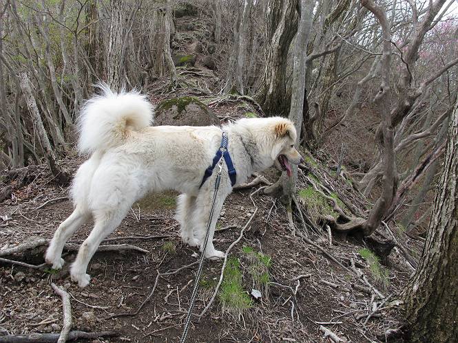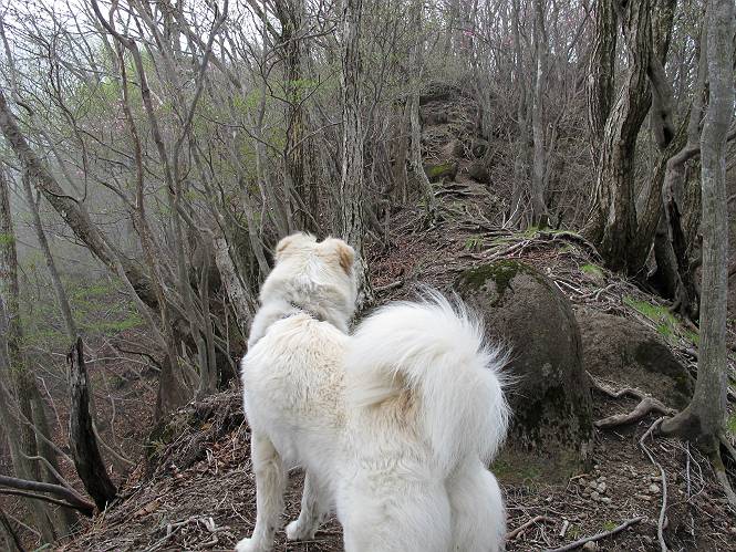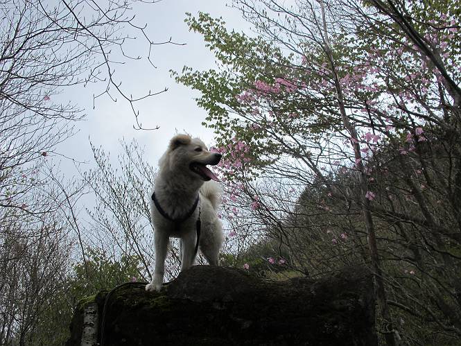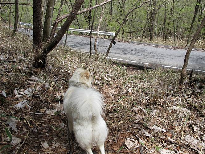 | 平成二十三年五月十三日 Before 写真集目次へ Next 日光市と鹿沼市の境、粕尾峠の南にある地蔵岳へ、お花見に連れてってもらいました。足尾から鹿沼へ抜けるクニャクニャした山道を走って粕尾峠の少し手前が登山口です。今日はお母さんも一緒です。 地蔵岳の登山口です 新緑の道を進むとオオカメノキの花が咲いてました。 ここで早速一枚撮ってもらいました。 坂道がここで一旦終わって少し下るようです。 ミツバツツジがきれいに咲いてました。新緑の林の中で目立ちますね。 お父さんに付いて来たら変な所にでてしまいました。少し戻って下ります。 道の脇をちょっと上ると、首なし地蔵にでます。 首なし地蔵です、お母さんがお賽銭をあげてましたよ。 また、しばらく上りが続きます、根っ子だらけの急坂に入ると、まだ葉が出ておりません。アカヤシオが咲いてました。早速お父さんが、写真を撮り始めました。ぼくは、お水をもらって一休みしてます。 お母さんが来ないなあ、ちょっと離れてしまったようです。「お母さん、早く!」 来た、来た、「こっちだよ」 アカヤシオの花です。赤のこいのとうすいがあるようです。残念ですが、散り始めてしまったようです。 お父さんは下の方へ降りてったようです、「来た、来た、そろそろ出発です」 細い尾根を歩いてます、右も 左も深いですねえ、落ちたら大変だ。 ここも根っ子だらけです。 また、写真休憩です。散ったアカヤシオの花びらが沢山落ちてます。 少し進んで見晴岩に着きました。ぼくの後ろは前日光の牧場ですが、今日は霧で見えません。 アカヤシオ、きれいですね。 「お母さん、一緒に上って!」 北方向は雲が少し切れてきました。お花がきれいに写るかな。 ぼくの後に見えるアカヤシオです。 地蔵岳山頂に着きました。 山頂の三角点と祠です、小さいお地蔵様が中にありました。 ここの花も大分散ってます、強い風に負けたのかなって言ってました。 お水とオヤツをもらいました。 またおやすみです。お母さんはお花を探しにあっちの方へ、お父さんはカメラを持ってそっちの方へ、・・・。 「もう、帰るんですって」、この先、前地蔵まで面白いコースですが、今日はここまでだそうです。 帰り道、見晴岩の反対側の岩に上ってます。西側の山並が見えてます。 花もきれいだし、岩の上っていい感じですね。 この辺でアカヤシオはお終いです。 変ってミツバツツジの蕾が現れました、何だかおいしそうですね。 ここまで下ってくると新緑です。 「一枚、撮って!」 だんだん緑が濃くなってきましたね。 もう、少しで道路に出るそうです。 登山口にでました。 道路沿いの側溝の中を歩きながら、水を飲みながら車へ戻りました。 男体山がやっと顔を出しました。まだ少し雪が見えますね。 Before 写真集目次へ Next |