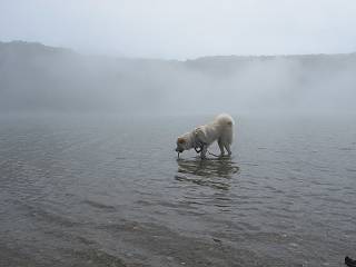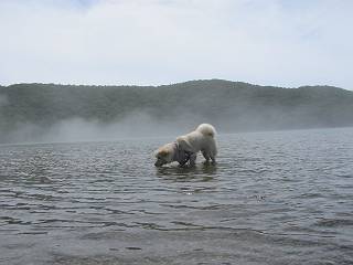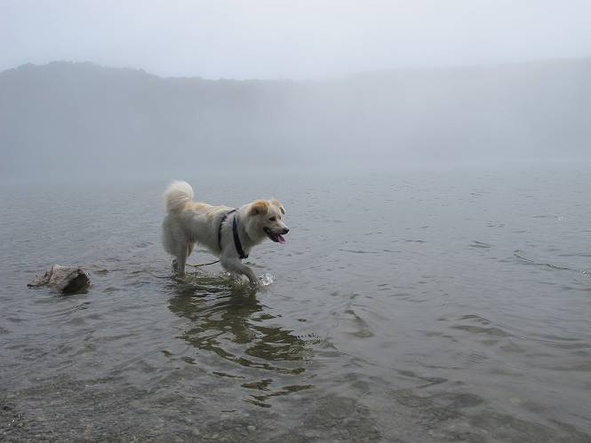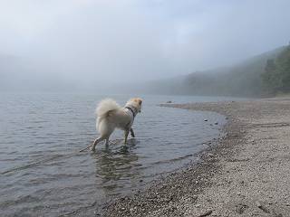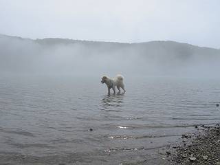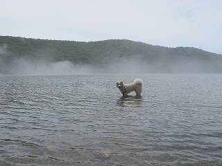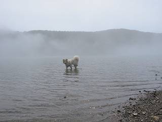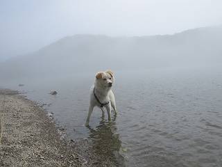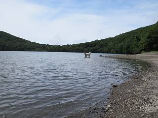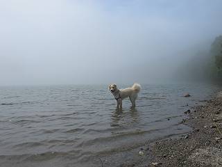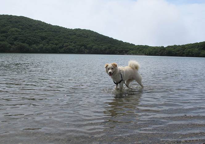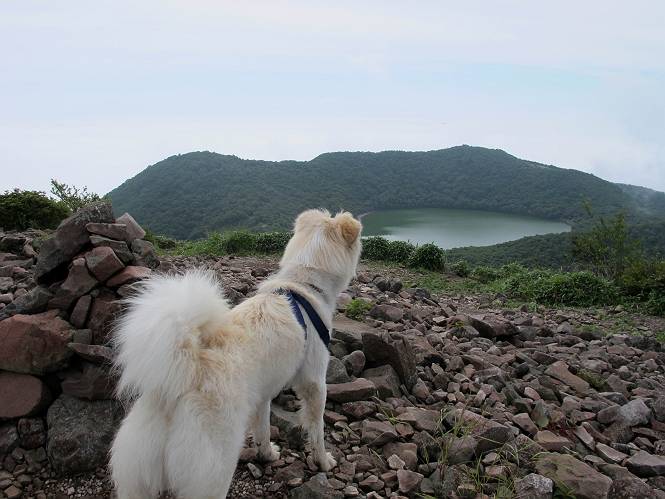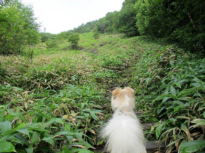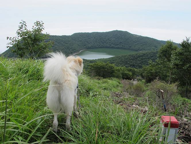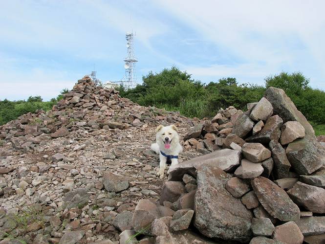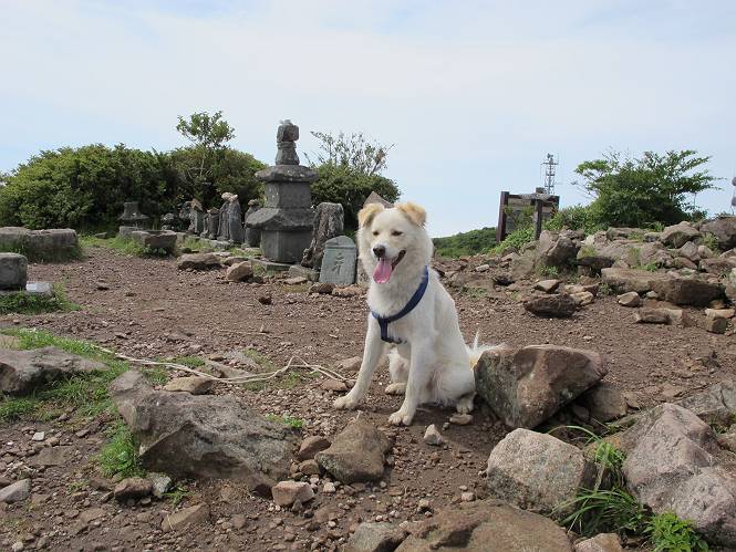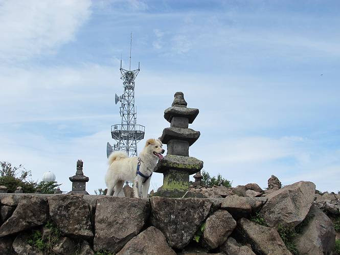 | 平成二十三年八月二日 Before 写真集目次へ Next 2ケ月ぶりに赤城山にやってきました。この前登った北のピーク、地蔵岳を八丁峠から往復します。ここへ来る道は濃い霧でライトをつけて走ってきましたが、忠治温泉から一台もあいませんでした。準備をしていると峠で親子が大きな網を振り回して昆虫を捕ってました。 笹の間の長い板の階段を上ってます。時々陽が差すまあまあの天気です。 一登りすると、横に緩やかに進みます。下には小沼とこの前歩いた牛石山が見えてます。 牛石山 小沼と長七郎山です。 お父さんは花を探してますが、なかなか見つからないようです。 また木段がしばらく続きました。 コメツツジ ハクサンフウロ ミネウスユキソウ 山頂の東側の休憩ポイントに出ました。下に小沼が見えてます。 銚子の伽藍と牛石山 黒檜山と駒ケ岳 山頂はアンテナの見える所です。 ぼくの後に見える山は黒檜山と駒ケ岳です。 ぼくの後に見える山は小地蔵岳と長七郎山、小沼です。 地蔵岳の山頂に到着です。 今日は、誰もいません。 お地蔵様を入れて撮ってもらいました。 良い眺めです。 でも、遠くの山は雲があって見えません。 北側に黒檜山と駒ケ岳、大沼です。 「こっちへ下るんですか」、「山頂をぐるっと回って戻ろう」 山頂を回ってきましたが、お花は少ないし、遠くの山は見えませんでした。 ここから少し下ると登山道に出るそうです。 やっと、一人、おじいさんがヨイショ、ヨイショって感じで登ってきます。 あと少しで木段が終わり、 八丁峠に出ます。 八丁峠から小沼にやってきました。霧に包まれてぼくだけが目立つでしょう。ここは砂浜と浅瀬が多く、大好きな水辺です。休憩を入れて1時間ほどたったそうです。 「忠治、そろそろ帰るぞ」、「ハーイ、また連れてきてね、ワン」 Before 写真集目次へ Next |