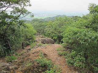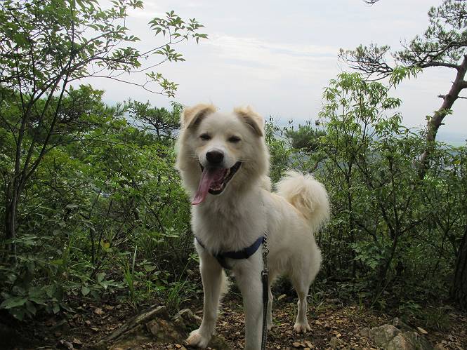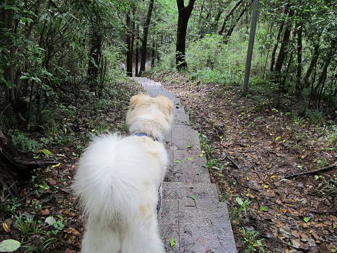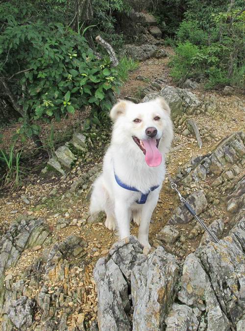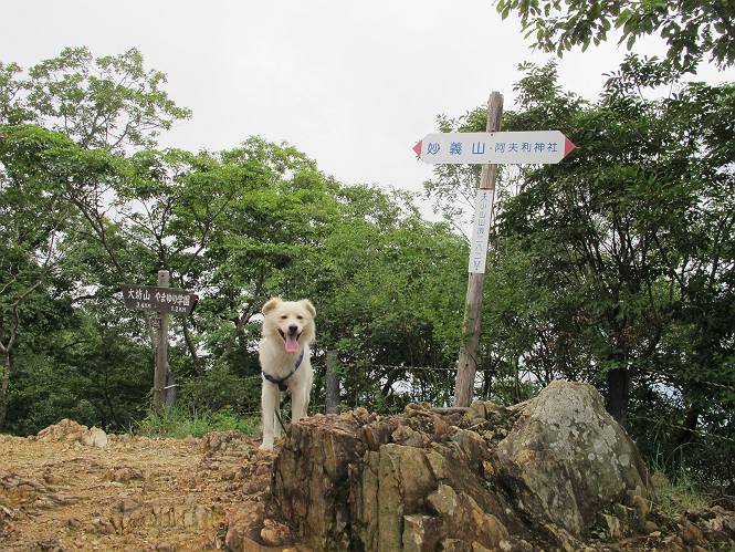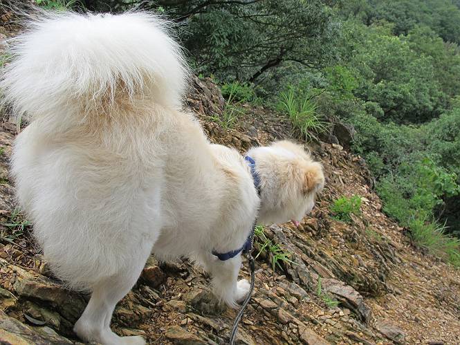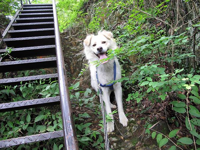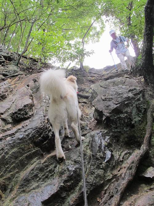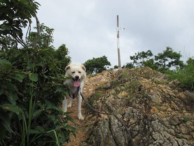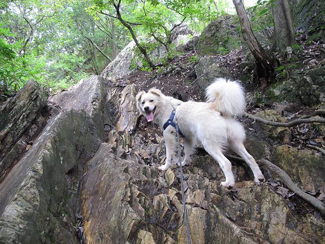 | 平成二十三年八月二十六日 Before 写真集目次へ Next 何だか雨が降りそうな空模様となってしまいました。でもお父さんと一緒に足利の大小山へ出かけました。阿夫利神社の駐車場には5台ほど車がありました。ここからコースを右に取り、杉林の中の急坂を登って雑木林に出ました。 蒸暑くてお父さんはすごい汗をかいてます。ぼくは呼吸が早くなってますが、まだ大丈夫です。 間もなく登山道にゴツゴツした岩が出てきました。 東の景色が開けました、佐野方面だそうです。 歩いてきた登山道です。 ハッ、ハッ、ハッ、ハッ、呼吸が早くなって熱いツバが吹き出てます。 岩場にでました。4名のGrが下ってきましたので、待っているとそれぞれぼくの頭を撫でてってくれました。写真も撮ってもらいました、良く撮れたって言ってました。 上りはじめるとおじさんが急に現れました、一段上って通過するのを待ちました。 岩の上に出ました、良い景色です。逆光で面白い写真になりました。 その先で“大小”の岩の見えるところで小休止しました。 次の岩場に出ました。 「ヨイショ!」 まだまだ続くようですね。 横に這いあがってます、カッコイイでしょう。 また岩の上に出ましたよ。 山頂かと思いましたが、 あと少しで、妙義山の山頂だそうです。 妙義山の山頂に着きました。 南方向の足利の街だそうです。 東方向の佐野の街だそうです。 また、お水を飲んで一休みしてます。 誰も来なかったですね。 ここから南方向に少し下って、 次のピークに出ました。ここが大小山だそうです。ここ東側の崖に先ほど見た“大小”の大きな文字が取り付けられているそうです。 大小山山頂 南に伸びる登山道です。 また一休みしてます。誰も来る気配がありません。 大分お休みしました。今日は暑いので、ここから最短距離で駐車場に戻ることになりました。 ちょっと進むと展望台経由駐車場への分岐点があります。 東の風景です。 大小山の南側から東側へ巻いて進みます。 この階段、狭くて急、大きなスキマがあるので、ぼくは階段に沿って斜面を下りました。 ここがアズマヤの展望台です。 上を見上げると大きな字が岩場にあります。 女坂をルンルン気分で下って駐車場に戻りました。 蒸暑かったけれど、山は楽しいですね。雨にも降られなかったし、ダニもスプレーしましたから大丈夫でしょう。ほんとうは大坊山まで歩きたかったのですが、途中でやめました。 Before 写真集目次へ Next |