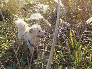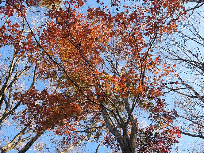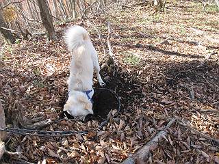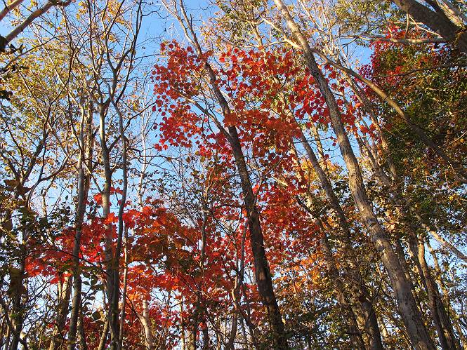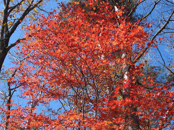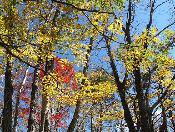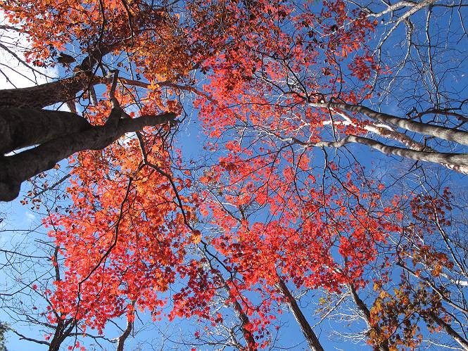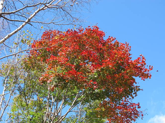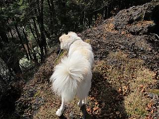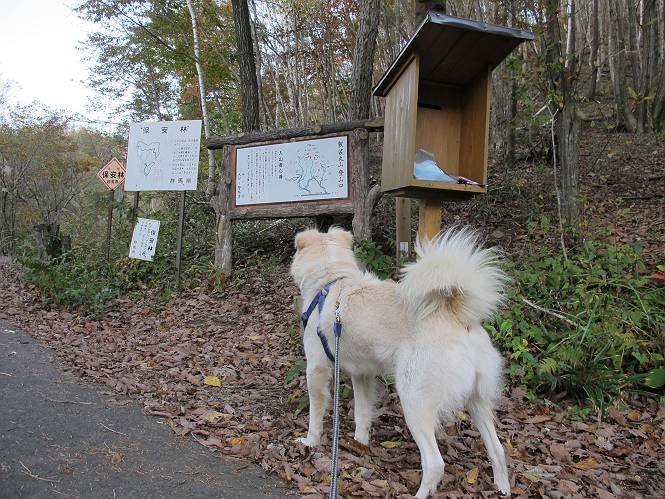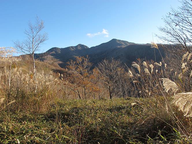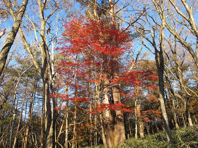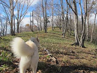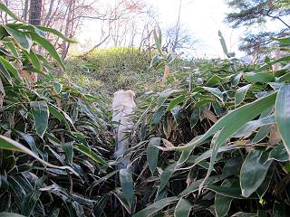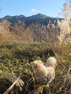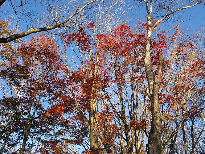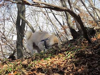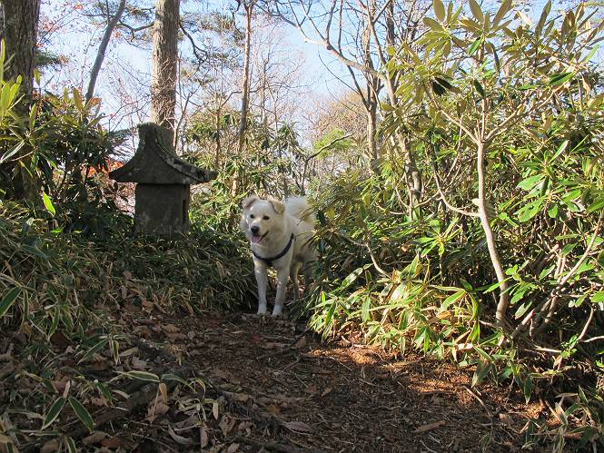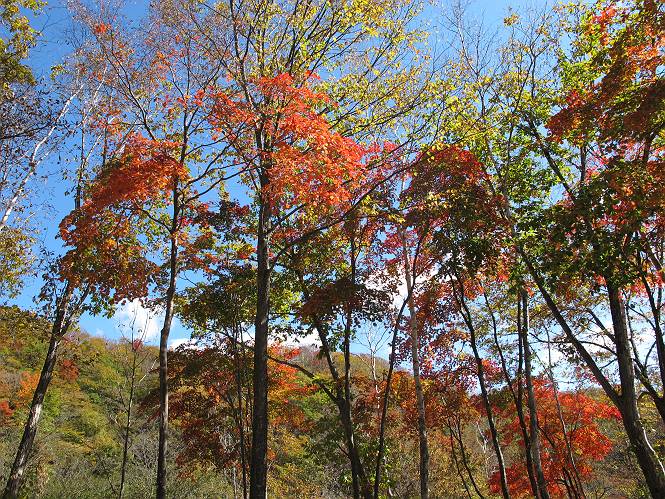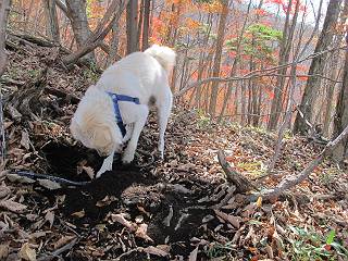 | 平成二十三年十月二十六日 Before 写真集目次へ Next ほんとうは、ぼくの誕生日の予定だったのですが、お父さんは富士山に行ってしまいましたので、1週間遅れで後袈裟丸山に行って来ました。途中までは2度行ってますが、山頂ははじめてです。 郡界尾根の登山口です。 ここから尾根に出るまで木段が続いてます。 ほとんどこの付近は終わってしまいましたが、残っているカエデの紅葉を見ながら歩いてます。 この丸太のハシゴを上れば尾根にでるのですが、最後の3段は引っ張り上げてもらいました。 緩やかに笹の斜面を進みます。 所々に綺麗な紅葉が残ってます。 この辺の紅葉です。 袈裟丸山が見えました、ヤブをこいで写真を撮ってもらいました。 右が前袈裟丸山で左が今日登る後袈裟丸山です。 広々とした尾根にでました。 白樺の大きな木です。 この辺はもう終わってしまいましたね。 少し下って登り返しました。 また東斜面に点々と紅葉が残ってます。 落葉樹から針葉樹に変るようです。 針葉樹の尾根から眺めると綺麗です。 根っ子の斜面を急登します。 シャクナゲの群生地に入り石祠がありました。 正面から撮ってもらいました。 緑のコメツガの樹林帯もいいですね。 まだ紅葉が残ってますよ、後は前袈裟丸山です。 所々深い笹道があります。 細い岩尾根もあります。 岩の上で小休止しました。 岩場、笹尾道を繰り返します。 段々勾配を増してきました。 根っ子に引っかかったりしながら急坂を登ってます。 やっと後袈裟丸山山頂につきました。 雲が多く、風も強く、周りの景色は見えません。時々白いものが飛んでます、風花だそうです。 こちらは道がありますがどこへ行くんでしょうか。 奥袈裟丸山だそうです。 オヤツを頂きました。ちょっとたりなかったな。 後の山は前袈裟丸山です。折場から登りました。 風が強く、寒いので早目の下山です。 ここまで下ったら陽が差してきました。 単調な下り道なので、ちょっと穴掘りで変化をつけてます。 ちょっと掘りすぎてしまいました。 風が強く、ゴー、ゴー鳴ってます、ぼく怖いです。 尾根の少し下を風を避けながら、遊びながら下りました。 笹の原で再び紅葉を眺め 笹の原 三角点 木段を下って 登山口付近の紅葉も青空に映えて、輝いてました。 ぼくん家の車が見えました、登山口到着です。 Before 写真集目次へ Next |