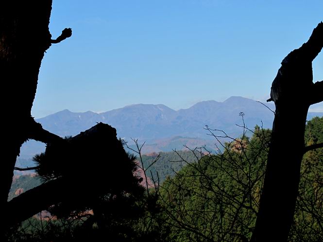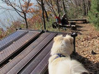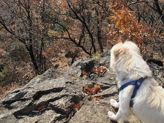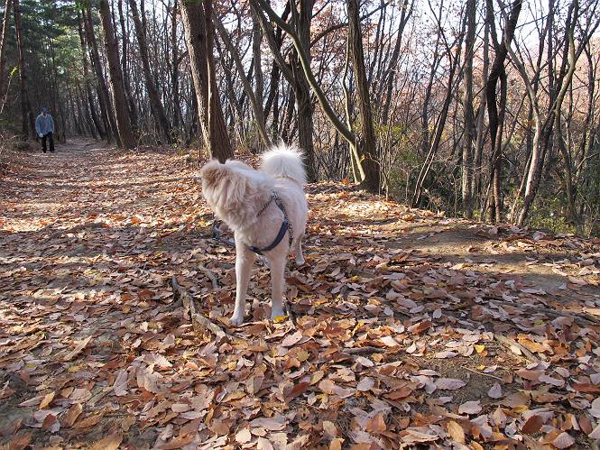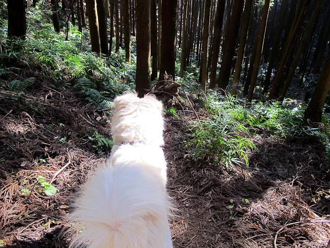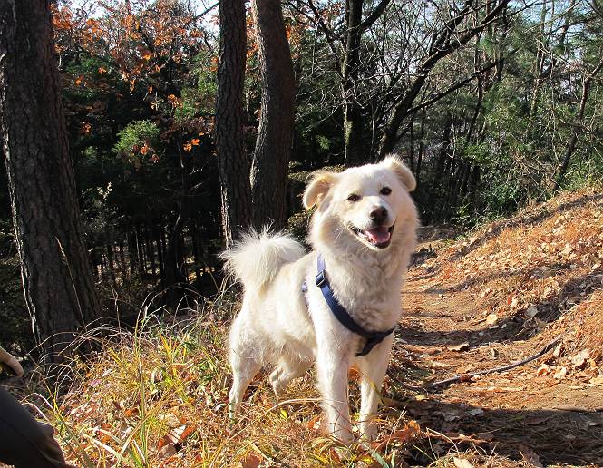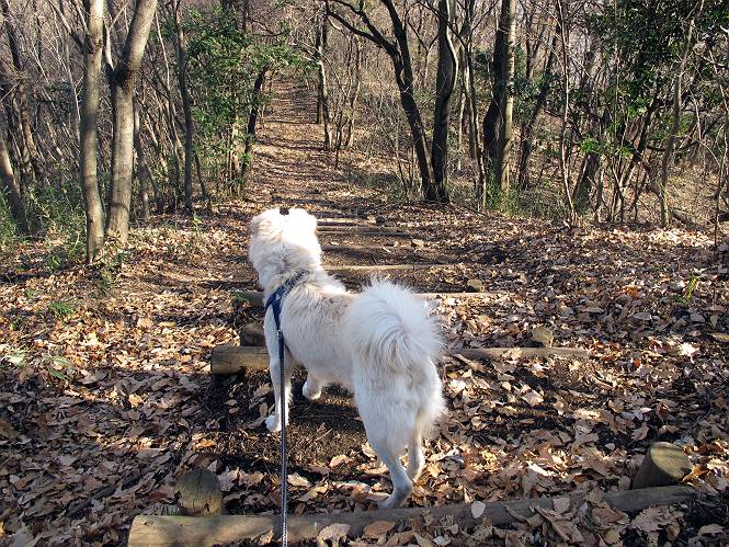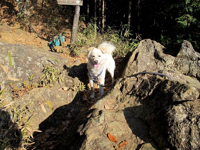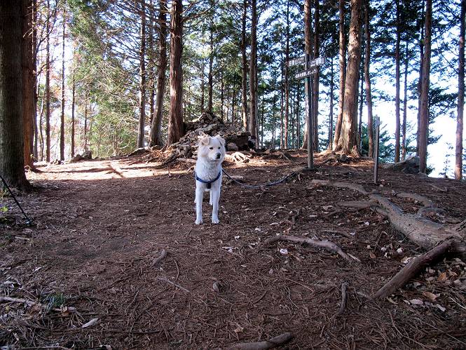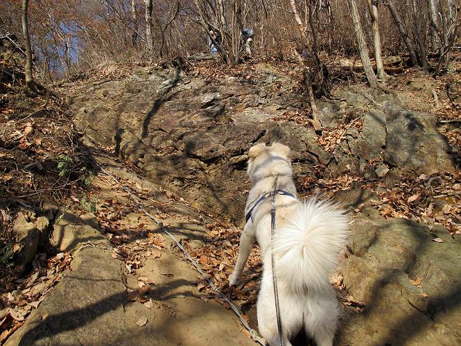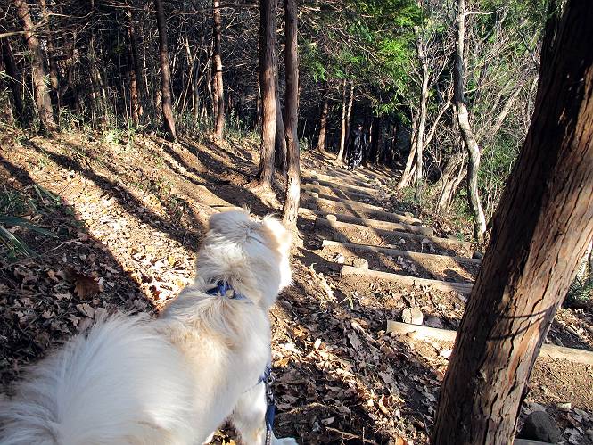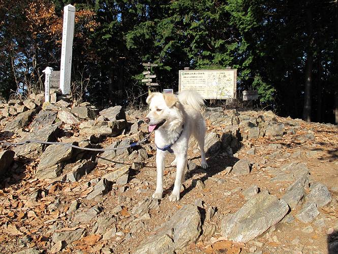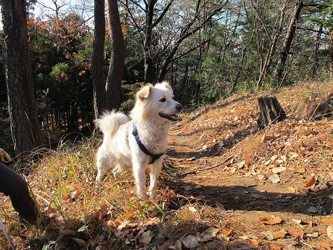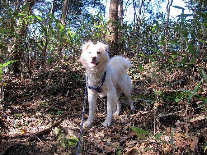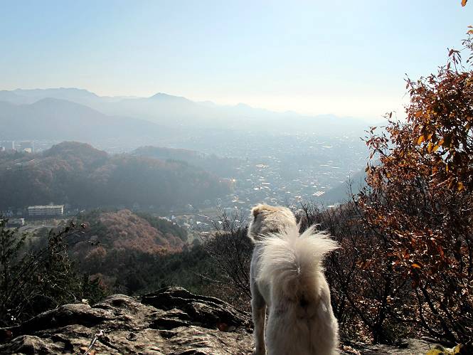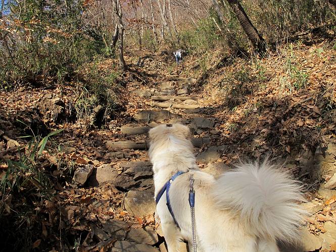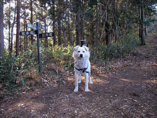 | 平成二十三年十二月十五日 Before 写真集目次へ Next いつもの車がないので、別の車の後部をシートで被ってぼくの毛がつかないようにして、桐生の吾妻山を歩いてきました。吾妻公園の駐車場から“哲学の道”を通って尾根道に出ました。しばらく進むと登山口があって、ここから山道に入りました。早い散歩の人たちは、もう下ってきています。ポカポカ陽気にお父さんは、もう、脱いでます。 ぼくは、このくらいが好きですね。 あの人、追いついてきますね。 大きなトンビ岩に着きました。「上っていい?」 桐生の街が見えましたが、大分霞んでます。 「忠治あまりのり出して落ちるなよ。「ハーイ、下を歩いている人が見えるんですよ」 トンビ岩からかなりの急坂になりました。階段や ロープを張った岩場が出てきます。 そして、間もなく山頂に着きました。 桐生の街 お休みしている人たちもいます。 北方向に下って、 軽く上ると反射板のある女山に出ました。 木々の間から赤城山を見ながら下りました。 間に小さいピークが二つあって、村松峠に出ました。 左に下れば川内町、右に下れば宮本町です、右に下るそうです。 何だか急に道が細くなりました。 間もなく杉林に入りました。沢に出て、沢に沿って下りました。 杉林を抜けてしばらく歩くと里に出ました。 脇道もありましたがそのまま進み、回り込んで吾妻公園の駐車場に戻りました。ここも近くて冬など陽だまりハイクに良いところですね。 Before 写真集目次へ Next |