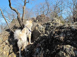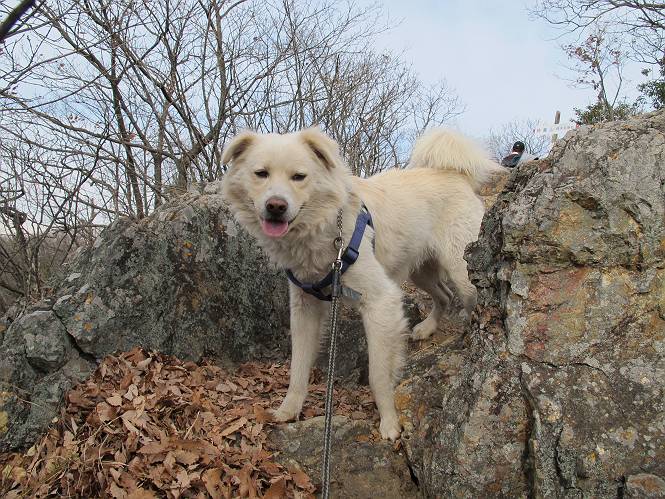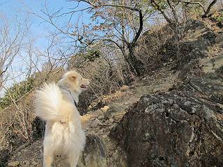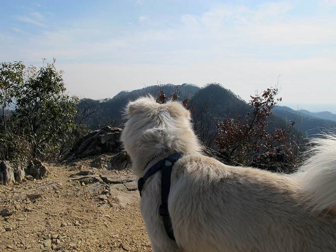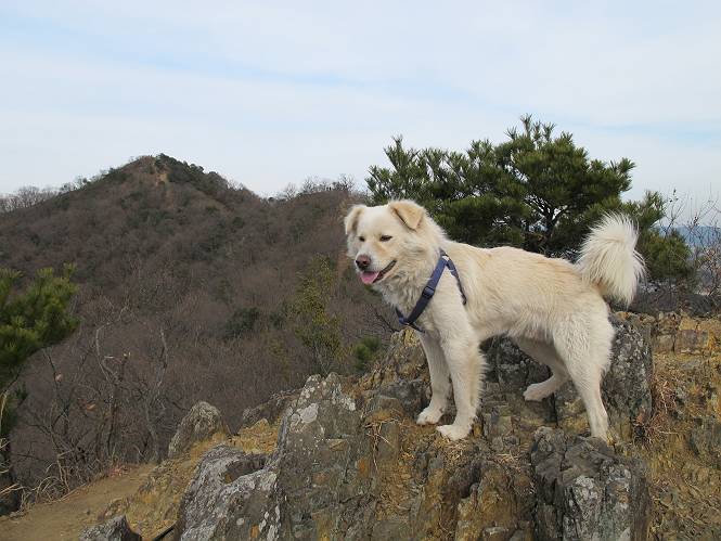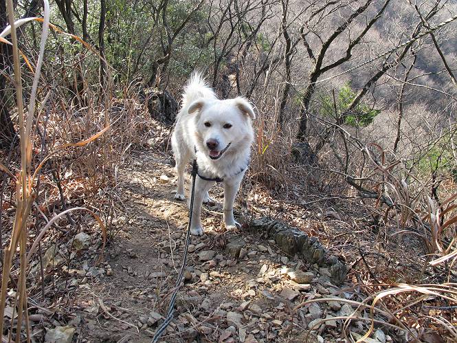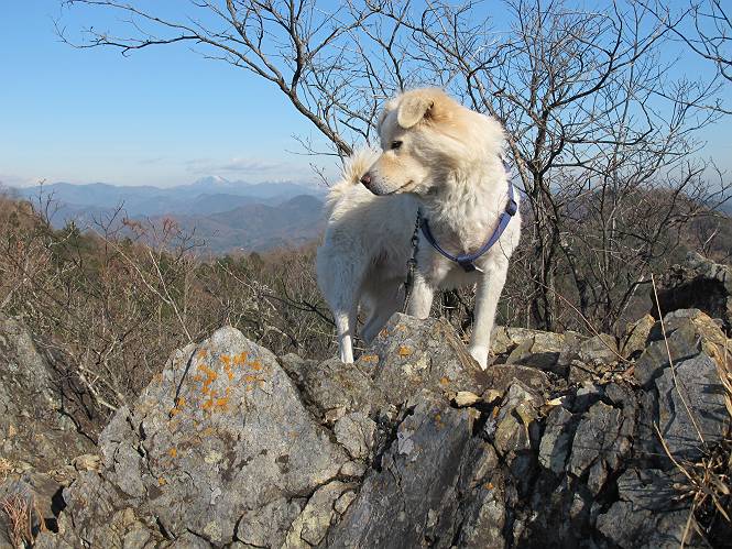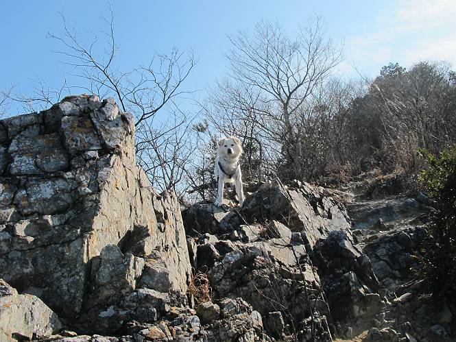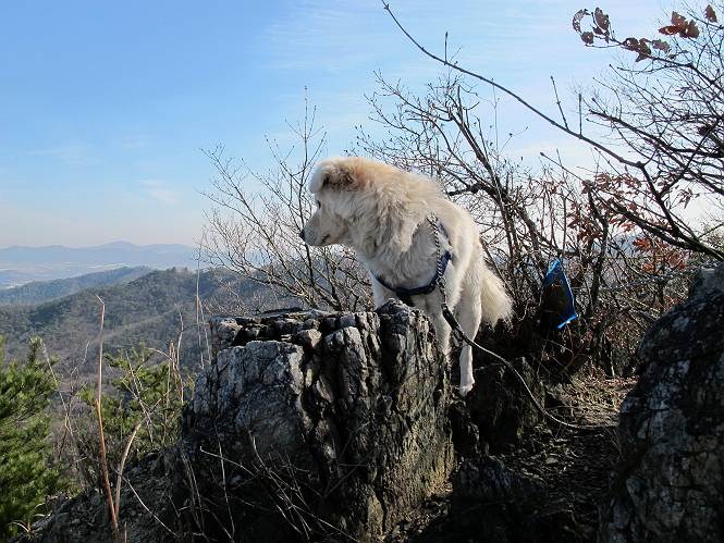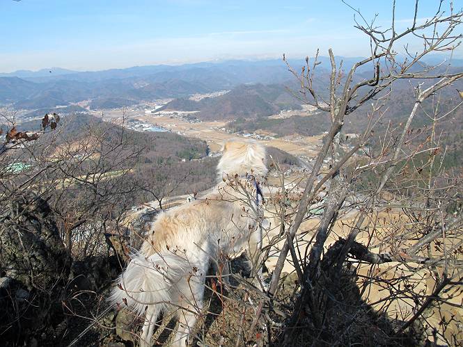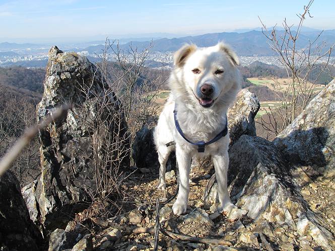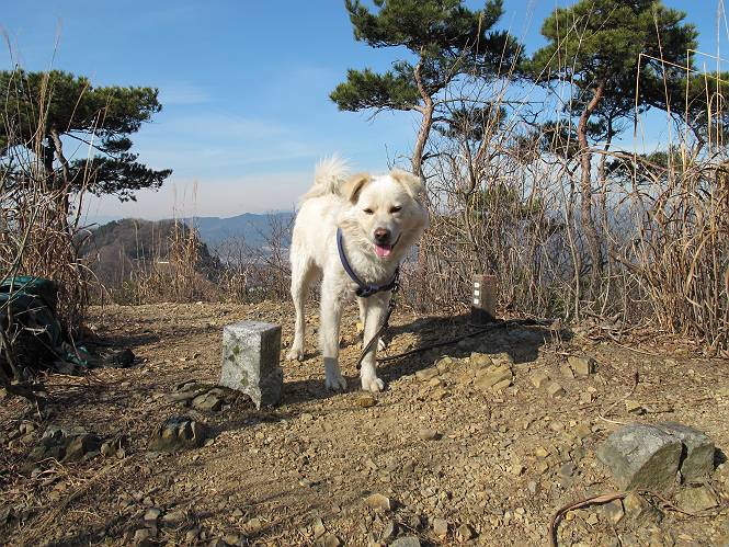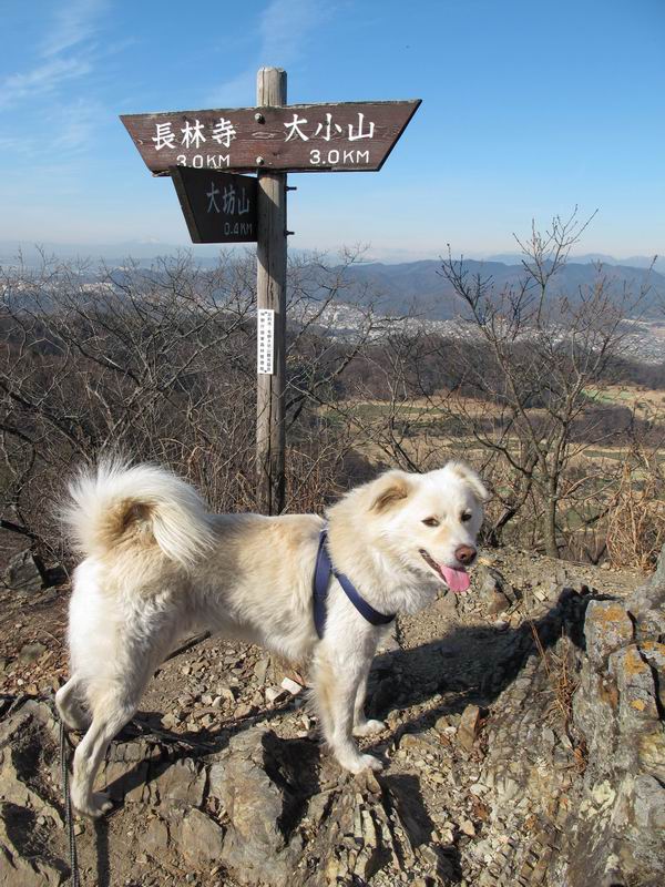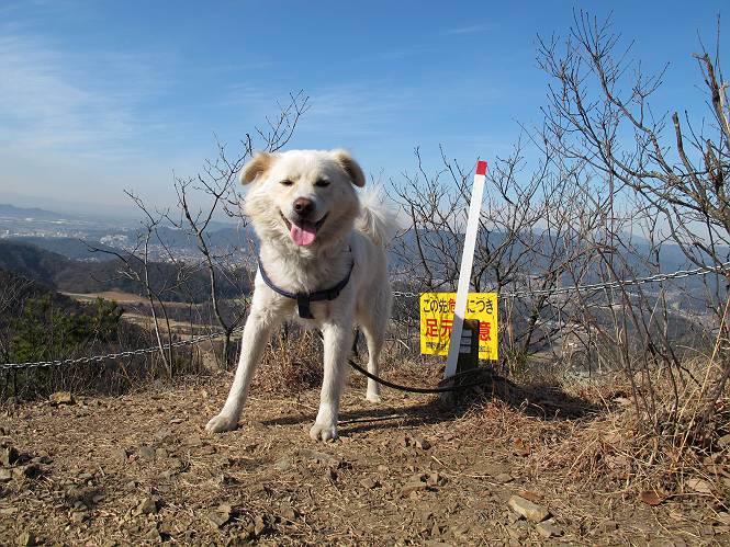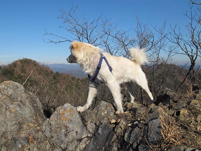 | 平成二十四年一月十日 Before 写真集目次へ Next 今日がぼくの初山歩きとなりました。足利の大坊山と大小山を一周してきました。お正月気分で大山祇神社に参拝して、脇から木段を上ってしばらく雑木林の中を歩きました。 雑木林を抜けると見晴らしのきく尾根に出ました。真っ白い浅間山と赤城山が見えました。 お父さんは暑い、暑いと沢山脱いでました。 南の下の方には足利の街が見えました。 暖かい日差しの中、落ち葉を踏みしめ、遊びながら歩いたのですが、 直ぐに大坊山山頂に着いてしまいました。 あれ何でしょう 三角点だそうです。 北側に周り、岩尾根を楽しみました。 お父さんの調子に合せて、ピョン、ピョン跳んで進みました。 「あれ! また頂上に着いたのかな」 「長林寺からの道が合流したんだよ」 ここも見晴らしがいいですよ。 浅間山、赤城山、男体山、女峰山が良く見えました、一休みしました。 この先に見えるピークが採石場の上だそうです。 そして北から東へぐるっと尾根伝いに歩きます。 まだしばらく岩尾根が続くようです。 ここは少し下を巻いて、 また岩場に出ました。 この下で、山を崩して石を使っているんですって。 ロープの内側を少し進むと、 南側のピークに出ました。 ここが採石場の南のピークです。ここ、怖いよ! スゴイ崖だよ。 でも覗いて見たいなあ、スゴイなあ、何かいっぱい動いているよ。 こっちも、スゴイぞ。 大きな山を削って、ここが少し残っているんだってさ。 ここが北側のピークです。 「あまり前に出るなよ」、と言われましたが、見たいんだもんね。 急坂を下ってお休み所にでました。 ここから少し下ると越床峠です。 登り返したピークです。ここの景色も素晴しいですよ。 先ほど通った採石場のピークです。 その右に赤城山が見えます。 左には大坊山が見えます。 これから向かう、山並です。まだ妙義山、大小山は見えません。 先ほど見えた尖ったピークにやってきました。左が妙義山、右が大小山だそうです。 次のピークです。ちょっと喉がかわきました、お水をもらって小休止します。 また岩尾根がしばらく続きます、お父さんの後ろを注意しながら歩いてます。 妙義山に大分近づきました。 また足利の街が下の方に見えてます。 妙義山の西のピークにやってきました。おじさん達が休んでまして、遊んでもらいました。 東方向に少し下って登り返すと妙義山です。ぐるっとひとまわり、見えるんですね。素晴しい山頂です。 ここにも沢山いましたよ。おばさん、おじさんとまた遊んじゃった。 南に進んで、大小山にやってきました。 大小山の南のピークです。後に見える、左が妙義山、右が大小山です。 少しずつ下ってますが、まだまだ岩尾根が続きます。 尾根から右に入り込むと山百合学園に出ました。ここから大坊山の登山口まで道路を歩きます。 この坂道を登れば、 大坊山の駐車場です、東屋に着きました。 大坊山〜大小山ぐるっと今年の初山歩き、楽しかったなあ。今年もいっぱい歩くよ。 Before 写真集目次へ Next |
