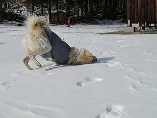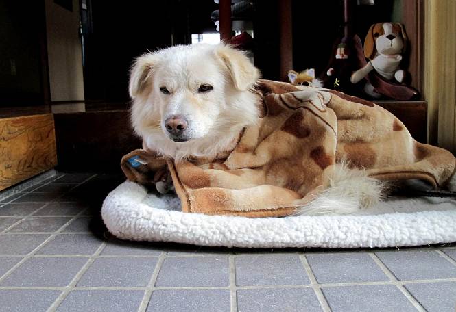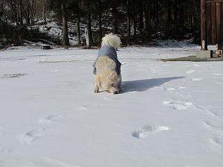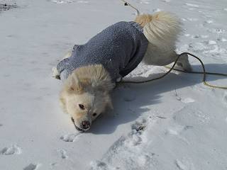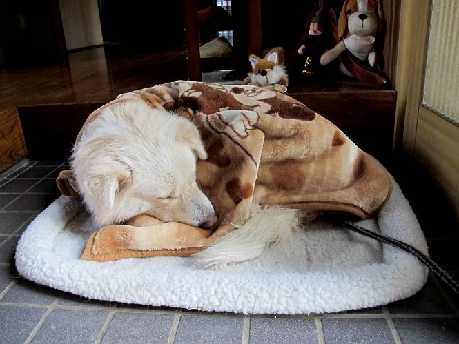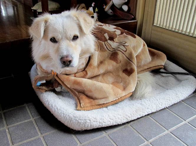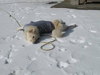| 平成二十四年一月十八日 Before 写真集目次へ Next 赤城山の利平茶屋森林公園まで雪遊びに連れてってもらいました。雪が大分解けてしまって山の斜面は土が出てました。奥の広場には少し残ってましたので、リードを長くしてもらって走ったり、寝転んだりして遊んできました。朝早かったので、とても寒かったですよ。 山でよごれてしまったので、午後になってシャンプーしてもらいました。まだ毛が少し濡れているし、 陽が陰ってしまい寒いなあ。 そんなわけで、毛布をかけてもらいました。今年はまだ冬毛が生えてこないので、 ブルブル震えていると、こんなカッコウにしてもらいます、暖かいですよ。 Z--、Z--、Z--、 気持ちよくなって寝ちゃったね。 「おなかがすいちゃったよ、ごはんちょうだい」 Before 写真集目次へ Next |