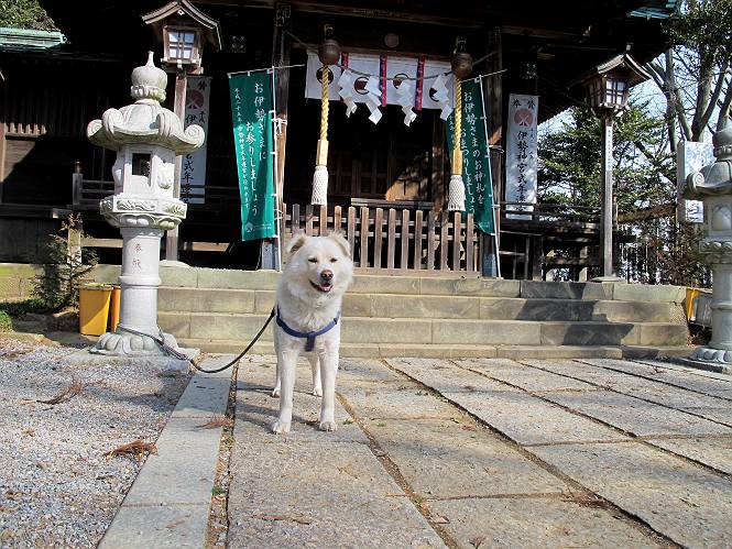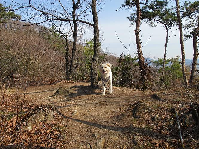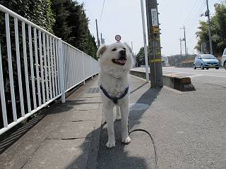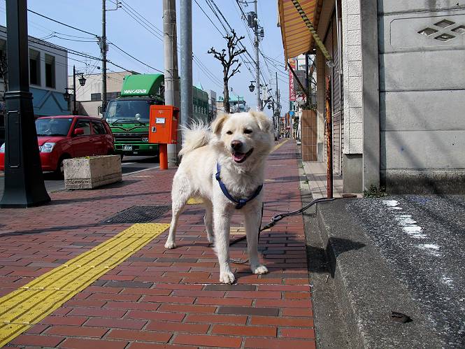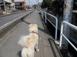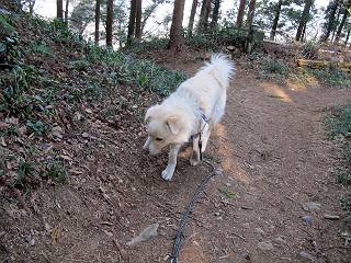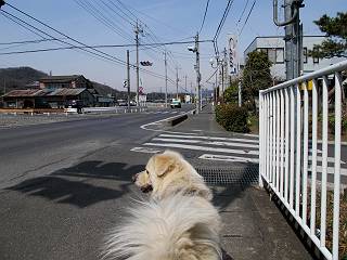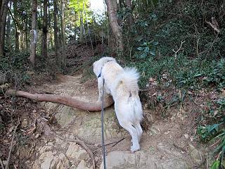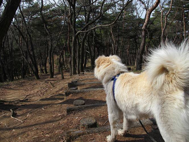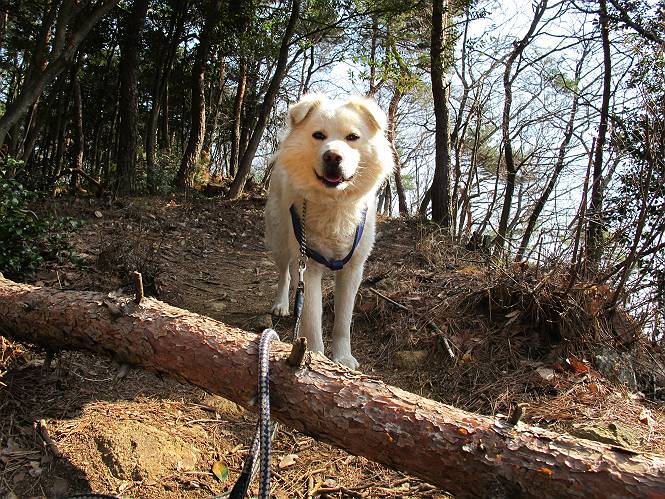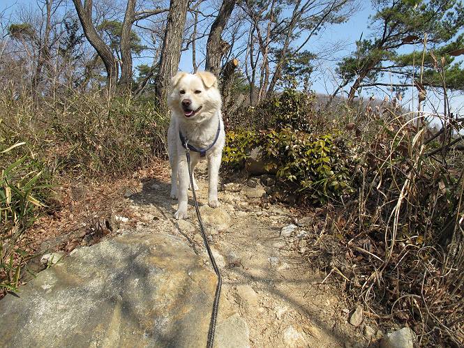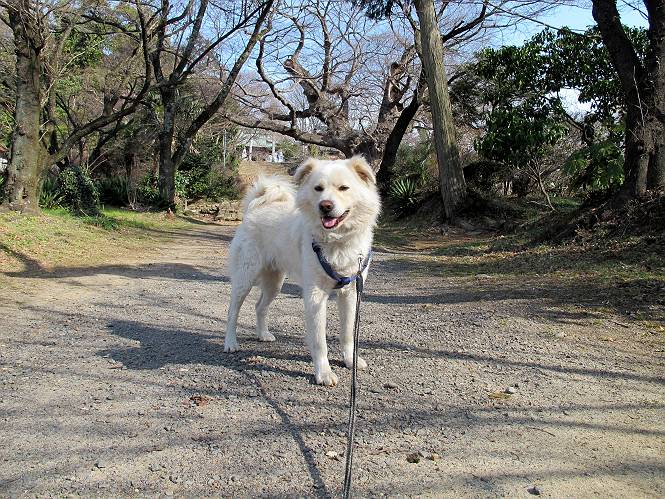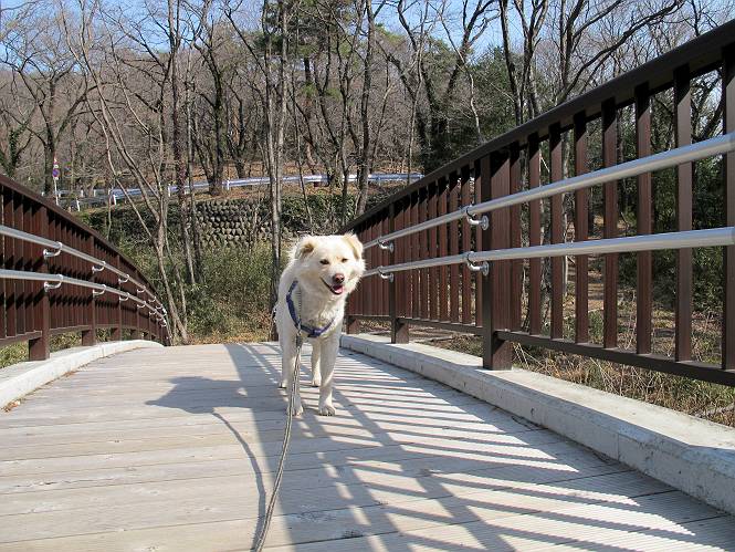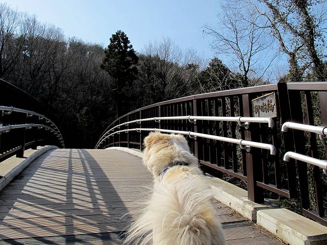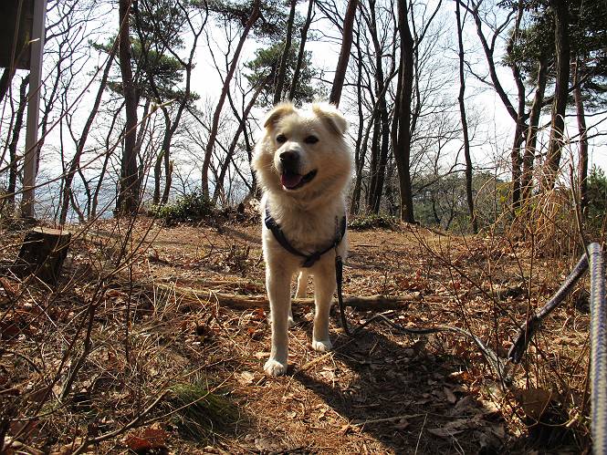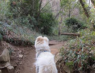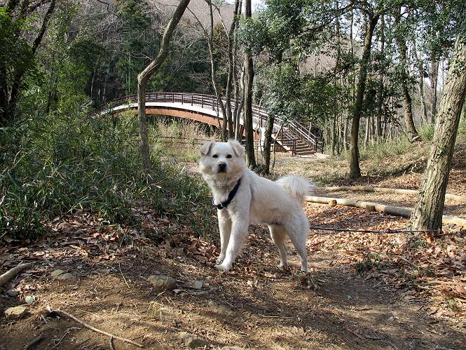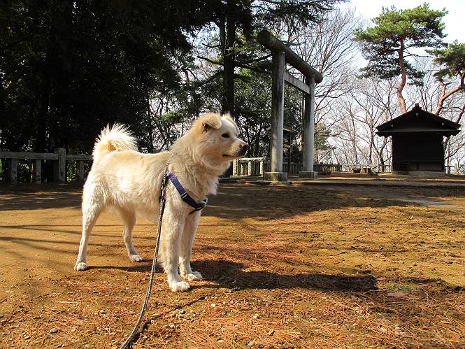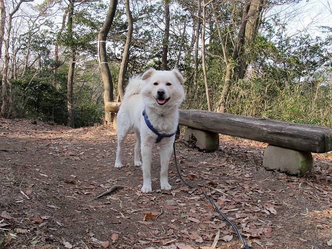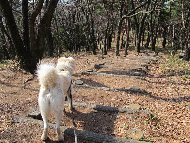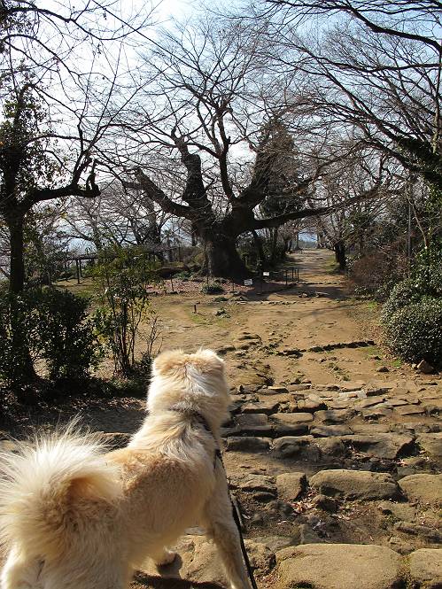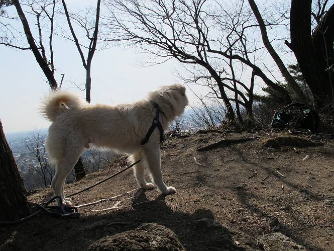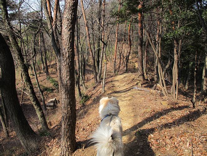 | 平成二十四年三月十六日 Before 写真集目次へ Next 明日からまた雨が降るんですって。今日は静かな良い天気だというので、ぼくんちから、いつもの散歩コースを通って金山キャンプ場まで道路を歩いて、キャンプ場から金山、八王子山、親水公園を通って、受楽寺から(高山神社のある)天神山へ進み、御城通り、本町通り、平和通り、と歩いて、熊野町へ、県道を桐生方面に進み、ぼくんちへ戻ります。簡単に言うと、山越えで太田の街に出て道路を歩いて戻ります。 キャンプ場の近くの篠竹を伐採した斜面をよじ登りハイキングコースに出ました。 尾根に出るとベンチと案内板がありました。 緩やかな道なのでラクチン、ラクチン。 ここはちょっと坂です、すぐに緩やかになって道標、ベンチ、案内板がありました。 こどもの国からの道がここで交わりました。 まだ最近通った道なので、スイスイ進んでしまいます。 最後にちょっと急坂を上れば金山山頂に出ます。 山頂にある新田神社です。 神社でお水を飲んで、ちょっとお休みしました。 新田神社の南にある大きなケヤキです。 大きいでしょう。 ちょっと離れて撮ってもらいました。 南の鳥居をくぐって石段を下ってます、南に見える丸い山が八王子山で、そこへ向かいます。 坂道を下って、東側の見える広場に着きました。 ぼくんちは見えるかな、わかんないや。 金山では珍しい細い尾根です、短いのですぐ渡れます。 御城橋の上に出ました、これから渡ります。 下に車が通っているのが小さく見えます、高いからぼく怖いよ。 ああ、怖かった。 回り込んで八王子山に進みます。 陽だまりハイクに良い道ですよ。 八王子山の西の峰で、中八王子山矢倉台という史跡ですって。 少し下ると太田の中心街が下に見えます。 七曲坂を下って親水公園に出ました、ちょっと失礼してお水を頂きます。 南に少し上って松林の中の階段を緩やかに下ります。 松の緑がきれいですね、間もなく受楽寺に出て道路を渡ります。 渡って高山神社のある天神山の北側に出ました、踏み跡の薄い道をまっすぐ上ります。 立派な社にでました。 これが高山彦九郎を祀った高山神社です。 南に下って街中に出ました、この通りは御城通りと言うそうです。 本町通りに出ました、歩いている人がチラホラ見えます。 あの人、ぼくを見てるよ。 もう少しで左に曲るんですって。 南金井です、車でいつも通っているのですが、??? 東金井に着ました。 ここは良く通る東今泉の交差点です、もう近いなあ。 やっと、ぼくんちに着きました。 随分歩きましたね、12kmぐらいかなって言ってました。街中を歩いたのははじめてです。 Before 写真集目次へ Next |