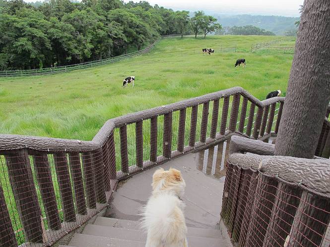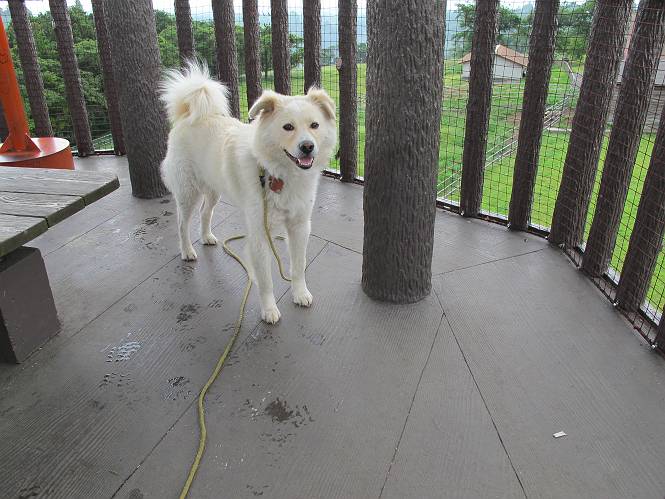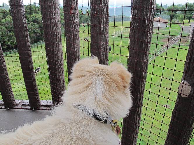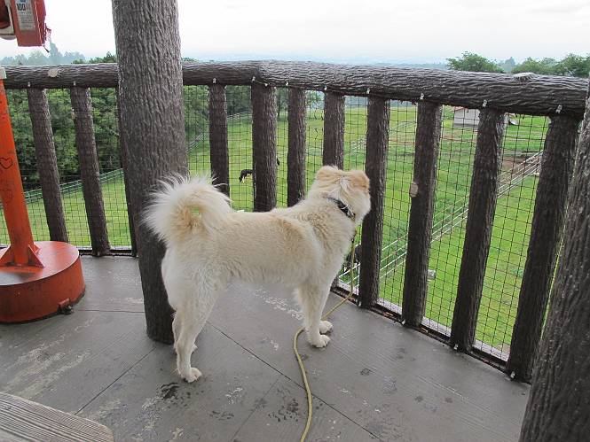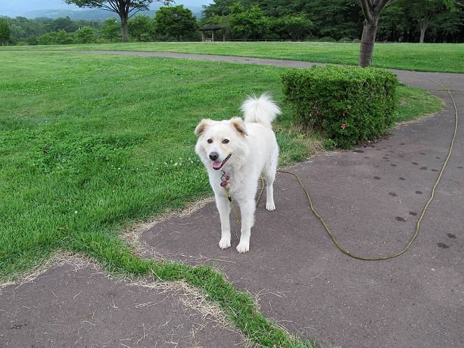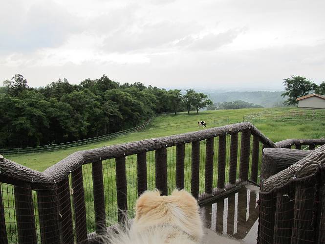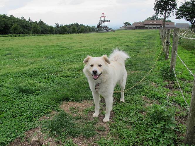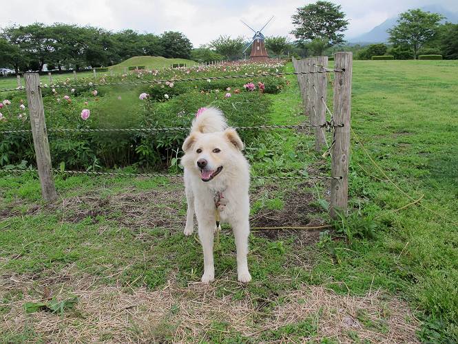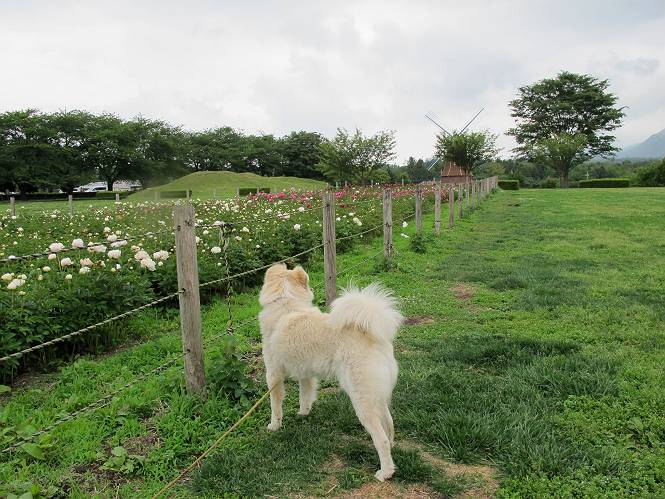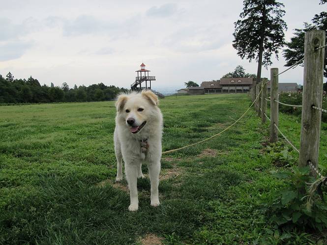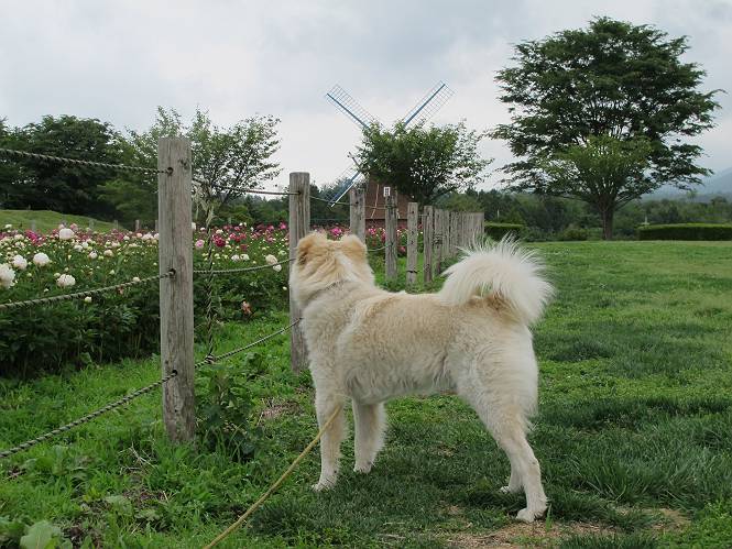 | 平成二十四年六月六日 Before 写真集目次へ Next 午後になって雨が止み薄日がさしてきました。お母さんの買い物について行き、大胡の道の駅で遊んできました。そうしたら、また降ってきちゃったんですよ。 ここの公園は良く立ち寄るところです。さーて、どこへ行こうかな。 お花がいっぱい咲いているんだそうです、そっちへ行ってみよう。 いっぱい咲いてますねえ、花と展望台と牛舎、良い景色ですね。 こちらは赤、 こっちは白、 沢山咲いてるね、この花はシャクヤクっていうそうです。 奥には小さい小山があって、大きな風車もあるんだよ。右に霞んで見えるのが鍋割山だそうです。 シャクヤクって、キレイだね。でも見ている人がいないんだよね。 「今度は走って、展望台に上ろう」、「いいね」 「ホントに走って、いい?」、「本気に走るなよ」 展望台の上にやってきました。 牛さんが草を食べてます、遅いお昼かな? 「草、美味しいかい、ワン」 黙々と食べてるよ、お腹がペコペコなんだね。 牛さんを見ながら階段を降りて、 牧草地へ出ました。 「今度は、風車まで走りますか」、「靴がビショビショになっちゃったから歩こう」 風車の周りを散歩してきました。赤城の裾野が少し見えてきたのですが、上空には黒い雲がやってきました。また降りそうですね。 言ったら、ホントにポツポツ降ってきました。 でも、もう帰るんだそうです。途中でまた遊ばしてくれるそうです。ちょっと残念ですが、・・・・・・。 Before 写真集目次へ Next |