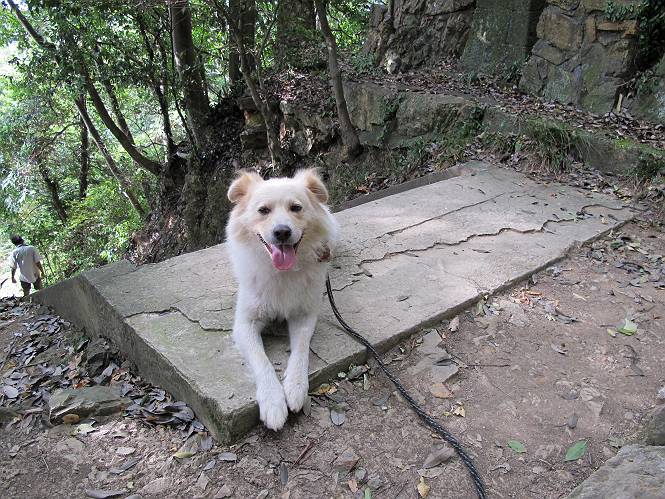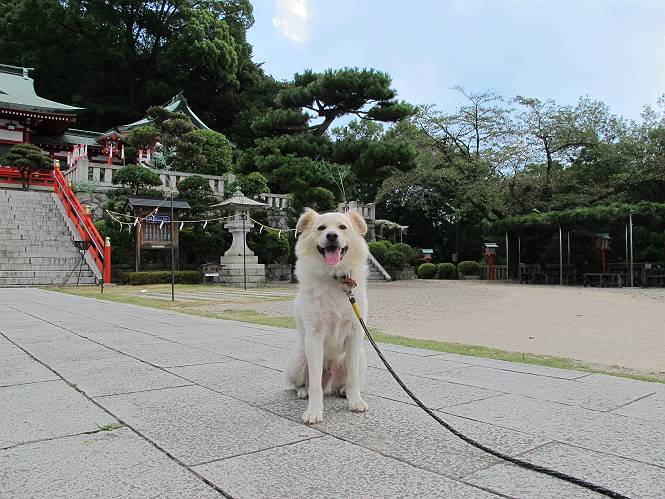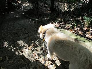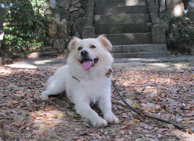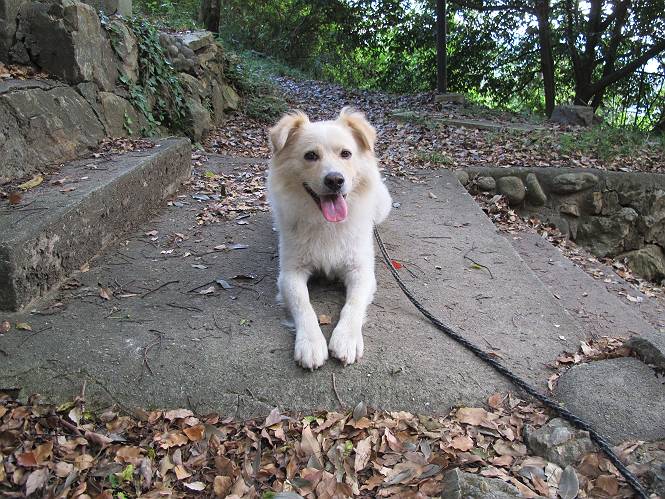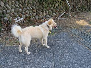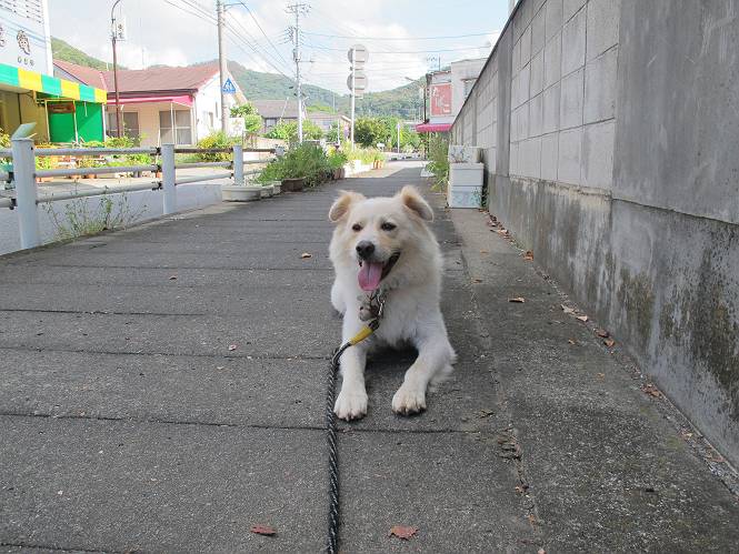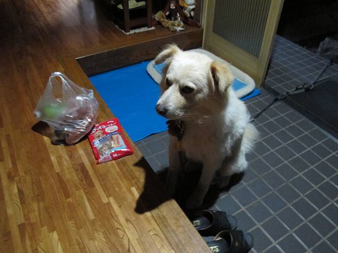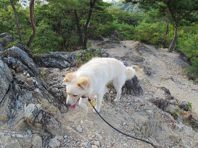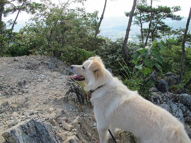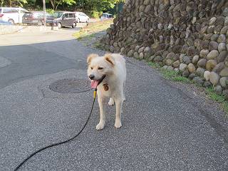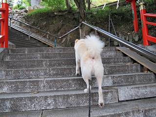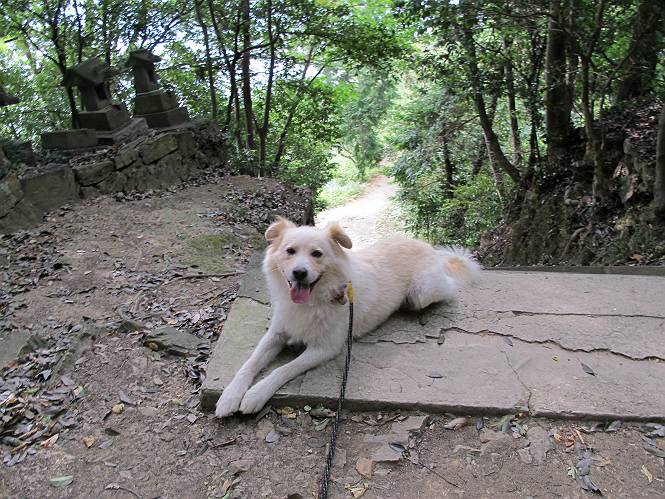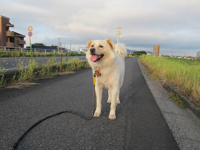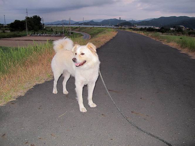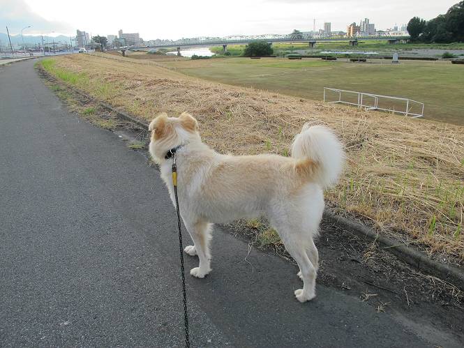| 平成二十四年九月一日 Before 写真集目次へ Next 今日は早起きをして待っていると、「忠治、お山へ行ってくるか」、と言うんです。まだ真っ暗なのに、うれしくてワンワン騒いでしまいました。渡良瀬川の葉鹿橋から土手伝いに緑橋まで歩き、そこから織姫神社へ出て、奥の両崖山まで往復するんですって。 只今準備中です。ぼくのオヤツとお父さんの朝ごはんです。 葉鹿橋から歩き出すと大分明るくなってきました。ここは良く散歩する土手です。後が葉鹿橋です。 金山の方向にまだ月が残ってました。 鹿島橋を過ぎたところです。後が鹿島橋です、前には高速道路の大きな橋が見えてます。 高速道路の下をくぐりました。間もなく日の出のようです。 雲が多くてあまりきれいな日の出は見られませんでした。 渡良瀬川の向こうに尖った天狗山が見えてます。あの右奥が両崖山だそうです。 足利市に入り、歩道と車道が並んでます。 緑橋が見えてきました、歩いて渡るのは、はじめてです。 広い歩道がついていて、川が下に良く見えます。今、下に、誰か歩いてます。 歩道が所々で広くなっていて、よけられます。 橋を渡って右に曲り、渡良瀬川の左側を少し歩きます。下流の渡良瀬橋と中橋が見えてます。 織姫橋を渡って歩道を下ってます。 織姫神社前に着きました。 お水を飲んで、石段を上って織姫神社へ向かいます。 ヨイショ、 ヨイショ、です。 やっと、織姫神社に着きました。沢山の人が行き交ってます。 また階段を上ってきましたが、疲れて座りこんでしまいました。お水をもらって、お休みしてます。 公園の中の吊橋を渡ってます。 足利の街が遠くまで広がって見えます。 岩場の道に出ました。 暑いのと距離を歩いてますので、ヨイショで一歩一歩登ってます。 まだあるなあ、 もう少しで両崖山なのですが、ぼく、今日は、疲れてしまいました。 東屋に寄り込んでしまいました、お休みです。 山頂は階段をちょっと上れば良いのですが、・・・・・・。 階段を上って、鳥居の前で、また、座りこんでしまいました。 こんなところでお休みしているので、今下っていった人に笑われてしまいました。 ハーイ、両崖山山頂到着でーす ホントに、ぼく、疲れたよ。葉鹿橋からだもんね、ワン。 お水とオヤツをもらて、しばらくお休みしました。おじさんが大きな声で何か歌ってましたよ。 帰りは近道に変更して梅林を抜け、住宅地に下りました。 簡単に出られました、山頂からここまで休まず下れました。 でも、暑いなあ、日陰は涼しい、風もあるし。 お休みでーす。「オイ、オイ、忠治、ここは、よそ様の車庫だよ」 「あっ、そう、失礼しました、ワン」 ちょっと進んで、またお休みでーす。 炎天下の街中をしばらく歩きました、通り7丁目交差点です。 緑橋手前で、地下道を抜けました。 また、休んでしまいました。お父さんが、お母さんに出迎えの電話をしてました。緑橋を渡って、土手を少し歩き、群馬県に入った所でお母さんの車に会いました。今日はヘトヘトになって、お見苦しいところをお目にかけました、でも暑かったでーす、ワン。 Before 写真集目次へ Next |