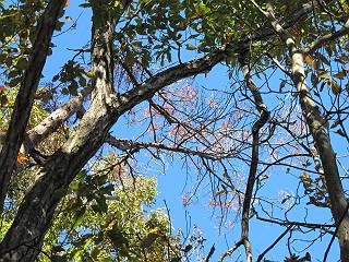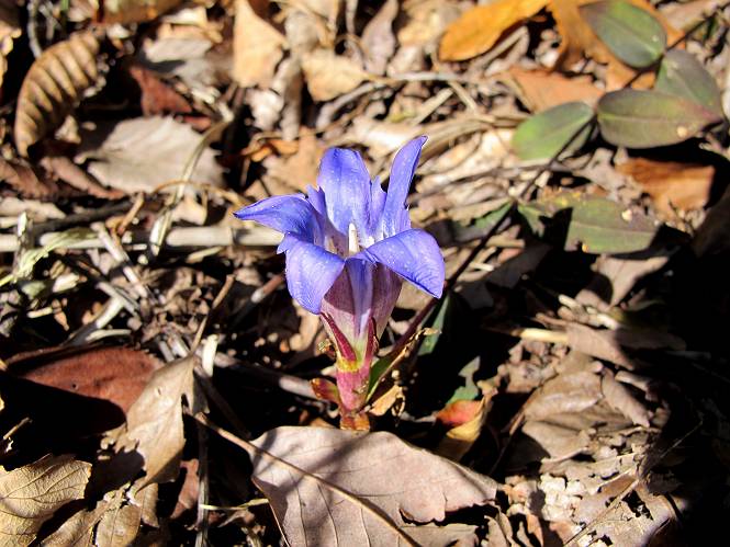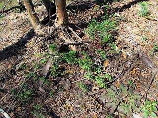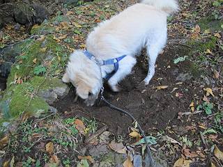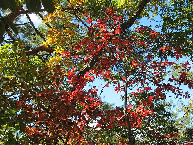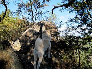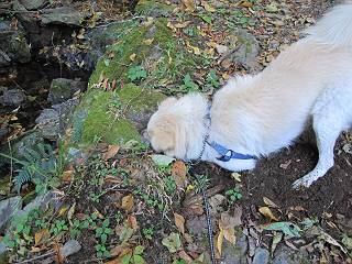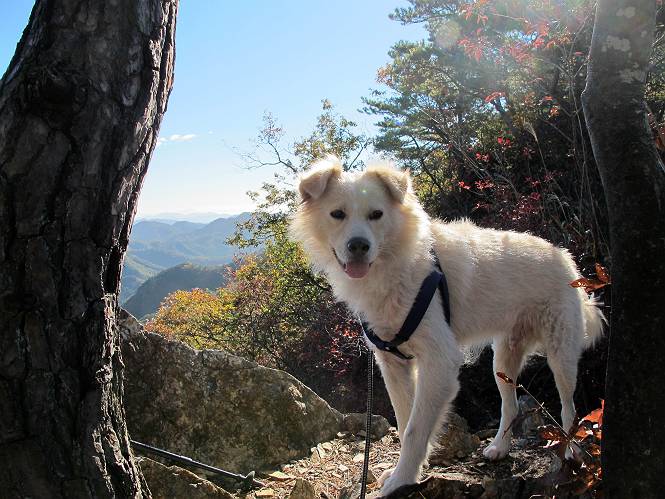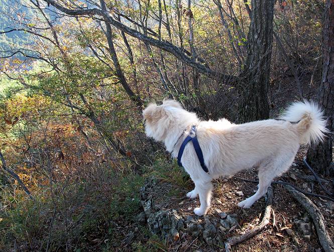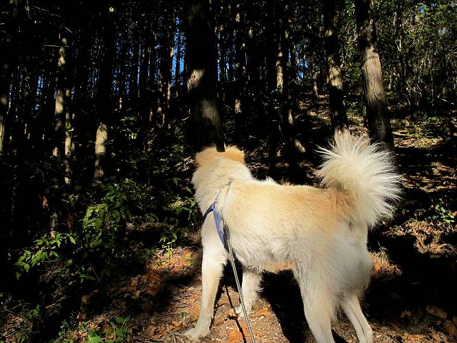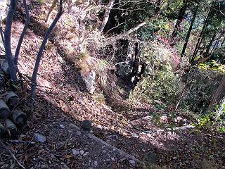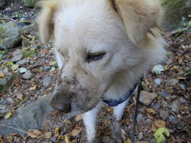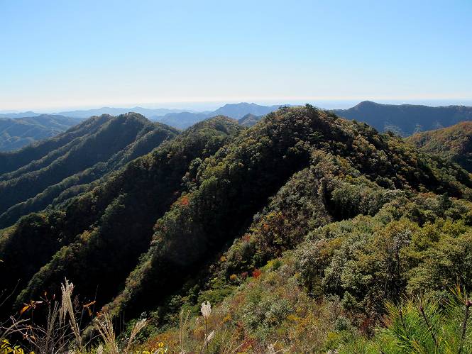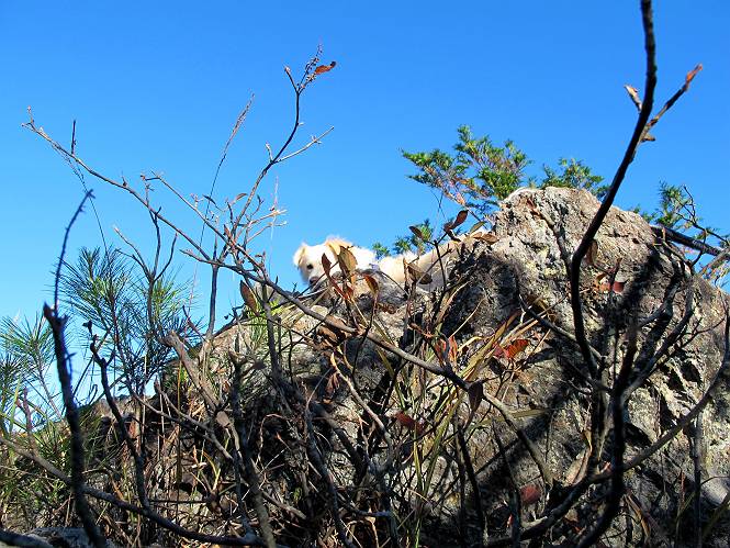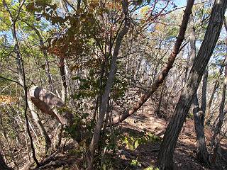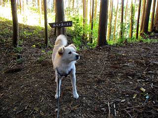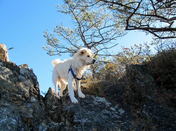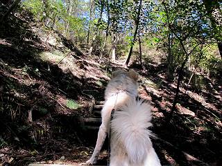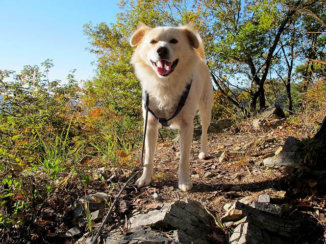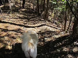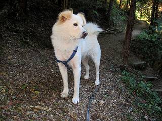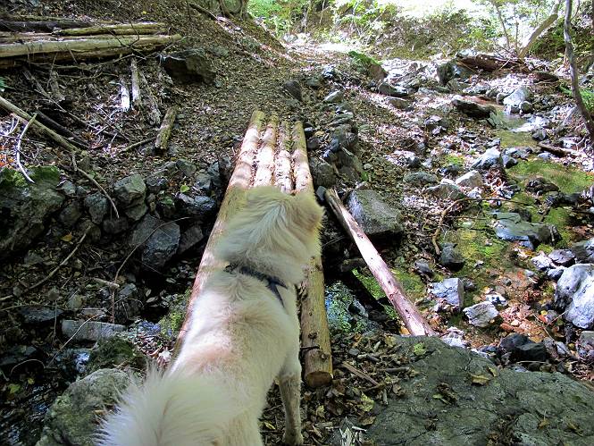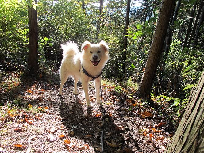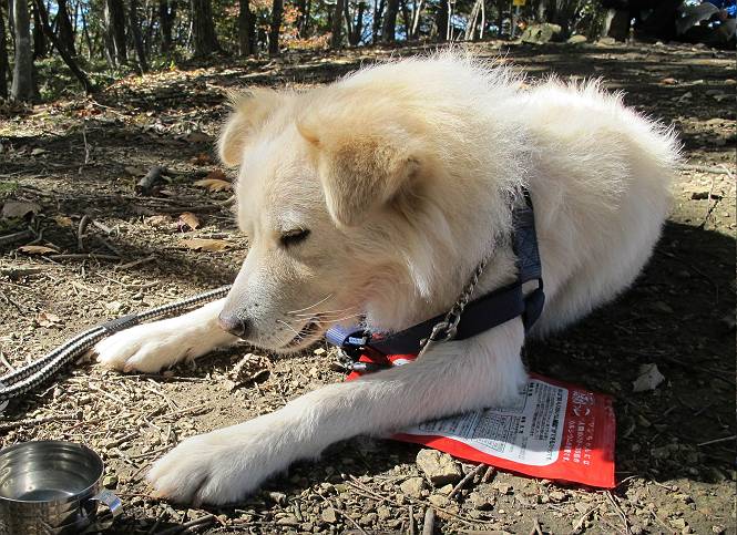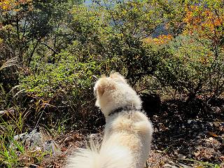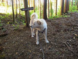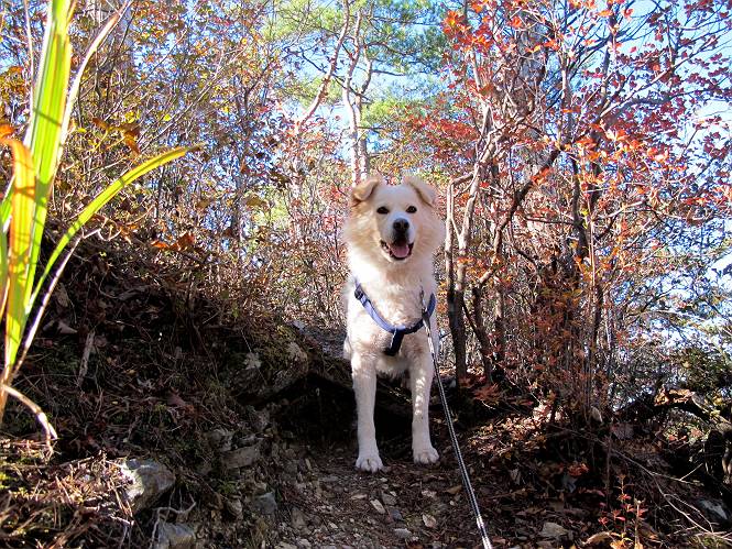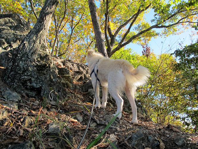 | 平成二十四年十一月十日 Before 写真集目次へ Next お父さんの予定が急に変わって、足利の仙人ケ岳へ連れてってもらいました、1年半ぶりです。歩くコースは前と同じで、松田川ダムの南尾根から山頂へ、帰りは岩切沢に沿って下ります。 猪子トンネルの東側から林道を少し歩きます。 道標にしたがって山道に入ります。 急坂を抜けた所です。 右に進むと直ぐに猪子峠に出ます。左は深高山、右は仙人ケ岳です。 うっそうとした桧の林を抜けます。 急坂ですが直ぐに抜けて明るい尾根道に出ます。 しばらく進むと岩まじりの落葉樹の道に変ります。 お父さんが、 「紅葉が見られる」と言ってましたが、まだ色づいた木が少し見えるだけです。 見晴らしの良い場所に出ました、風もなく暑いです。 南に富士山が見えます、右は深高山です。 岩場を上ると、 平らな場所に出ました、道がここで大きく左に曲ります。 少し下ると、 赤雪山の良く見える場所に出ました。 少し進むと大きな岩場に突き当たりました。 この岩に「忠治、上れ」、って言うんです。 下は深い谷からダムになってます、怖いなあ。 「それ、もう少しだ、頑張れ」、怖いけど・・・・。 やっと登りました、怖かったなあ。 その先も岩場が連続してました、ここはラクチンです。 ここを上ると小さなピークに出るそうです。 ここがヤシオツツジの綺麗に咲く所だそうです。 岩場を少し進むと南の尾根と仙人ケ岳が一望できます。 またまた、怖そうな岩場です。 でも、素晴しい景色です。 南に深高の尾根と富士山が見えます。 富士山を拡大しました、真っ白ですね。 ツツジの紅葉がきれいな場所にでました、アカヤシオだそうです。 少し下って登り返してます、道が大分ガレてます。 次に下ると“犬帰り”という岩場に出ました。クサリ場でぼくは通れませんので、下の巻き道を下って、 登り返して、 尾根に出ます。 また、紅葉の綺麗な所に出ました。 赤雪山と松田川ダムも 綺麗に見えます。 こっち側もいいなあ。 また、また岩場の切り立った場所です、面白いのですが、・・・・。 また下って、山火事現場が正面に見える場所にきました。 リンドウが一輪だけ咲いてました。 ここからまた坂道です、ピークに近づくと展望が開けます。南に富士山が見えます。 東に上ってきた、 凸凹した尾根が見えます。 下には、 松田川ダムが見えます。 紅葉を眺めながら、 お休みしてます。 ここから少し進むと、山火事の跡を通ります。 地面には、もう松や桧の小さな木が育っています。 松 桧 やっと、熊の分岐に着きました。 もう少しで山頂に着くようですが、なかなか進みません。 立ち止まって、紅葉を眺めたりしながら、 一歩一歩進みます。 やっと、仙人ケ岳山頂に着きました。 少し疲れてますが、食欲はスゴイですよ。 疲れたなあ、まだ食べたいんだけど、お父さんがくれないんだよね。 ちょっとお休みしたら、元気を取戻しました。 下りですからスイスイです。 大蛇のように曲った松、とうとう枯れてしまったようです。お父さんが残念がってました。 松の幹 最後まで残っていた枝 熊の分岐から沢に下ってます。 沢筋もスイスイ、下りはラクチンですね。 生不動に到着です、これから山頂に向かう人がいました。 丸太を組んだ橋を沢山渡りました。 途中で、疲れ直しにちょっと遊ばしてもらって、 顔が泥だらけだってさ、ぼくわかりません。 ぼく疲れてないよ、林道をさっそうと歩いて、 道路を歩き、トンネルを抜ければゴールです。 Before 写真集目次へ Next |