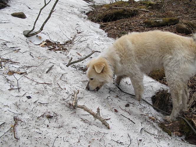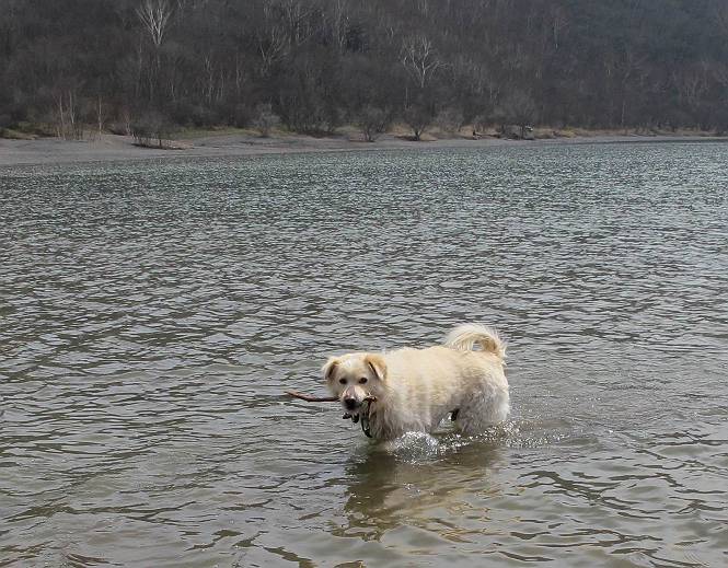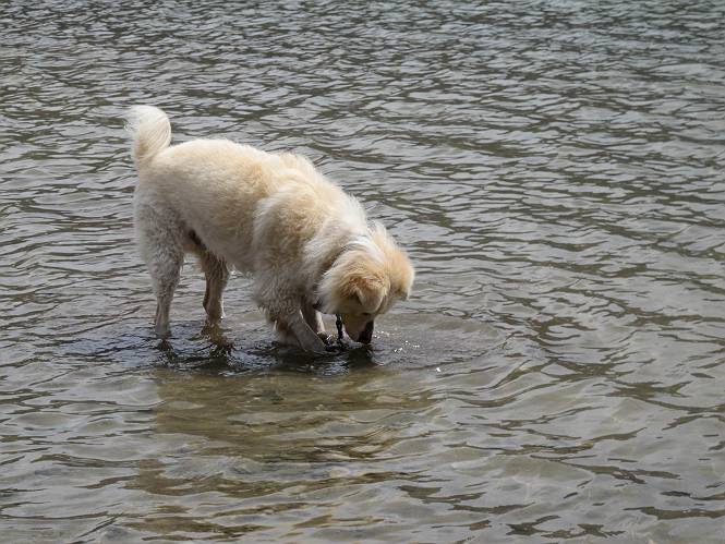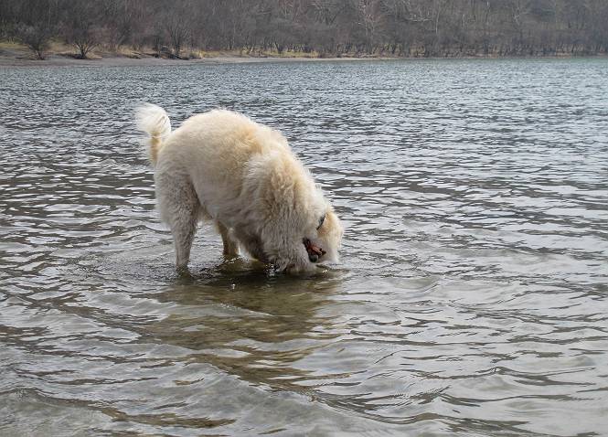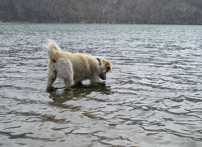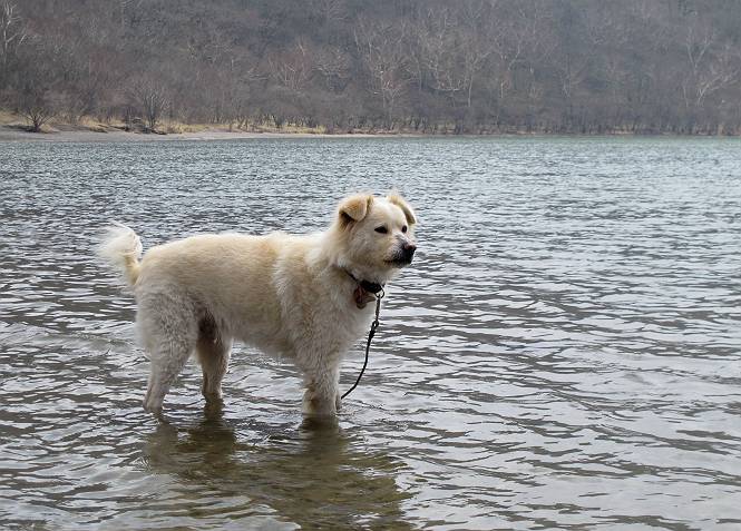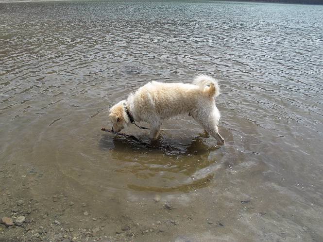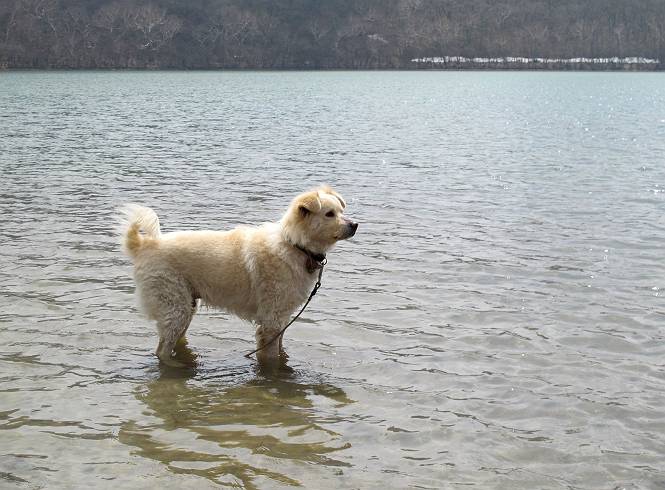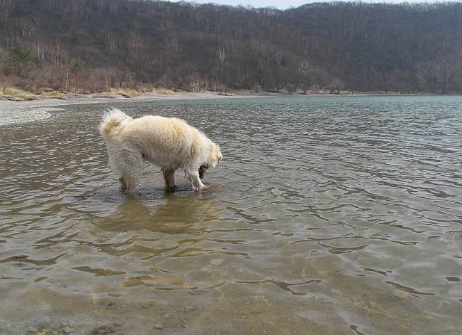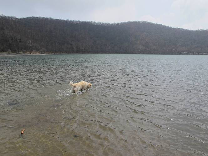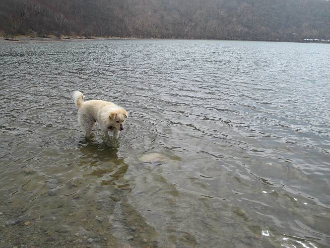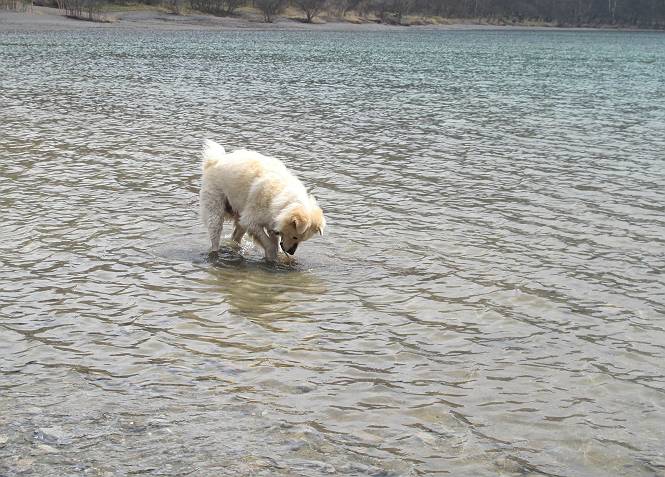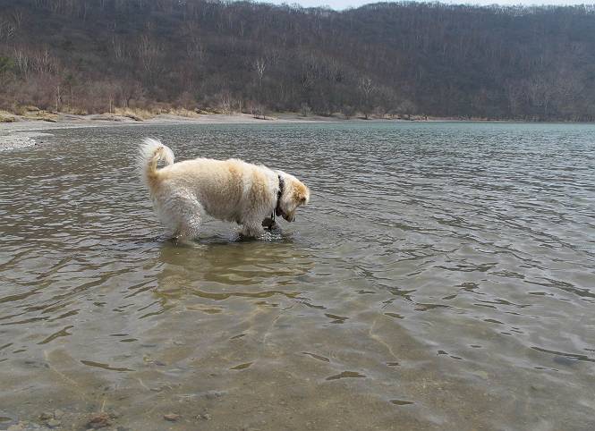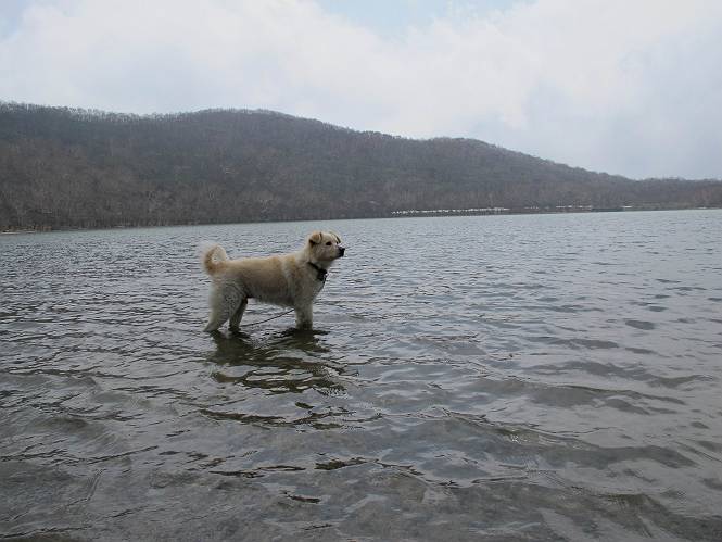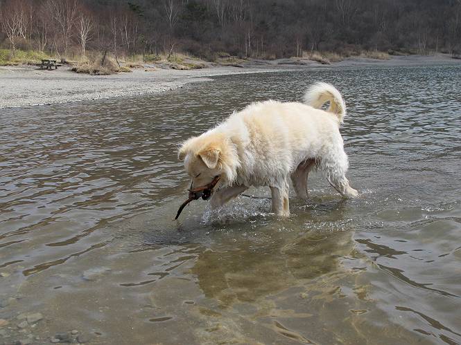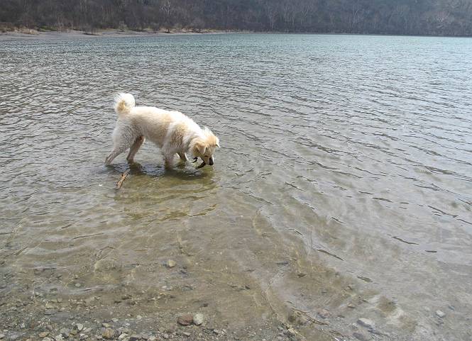 | 平成二十五年四月十八日 Before 写真集目次へ Next 「忠治、買い物に連れていくぞ、乗れ!」、でも、なかなか出発しません。9時を過ぎてしまって、近場の赤城山を通って、道の駅で買い物となってしまいました。お父さんとの出合いの場所を通って、赤城温泉から狭い道をクニャクニャ走って、小沼に着きました。 さあ、何しようかな。石を投げてもらって、探しました。でもね、全然わからないんです、・・・・・・。 次は棒を投げてもらいました。これはくわえてもってこられました。 上手くいった時はビスケットを頂きました。 小さかったり、大きすぎると、なかなかうまくいきません。落としてしまいました。 どう、カッコイイでしょう。 おっとっと、もう少しだ。 沼で遊んだ後は、東の木陰に行って見ました。まだ雪がありました。 コロコロ、寝そべったり、食べたり、面白いね。 帰りは広い道を通って、いつも寄る道の駅によって、お母さんが買い物をしている間、公園を散歩しました。また、オヤツなんかもらっちゃって、でぶっちゃうかな、それが心配です。でも、おいしいんですもんね。 Before 写真集目次へ Next |