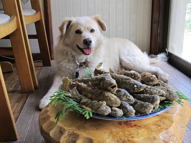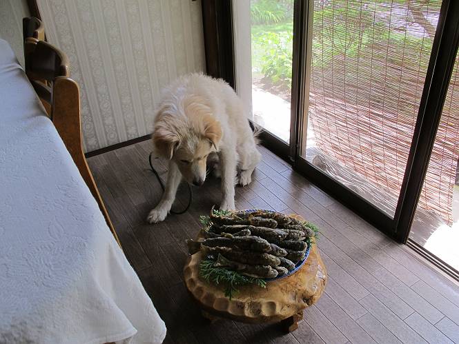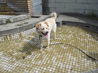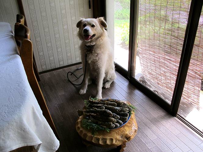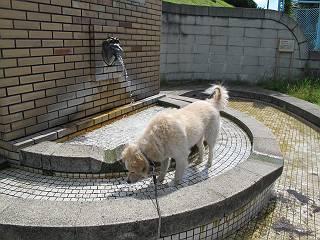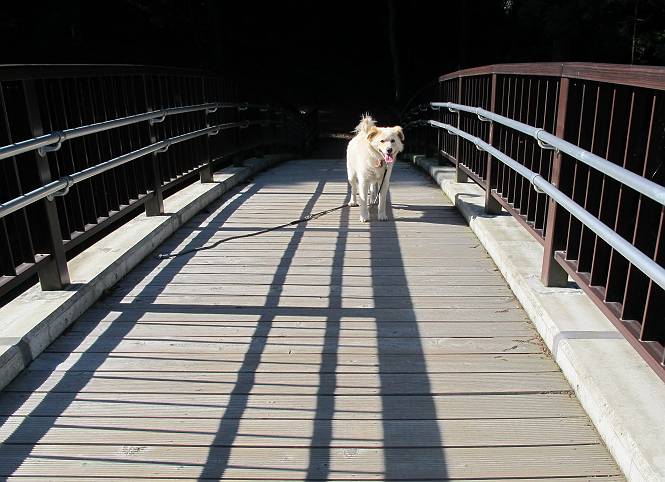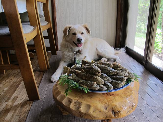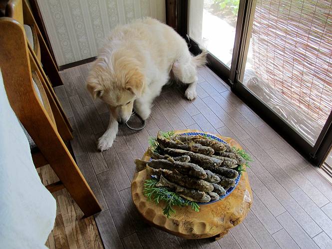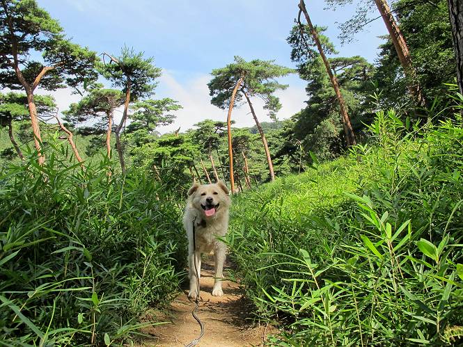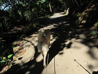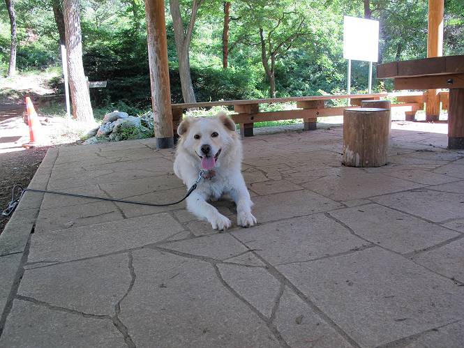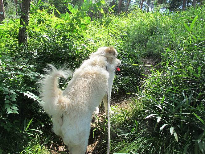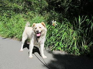 | 平成二十五年七月十九日 Before 写真集目次へ Next お父さんの予定していた山行が延期になったので、近くの金山へ朝の涼しいうちに連れてってもらいました。親水公園、金山山頂新田神社、大光院と一回りしてきました。途中暑くてバテバテになってしまいましたが、木陰は風があって涼しくて気持ちよかったです。 親水公園の駐車場から出発して、御城橋へ進んでます。赤松の林がきれいです。 東側から北側に回り込んで御城橋に出ました。 御城橋を渡ってます、橋の下は道路です。 金山のハイキングコースに入りました、オガクズで固めた道でフワフワして気持ちよく歩けます。 古い登山道に出ました、丸くなった岩が連続してます、ここも歩き易いです。 南から回り込んで山頂の南の鳥居に出ました。 水道でお水を飲んで、山頂の一番奥にある新田神社に着きました。 日の当たらない場所でお休みしてます。 この鳥居、大きいでしょう。左右に狛犬さんがいるんだよ。 山頂から南側のハイキングコースを歩いてます。 下は道路です。 木陰は涼しいですよ。 ヤマユリが点々と咲いてました。 きれいですね、でもここは暑いなあ。 大光院の分岐点に着きました、いつも長手の浅間神社へ進んでますが今日は大光院です。 暑いですが、下りですからラクチンです。 丸太の階段も少しありました。 大きな東屋にやってきました、お休みです。 ここは広々していて、風も抜けてさわやかです。 まわりにギボウシやアザミの花が咲いてました。 少し登って下ると大光院の分岐点です、左に曲ります。 お父さんはぼくが入れるか案内板を見てました、入れるようです。 大光院の裏に着きました、お父さんはまた張り紙など見てました。 大光院に着きました、大きな本堂ですね。 大きな松の横を通り、駐車場に出ましたら、「ペット・・・・」の看板がありました。 工場の脇を通って赤松の林の中に入りました。 赤松も大分少なくなってしまったようですが、沢山苗が植えられてました。 親水公園に着きました、お水で遊んでます。 家に戻ったら、お父さんのお友達がいて、岩魚をいっぱい頂きました。早速カラアゲにしてもらって、ぼくも美味しく頂きました。 スゴイ量だなあ、28匹も頂いたんだってさ。 美味しそうだなあ、あまりあるので怖いなあ。 ぼくは小さいのを一匹頂きました。 美味しかったでーす、また後で頂きます。 Before 写真集目次へ Next |