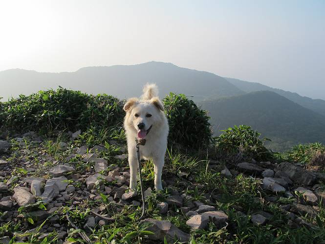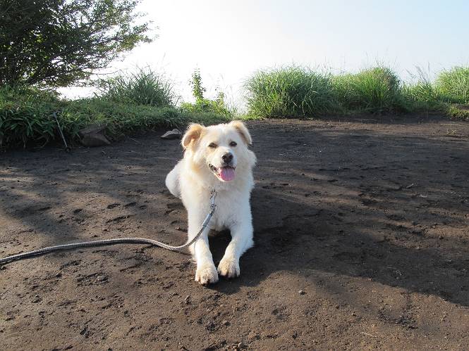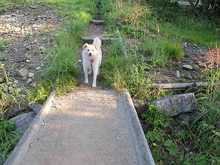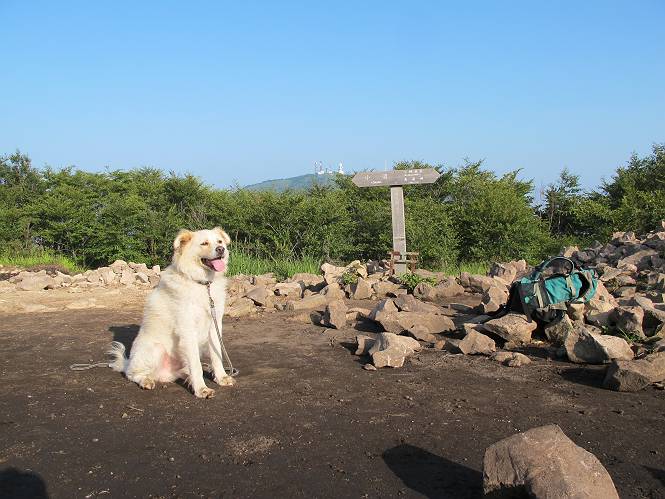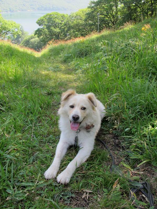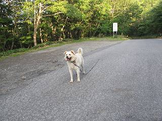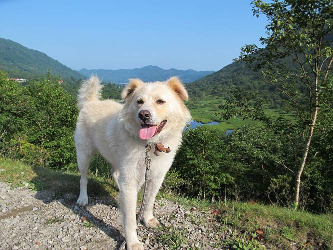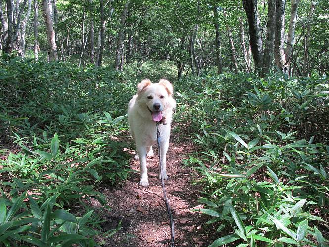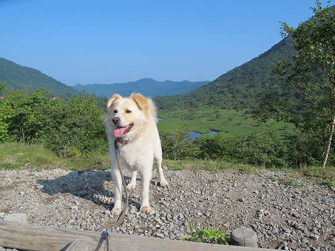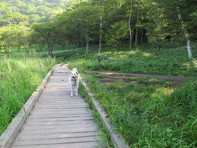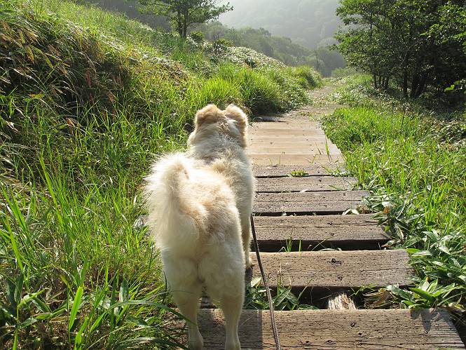 | 平成二十五年八月十五日 Before 写真集目次へ Next 夕べ寝るとき、「明日は早起きして赤城山へ行くぞ」、って言うんです。ぼくは興奮してなかなか寝むれませんでした。ぼくは部屋の明かりを感じて、静かに待ってました。3時半に出発したそうです。今日のコースは見晴駐車場から地蔵岳、小沼、長七郎山、鳥居峠、覚満淵と歩き、大沼の北側を回って、小さなスキー場から見晴山に出て、駐車場に戻るそうです、予定は5時間ほどだそうです。 丁度5:00に出発しました ぼくは鹿の鳴き声が気になってたまりません。 もうすっかり明るくなりました、新坂平の道に合流しました。 いぐられた石ころだらけの急坂を上って地蔵岳に着きました。 大沼と黒檜山が霞んでいます。 ![]() 近くは朝日があたってくっきりしてますが、ちょっと離れた所は霞んでいます。 黒檜山を背景に撮ってもらいました。 お父さんのお食事をちょっとシッケイして頂きました。 東方向に移動して、これから向かう小沼と長七郎山を眺めました。 長七郎山を背景に撮ってもらいました。 木道を少し歩くと、 木段が続きます、トントン下っていると、「忠治は木段歩きが上手になったな」、と言ってました。 道沿いに、ツリガネニンジンという可愛い花が咲いてました、下って八丁峠に出ました。 道路をちょっと歩いて 小道から小沼に出ました。 小沼の東側にやってきました、黒檜山を背景に撮ってもらいました。 緑のトンネルを通り、長七郎山の登山口に出ました。 森に中にマルバダケブキの花、 山頂の少し手前で大勢の人が合唱してました。 長七郎山の山頂につきました。 ちょっとお休みしてます。 長七郎山の山頂から黒檜山と地蔵岳です。 オヤツをもらって、 次が鳥居峠まで歩きます。 長七郎山を下って、小沼と鳥居峠の分岐点につきました。 また、木段を下って、少し上ったり下がったりしながら進むと、 鳥居峠に出ました。 後、下に覚満淵と奥に大沼が見えてます。 ベンチでお休みして覚満淵へ進んでます、ネットをくぐり、遊歩道を進みます。 覚満淵にでました、お花もたくさん咲いているようです。 お父さんは花の写真を撮ってます、ぼくは待っています。 アザミ エゾリンドウ ワレモコウ カモの一家に会いました。 七羽と親鳥です、小さくて可愛いね。 バイバーイ、またね。 覚満淵から川沿いに進んで大沼に出ます。 大沼の浅瀬で水遊びをしてます。 水が冷たくて気持ち良いですよ。 そろそろ道路に出て赤城神社の方へ進みます。 黒檜山登山口にきました、こかげで一休み、 キャンプ場につきました、車だらけですね。 また、沼に降りて遊んできました、旅館のところからスキー場を通って、見晴山へ上ります。 ここにもマルバダケブキが沢山咲いてました。 結構な急坂です、つい腹這いになって・・・・。 黒檜山の眺めが良いですよ。 やっとなだらかな場所にでました、山頂はもう直ぐです。 ここが見晴山の頂上です。 ちょっと下ると立派な休憩所があります。 風が抜けて涼しいですよ。 ここからちょっと下れば見晴駐車場です。 高原は涼しくて良いですね、また連れてきてもらおうかな。 Before 写真集目次へ Next |