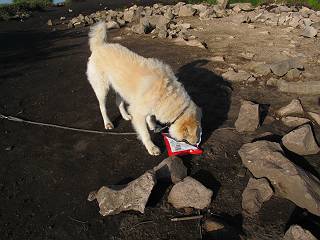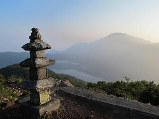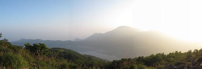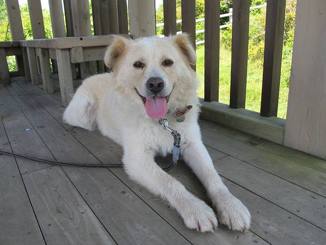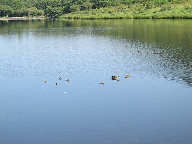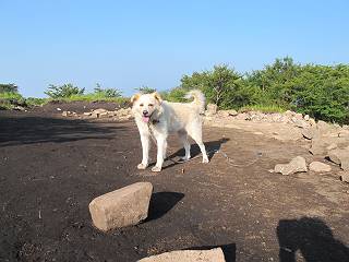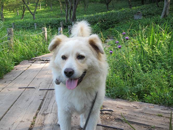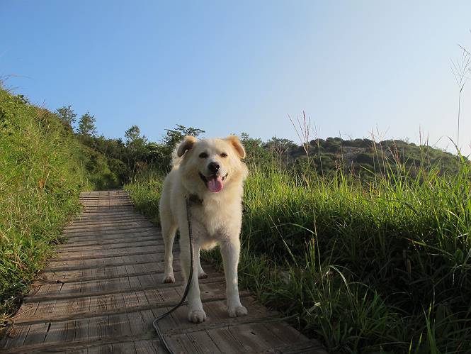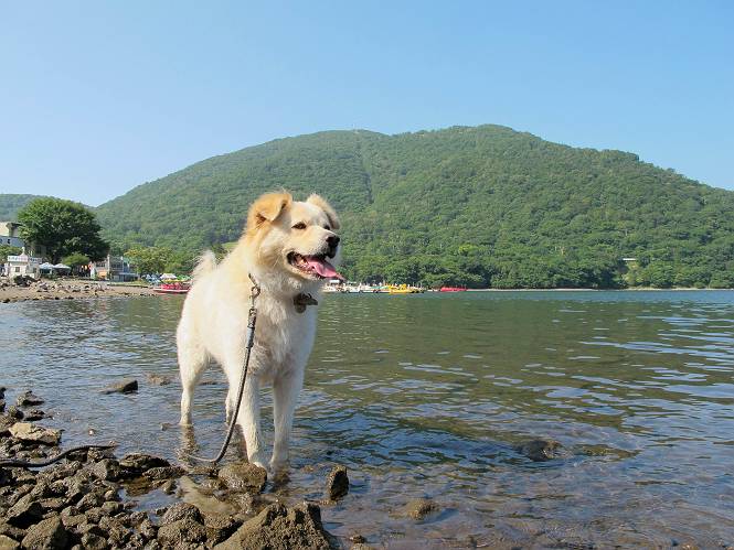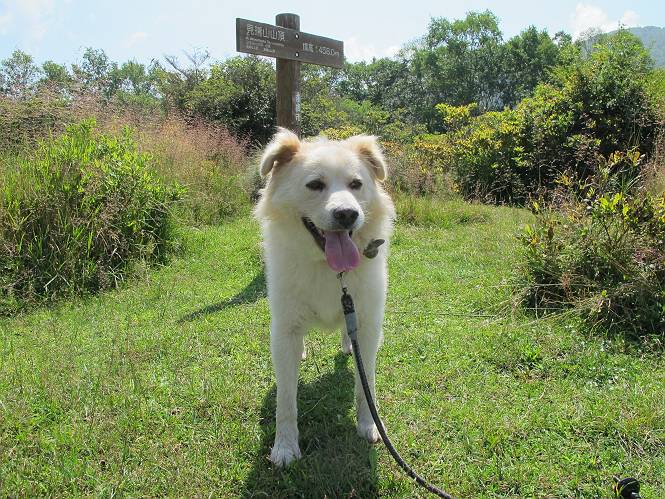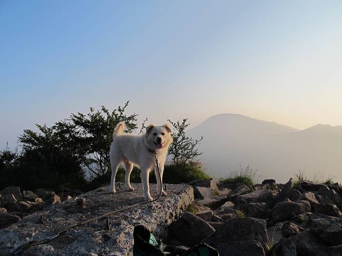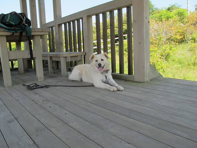 | 平成二十五年八月十五日 Before 写真集目次へ Next 夕べ寝るとき、「明日は早起きして赤城山へ行くぞ」、って言うんです。ぼくは興奮してなかなか寝むれませんでした。ぼくは部屋の明かりを感じて、静かに待ってました。3時半に出発したそうです。今日のコースは見晴駐車場から地蔵岳、小沼、長七郎山、鳥居峠、覚満淵と歩き、大沼の北側を回って、小さなスキー場から見晴山に出て、駐車場に戻るそうです、予定は5時間ほどだそうです。 丁度5:00に出発しました ぼくは鹿の鳴き声が気になってたまりません。 もうすっかり明るくなりました、新坂平の道に合流しました。 いぐられた石ころだらけの急坂を上って地蔵岳に着きました。 大沼と黒檜山が霞んでいます。 ![]() 近くは朝日があたってくっきりしてますが、ちょっと離れた所は霞んでいます。 黒檜山を背景に撮ってもらいました。 お父さんのお食事をちょっとシッケイして頂きました。 東方向に移動して、これから向かう小沼と長七郎山を眺めました。 長七郎山を背景に撮ってもらいました。 木道を少し歩くと、 木段が続きます、トントン下っていると、「忠治は木段歩きが上手になったな」、と言ってました。 道沿いに、ツリガネニンジンという可愛い花が咲いてました、下って八丁峠に出ました。 道路をちょっと歩いて 小道から小沼に出ました。 小沼の東側にやってきました、黒檜山を背景に撮ってもらいました。 緑のトンネルを通り、長七郎山の登山口に出ました。 森に中にマルバダケブキの花、 山頂の少し手前で大勢の人が合唱してました。 長七郎山の山頂につきました。 ちょっとお休みしてます。 長七郎山の山頂から黒檜山と地蔵岳です。 オヤツをもらって、 次が鳥居峠まで歩きます。 長七郎山を下って、小沼と鳥居峠の分岐点につきました。 また、木段を下って、少し上ったり下がったりしながら進むと、 鳥居峠に出ました。 後、下に覚満淵と奥に大沼が見えてます。 ベンチでお休みして覚満淵へ進んでます、ネットをくぐり、遊歩道を進みます。 覚満淵にでました、お花もたくさん咲いているようです。 お父さんは花の写真を撮ってます、ぼくは待っています。 アザミ エゾリンドウ ワレモコウ カモの一家に会いました。 七羽と親鳥です、小さくて可愛いね。 バイバーイ、またね。 覚満淵から川沿いに進んで大沼に出ます。 大沼の浅瀬で水遊びをしてます。 水が冷たくて気持ち良いですよ。 そろそろ道路に出て赤城神社の方へ進みます。 黒檜山登山口にきました、こかげで一休み、 キャンプ場につきました、車だらけですね。 また、沼に降りて遊んできました、旅館のところからスキー場を通って、見晴山へ上ります。 ここにもマルバダケブキが沢山咲いてました。 結構な急坂です、つい腹這いになって・・・・。 黒檜山の眺めが良いですよ。 やっとなだらかな場所にでました、山頂はもう直ぐです。 ここが見晴山の頂上です。 ちょっと下ると立派な休憩所があります。 風が抜けて涼しいですよ。 ここからちょっと下れば見晴駐車場です。 高原は涼しくて良いですね、また連れてきてもらおうかな。 Before 写真集目次へ Next |
