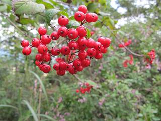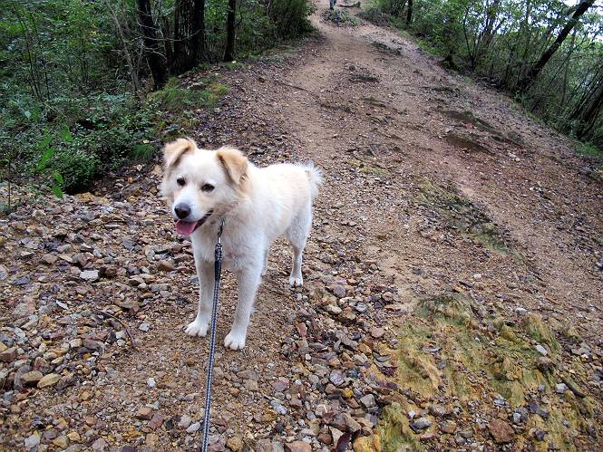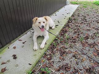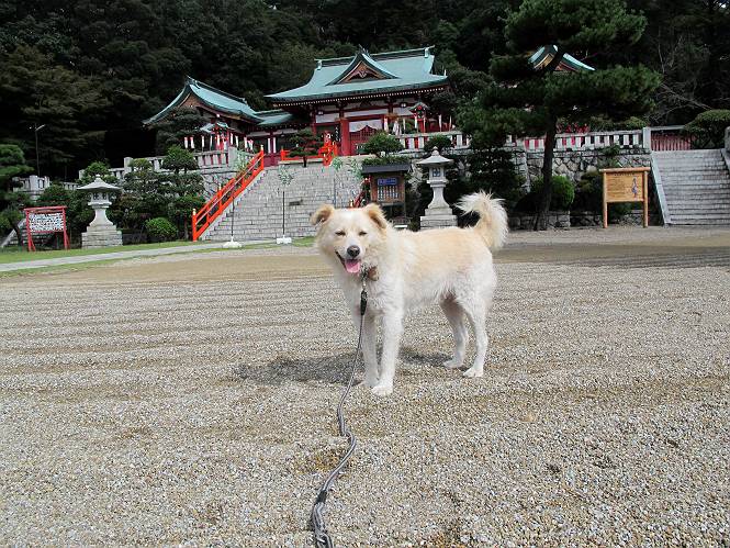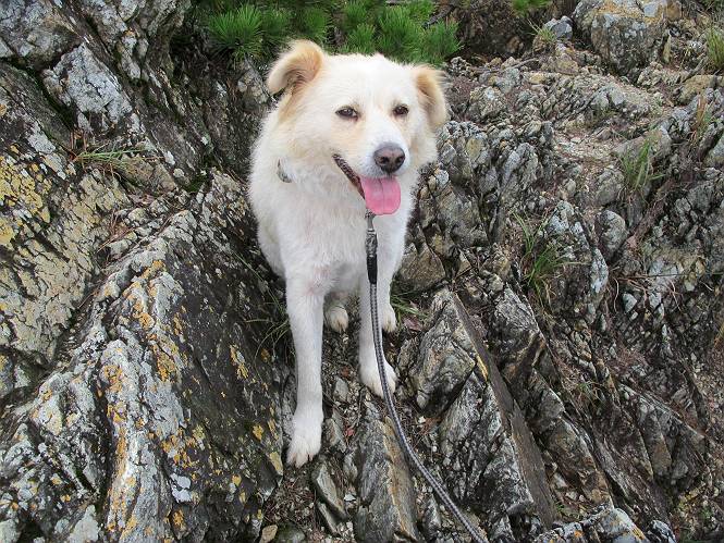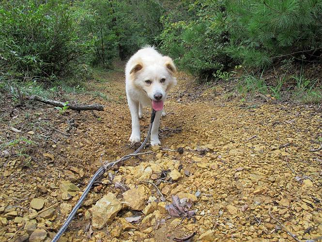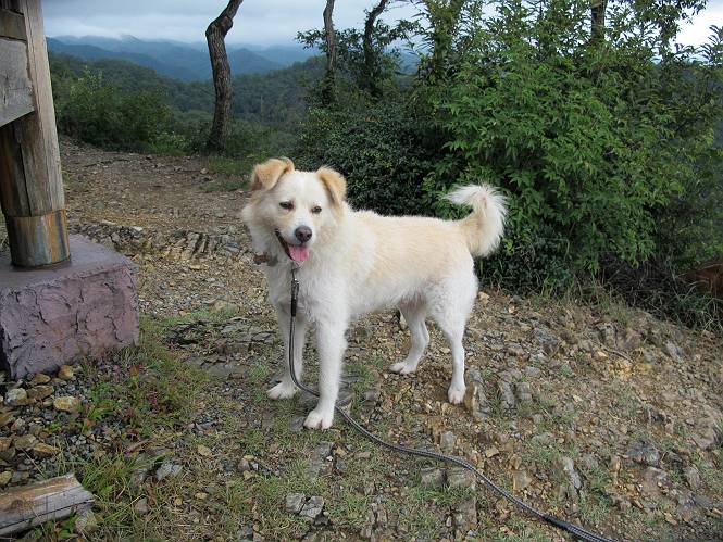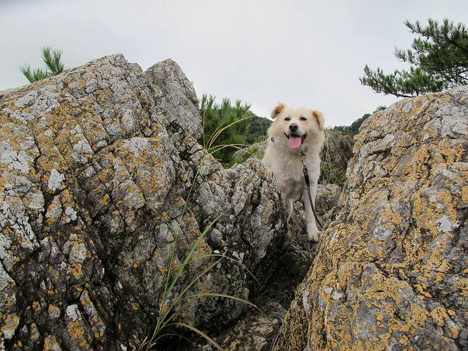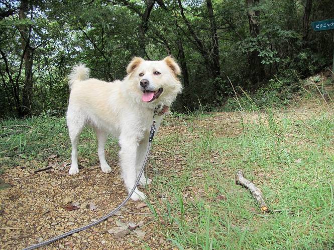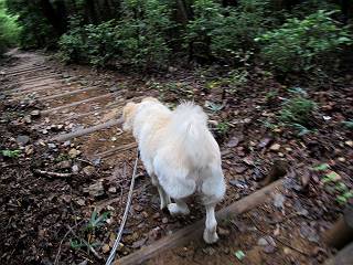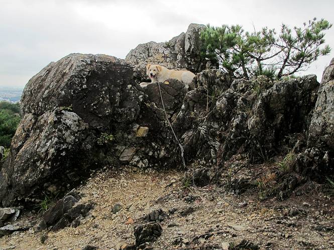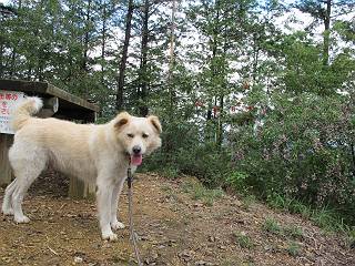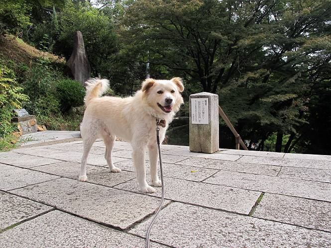 | 平成二十五年十月六日 Before 写真集目次へ Next お父さんが予定していた日光方面の山が天気が良くない予報なので中止してしまいました。霧雨の中、朝の散歩をして、「忠治、今日、山へ連れて行くぞ」、と言ってました。が、なかなか天気が良くなりません、ずっと車のハッチで待っていました。「薄日が差してきた、出かけるぞ」、と織姫神社に向かいました。 織姫神社の石段を上ってます。もう少しで神社に着きます。 今日は特別の日でしょうか。小石がキレイにならされていました。ぼくが一番に足跡をつけちゃったよ。 いつも通るつり橋を渡ってます。 ハイキングコースに入りました。 雨が沢山降りましたが、岩山なのでぬかるみは全然ありません。 秋の花、ハギがアチラコチラ、沢山咲いてます。 そろそろ楽しい岩場が出てきます。 ここから、岩岩の道です。 おお、良く見えるなあ。 いっぱい、歩いてくるぞ。 足利の街も見えている、南方向だそうです。 「折角だから、ちょっとお休みしましょうか」 丁度、ぼくが入れるくぼみがあります。 「もう、行くの?」 ちょっと進んで、アズマ屋にやってきました。ここでね、お休みしていたおじさんに、お菓子をもらっちゃったんだよね。半分食べて、また後でだって。「いいこだね」、って頭を撫でてもらっちゃった。 今度は、街の東側だそうです。眺めがいいですよ。 石段を少し上って、両崖山山頂に着きました。 今日はね、山頂の真ん中、御嶽神社のお祭りだそうです。迷惑かけないように、横の方にいます。でもオヤツを食べる場所がないんですよ。 また、戻って鳥居のそばで、オヤツとお水を頂きました。隣に駐車したおじさんがやってきて、ぼくのことをいろいろ聞いていたようです。おじさんちにも柴犬ミックスがいたそうです、犬が好きそうだったなあ。おじさんは、天狗山の方へ、ぼくたちは北側へと別れました。 山頂の裏から階段を下って、北方向に進みます。 おばさんが、前にいたのですが、木の陰に隠れてしまいました。写真を撮られたと思ったかな、撮ってないってさ。 近道しようと細い脇道に入りましたが、結局同じ道に出て、雷電神社の分岐点に着きました。 ここで、ひとやすみです。ここから雷電神社方面ははじめてです。 分岐点から少し下ると、また人家が沢山見えてきました。 下る一方かと思ったら、また上りです、疲れちゃうね。 ハァハァしながら進んで、ベンチのあるピークに出ました。 また、おやすみです。後に赤いガマズミの実とハギが咲いてます。 真っ赤なガマズミ、美味しそうですね、食べられるのかな? またまた、下って、上りました。分岐点から2つ目のピークです。 まだ小さいピークがありました。3つ目で雷電山だそうです。 東はすぐ下まで人家があるようです。 この鳥居、お父さんが首を曲げて通ってました、あまり大きくないんですよ。 尾根伝いに少し下ると、曲って 薄暗い林に入りました。 急な長い階段をしばらく下りました。 雷電神社にやってきました。 ぼくはちょっと休憩です。 もうすぐ、街に降りるようです。 病院の裏に降りて、お水を頂き、堀にそって、しばらく歩いてます。 やっと一周して、織姫神社の駐車場に戻りました、お父さん、新ルート、またやったね。 今日は、むしあつくて、少し疲れました。お水も沢山のみました。「このコースは、紅葉がはじまるとハイキングにいいな、また来るか、忠治」、とお父さんが言ってました。 Before 写真集目次へ Next |