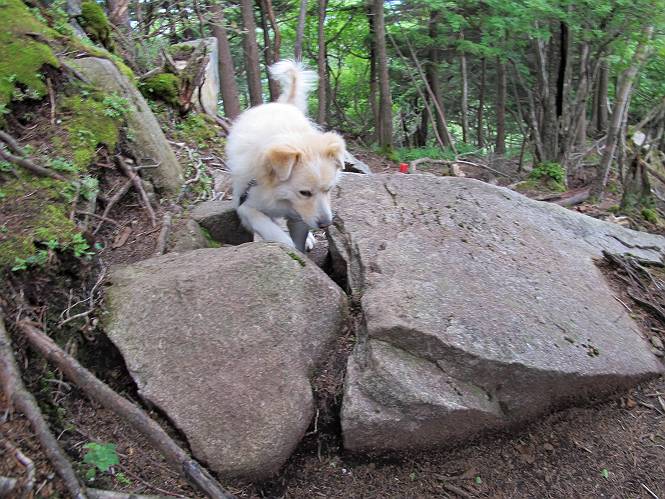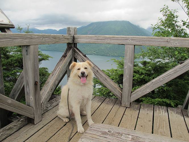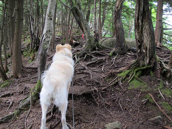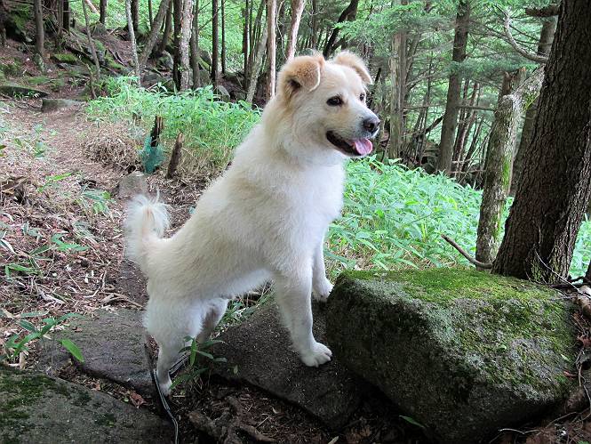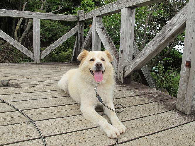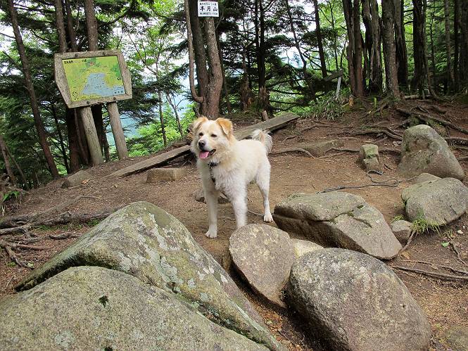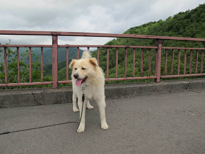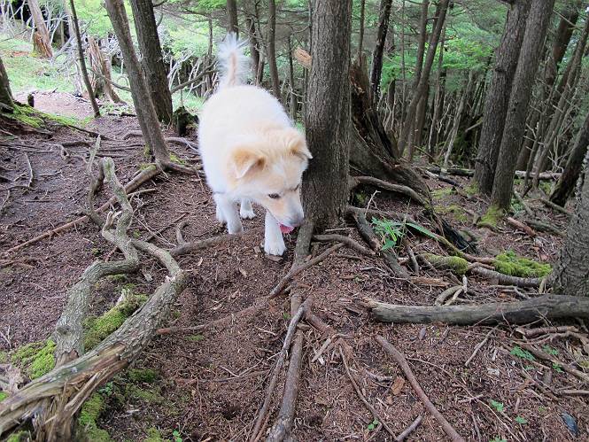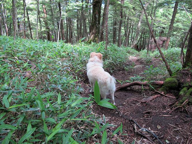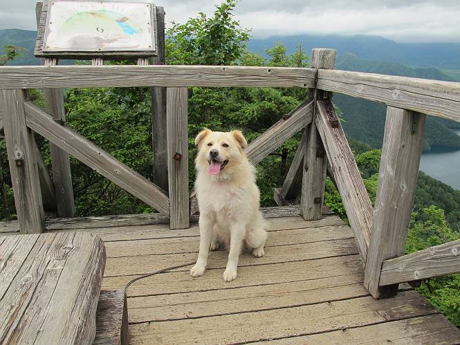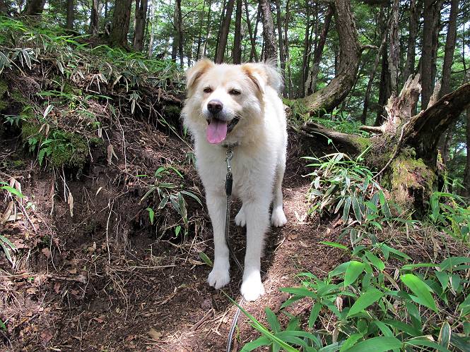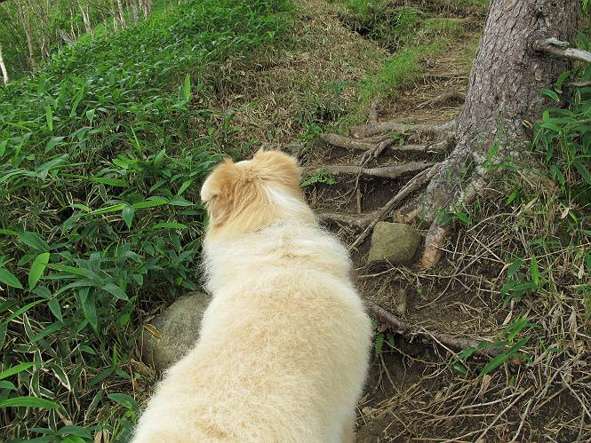 | 平成二十六年七月二十四日 Before 写真集目次へ Next 毎日暑い日が続いてます。今日は奥日光の半月山をちょっと歩いてきました。中禅寺湖を散策する予定でしたが、「山の方が静かでいいぞ、忠治、半月山にしよう」、と変更しました。 一番奥の第二駐車場です。ホント、静かです、誰もいません。 ぼくんちの車1台だけです。お母さんが第一駐車場で先に行って待っていてくれるんだってさ。 お天気は曇りですが、お父さんは汗を拭きながら歩いてます。ぼくは、ハーハー。 先ほどから動物の変な声が聞こえてます、「なーに、あの声は」 「鹿かなあ、ケガでもしたのかなあ、悲しい声だねえ」 「行ってみようよ」、「鹿のお母さんが、きっと、そばについてるよ、そっとしてやろうよ」 ここから少し進むと、展望台に出ました。 男体山を入れて撮ってもらいました。 曇っていて遠くの景色は霞んでます。 男体山です 黒檜岳と社山ですって こちらは南方向の足尾の山だそうです。 少しお休みしてます。お水もらって、カリントウを2つもらいました。 ぼくのオヤツは車に忘れてしまったそうです。 展望台から半月山山頂へ向かいます。 根っ子だらけの尾根を進みます。 岩の間もいくつか通りました。 最後は緩やかに進んで、 半月山に着きました。 今、二人いましたが、下っていきました、ぼく、山頂は4度目かな。 今日は山頂から第一駐車場へ下ります。 森の中を歩いたり、笹道を歩いたりしながら、 下がったり、上ったりを繰り返しました 今日は、ぼく、調子が良くて、スイスイ、ピョンピョン歩くものですから、 お父さんは、「ゆっくり、忠治、ゆっくりだよ」と言ってます。 車の音が聞こえるね もう少し下れば、第一駐車場だぞ。 あれっ、お母さんだ。 もう、着いてしまいました。もう少し遊びたいなあ。 奥日光から、片品村、沼田市へ出て、赤城の北面を遊びながら家に帰りました。途中、ちょっと雨が降りましたよ。 Before 写真集目次へ Next |