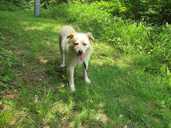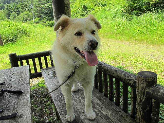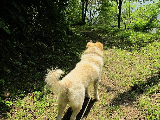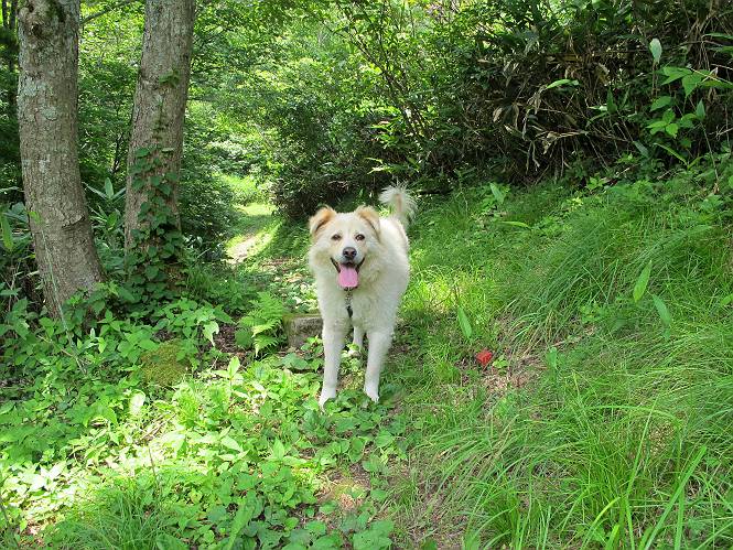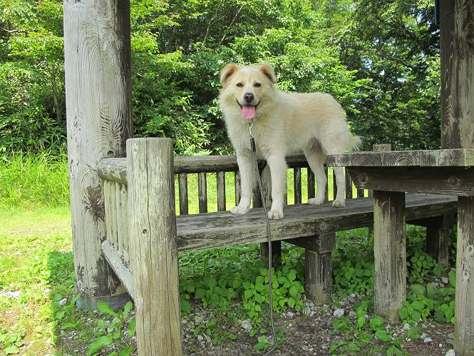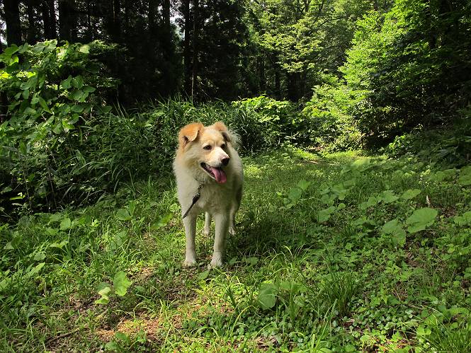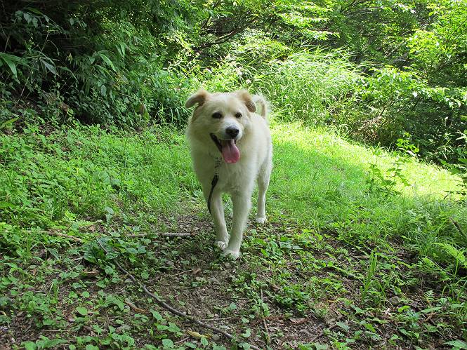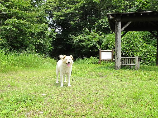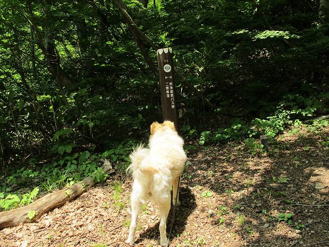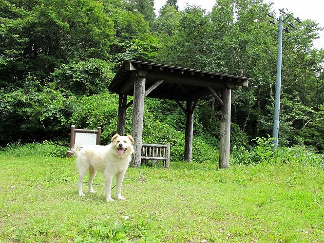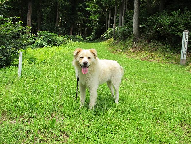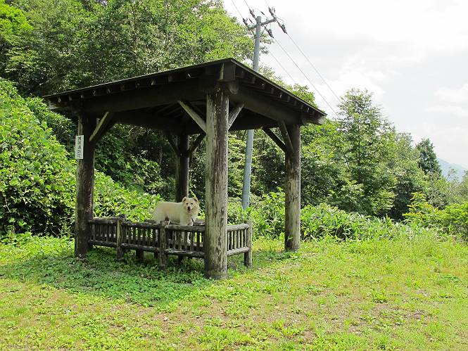 | 平成二十六年七月三十日 Before 写真集目次へ Next お母さんが、「八ヶ岳でも行こうよ」と、お父さんが「今からでは、遠いなあ」、では湯沢の辺りにしよう。となりまして、旧三国街道の二居宿に決まりました。三国トンネルを抜け、三角山、平標山の登山口を過ぎ、間もなく二居宿に着きました。 ここは、二居本陣跡だそうです、ぼく、難しくって分らないなあ。 人家の間を少し進むと、旧三国街道二居峠登口に出ます。 峠まで、舗装されてない、山道になります。 ベンチなんかもあるよ。木漏れ日、気持ちイイですね。 お稲荷さんの横を通って、杉森の中をジグザグ進みます。 トリアシショウマや エゾアジサイがきれいに咲いてました。 曲がり角に行くと、平らな、ちょっと広い場所がとってあります。 キツイ場所があったり、緩やかなところがあったり、歩きやすい道です。 これは何ですか、左が二居、右が貝掛温泉バス停だってさ。 また、お花を見つけました、ウツボグサと ホタルブクロです。 日陰に回ると、オカトラノオが咲いてました。 もう少しで、二居峠に出るそうです。 この先、木段を上れば峠だそうです。 ニ居峠に着きました。日差しが強くて暑いのでアズマヤに入ります。 ちょっと失礼して、上らせてもらいます。 中は風が少しあって涼しいです。 お水をガブガブ飲んだのでこぼれちゃった。あとで拭いて帰ります。 オヤツ最後のガムです。 お父さんは花を探して、写真を撮ってます。アザミとミツバチを撮ったそうです。 ゆっくり休んで、お掃除もしました。来た道を戻ります。 さっき、ホタルブクロヲ撮った場所です。ぼくもホタルブクロを入れて撮ってもらいました。 帰りはラクチンでした。 ちょっと早足で歩いちゃった場所もありました。 もう、お母さんは、温泉からでたかな。 集落を歩いていると、ぼくんちの車が正面から来ました。お母さんの方が、大分、早かったんですって、オマタセしました。 Before 写真集目次へ Next |
