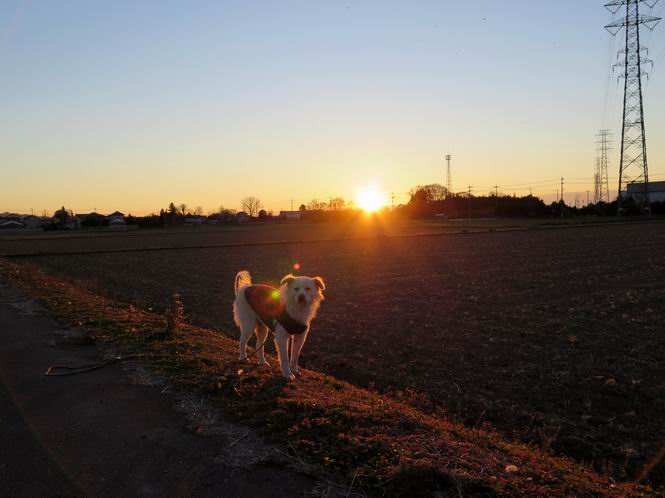 | 平成二十七年一月一日 Before 写真集目次へ Next 明けましておめでとうございます。 いつもぼくのホームページを見て頂き有難うございます、今年もよろしくお願いします。 これから早めに散歩をすませて、 初日の出を拝みに出かけます。 ![]() 毎年来る場所ですが、なびいた雲があって、なかなか太陽が出てきません。 やっと初日の出を迎えました。また、今年一年病気や怪我をしないように、拝んできました。 冷たい風の吹く中を、田圃道を通って、家に戻りました。 入口には日の丸が上がってました。おせち料理を少しだけ頂いてお正月気分を味わいました。 みなさんにとっても、良いお年であるように、ぼくもいっぱい山へ連れてってもらおうかな。 【忠治と共に】 忠治も我が家の一員となって10年目に入ってます、早いものですね。人間の齢では還暦ってところでしょうか。外観的には、毛がうすくなったり、皮膚のあちらこちらにシミ状のものができたり、目ヤニがたくさん出るようになりました。寒がるものですから、一枚着せて、夜は毛布にくるまって寝ています。 でも食欲は旺盛で、嬉しがるものですから、つい人間の食べ物を与えてしまいます。果物が大好きで、メロン、リンゴ、ナシが大好物です。主食はドッグフードで、人間食は薄味のものを少量(?)選んでます。 撮影:2014/12/31 撮影:2014/12/31 撮影:2014/12/31 撮影:2014/12/31 運動は一日2回の散歩、雨の日も風の日も、これは全く変わってません。私の健康管理にも影響しているところでしょう。 他に、山に時々連れて行ってますが、昨年は30回弱、このうち4時間以上が8回と見かけは衰えを見せていませんが、私の先を歩き、猛進する勢いはなくなりました。どちらかというと、後について楽をするようになりましたし、疲れると座り込んでしまいます、これは人間にとってマイナス面の知恵がついたようにも感じます。深い雪の斜面、急階段の下降などぴったりついて歩いてます。 こういった変化を感じてますので、体力の読みが難しく、エスケープを考えた行動範囲にとどめるようにしてます。状況により、これは?、と思うときは、コースの短縮、急登回避を行っていますが、山支度を始めると、連れて行ってくれと言わんばかりに、自分の荷物を入れたか、良く見ています。この眼差しに負けてしまい、連れていくか・・・、の繰り返しです。 いつも、単純な擬人化した短文の繰り返しになりますが、忠治の表情と合せて笑みを覚えることがありましたら、この上なき喜びです。本年も相変わらず、よろしくお願いします。 末筆になりましたが、皆様のご健康とご多幸をお祈りいたします。 Before 写真集目次へ Next |