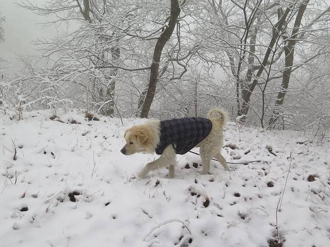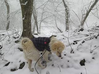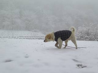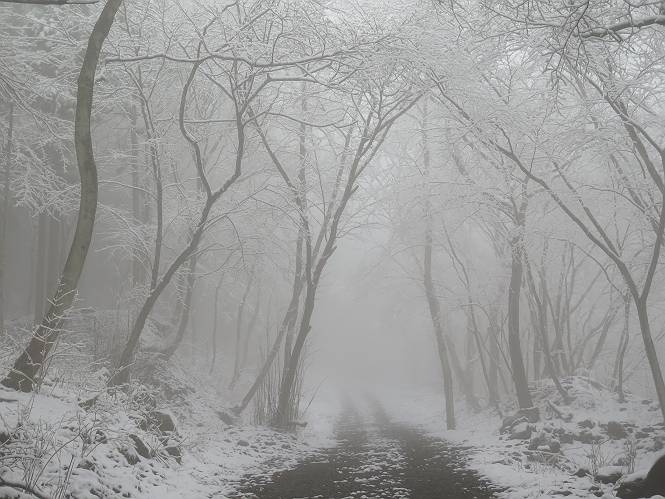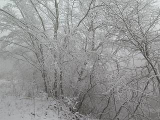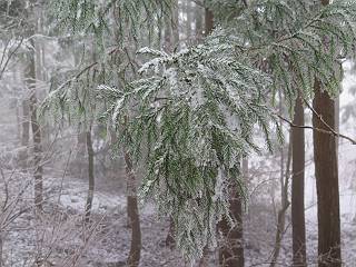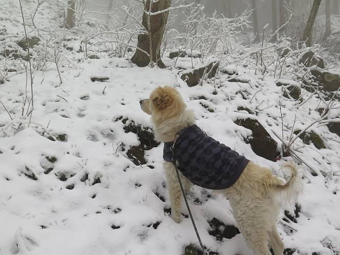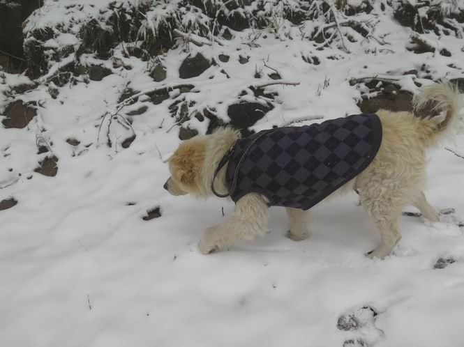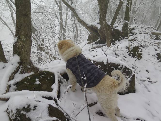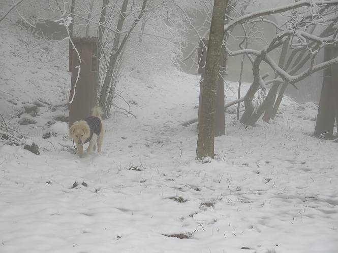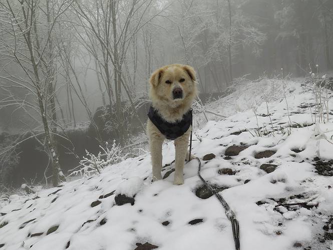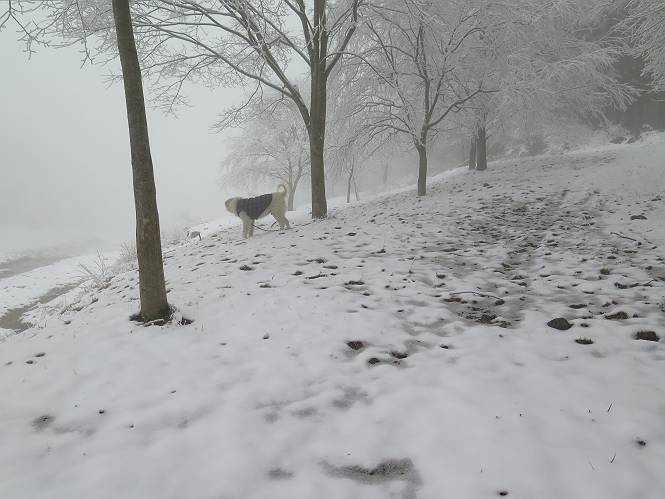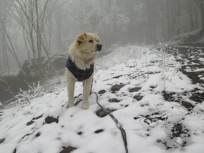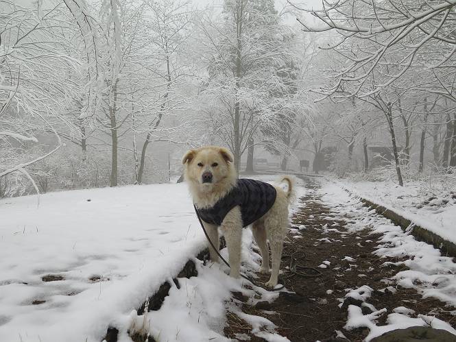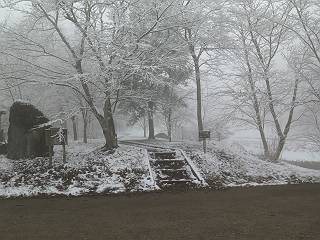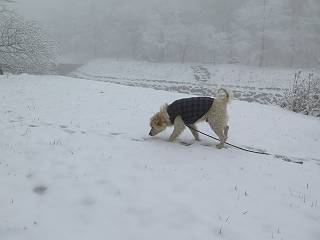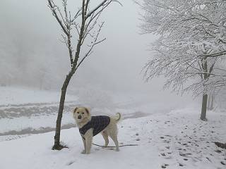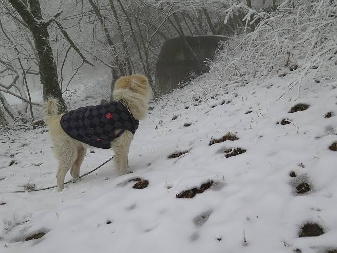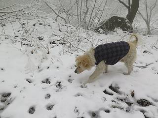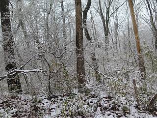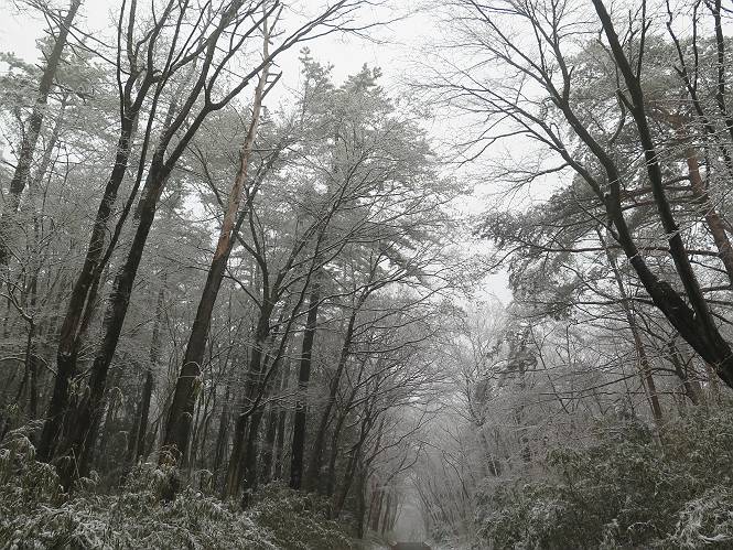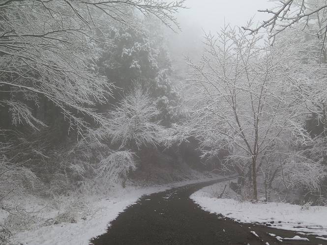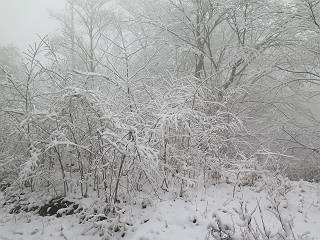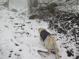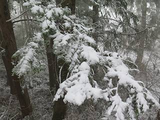 平成二十七年四月九日 Before 写真集目次へ Next 桜の花見に赤城山方面に出かけましたが、天気も良くないし、千本桜には大勢の人が見えたので、大猿山乃家方面に変更しました。すると、葉の上に雪が、更に進むと、霧の中にきれいな着雪が見えました。大猿の駐車場周辺を散策してきました。 大猿山乃家に近づくと雪だ出てきました。 着雪がきれいでしたよ、写真は松の葉です。 雑木林の着雪です。 芽吹いてきた小さい木にもきれいに雪がついてました。 奥へ進むほど雪の量が増して、怖くなるほどでした。 駐車場から大猿川に沿って、 霧の中を歩いて行きました。 ワンコの足跡がついている、今日、だれか歩いたな。 足跡がなくなった、どっちへ行ったのかな。 ここは、ちょっと広くなっているので、いっぱい足跡をつけちゃいました、ワン。 川に降りても面白そうだけど、今日は駄目なんだって、 真っ直ぐ、川沿いに進むと、怪しい雰囲気になりました。 堰堤で行き止まってしまいました。 戻って、途中から上の道に出る、って言ってますが、 小さい草木にはいっぱい雪がついてますし、ここからでは、上には上がれないなあ。 仕方なく、半分ほど戻って、 斜めにショートカットして、 上の道に出られました。 沿道の雪が大分多くなってきました。 道の真ん中は、解けて、雪がないのですが、多い端を歩いてます、面白いんだものね。 桧と杉に着いた雪です、きれいだね。 この道、どこまで行くのかねえ。 猿田彦神社? 乙女の滝? そこまでは行けないよ。 「もう、随分歩いたよね」、「うん」 「霧が立ち込めて、何だか怖いなあ」、「大丈夫だよ」 ここの岩、崩れるんじゃない? 「もう、戻りましょう」、「じゃあ、遊びながら戻るか」 この辺で、ちょっと遊んで、行きましょう。 動物の足跡が沢山あるよ、鹿さんかな? この先は薮です。 一旦出て、 入り直しをしました。 何だかわりませんが、テープが沢山巻いてあります。 ちょっと歩いてみましたが、 すぐ、道に出てしまいました。 今度は、・・・・・、 上がってみよう、 面白いぞ、ドンドン行ってみよう 変なところに出ちゃったなあ。 この沢みたいなところを上ってみよう、ヨイショ、ヨイショ、 大分上がってきたぞ、 「忠治、もうやめとけ」 「もう少し・・・・、」 平になったところで、この辺んでやめておきましょう。 道に戻って、 しばらく歩くと、 先ほど歩いた大猿川沿いの遊歩道に入りました、 ちょっと先で、駐車場に出ました、良かった、安心でーす。 大猿山乃家付近は年間通して静かな所で、何度か長い尾根から長七郎山まで歩いたことがあります。賑やかな場所を歩くのも、また、楽しいですが、ここもいいですよ。 Before 写真集目次へ Next |