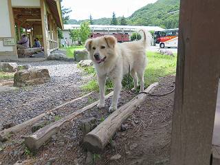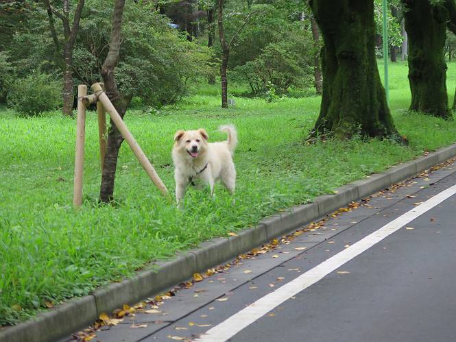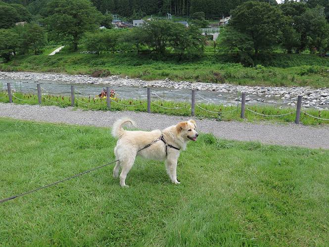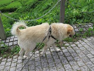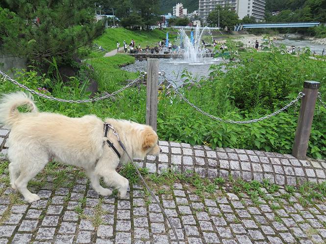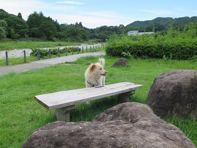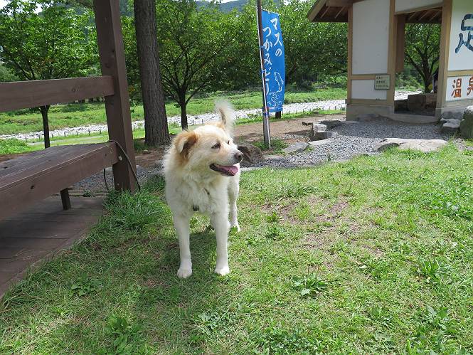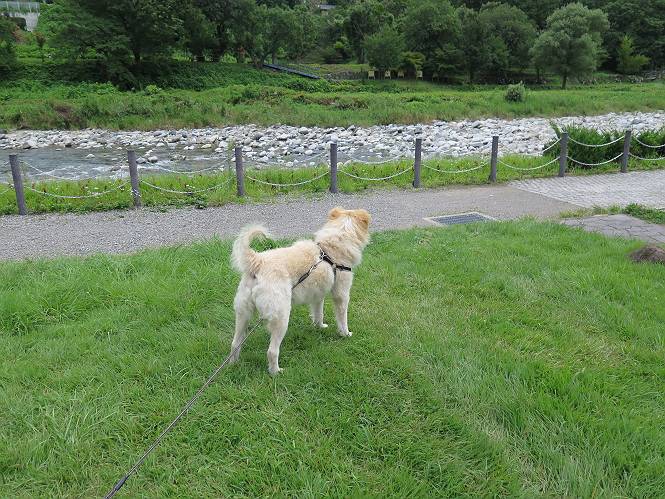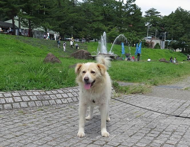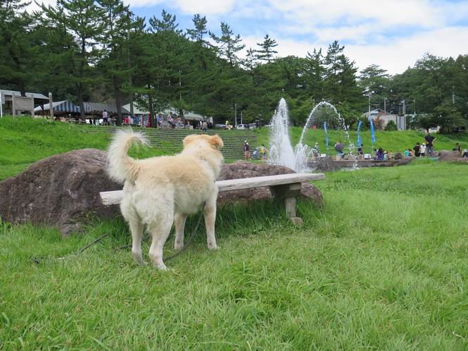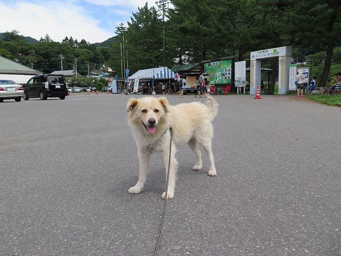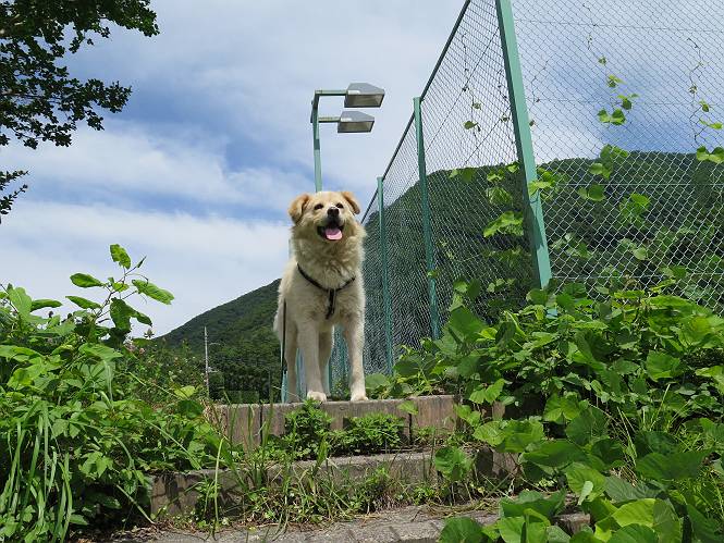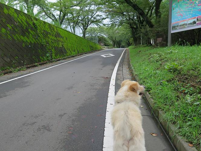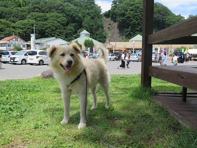 平成二十七年八月二十四日 Before 写真集目次へ Next 10日に左後足を捻って、時々3本足で歩くようです。大事をとって散歩は控えめ、散歩の途中で変な歩き方をすると、車で迎えに来てもらいます。でも、食べて寝転んでいるだけでは、飽きてしまうので、車であちらこちら出かけます。19日は水上へ、今日は千本桜をちょっと歩いてきました。 最初は19日に水上へ行った時の写真です。湯桧曽公園でテニスコート周辺を歩きまわりました。 ヘンスの中にボールがあります、欲しそうに見ていると写真を撮られてしまいました。 水紀行館に移動しました。 あっちも、こっちも、人がいっぱいです。 大きいワンコ、小さいワンコ、見えるよ。 利根川の河川敷にある公園に降ります。「ゆっくりだよ」、と言われてます。 あそこにも大きいワンコがいるよ。その奥にも・・・。 「あれ、何だ」、「噴水だよ、水が噴き出てるんだよ」 「いい匂いもしてるなあ」 「あれ、今何か行ったよ」、「ボートだよ」、「面白そうだね」 「行っちゃったね」、「また来たぞ」 「次々、やってくるねぇ、楽しそうだなあ」 「こっちは、水遊びをしている、ぼくもやりたいな」、 「足が治ったらな、それまで我慢だな」 多少の坂道は普通に歩けるのですが、急にグキッといくことがあるんですよ。 早く、足を治して、連れてきてもらおう。 おべんとうを少し頂いて、水上を後に、ハッチでゆっくり・・・・・、お家に戻りました。 ここからは、今日、前橋の千本桜を歩いてきた話です。ほくの足慣らしにと、お父さんが緩い坂道を考え、ここにしました。適度な坂道と、「障害物がなく、両側とも土で、丁度いいのかな」、と言ってました。 これが案内板だそうです。結構長そうですが、お母さんが買い物をして、ぐるっと回って、反対側で待っていてくれるんですって。 隣は、何かと思ったら、さくら名所100選の碑だって。 入ったり、出たり、足に優しいですね。 道路も歩きますよ、時々車が通るんですよ。車はゆっくり走ってくれます。 グランドの中は、草取り中だそうです。 この辺は、お花見でお弁当を食べる所ですかね。 「忠治、いいぞ、いいぞ」、って言ってます。 いい感じの道ですね、暑い日もここは涼しいでしょうね。 この辺で、半分?、まだまだ・・・・・。 「忠治、絵になってるぞ」、って喜んでました。 草の葉っぱを食べてきました、おいしかったです。 お父さんは、また走って行って、ぼくを撮ってるよ。 もう、半分は過ぎた、ってさ。 ここを無事歩ければ、3,4日後に低いお山に連れてってくれるんだって、徐々にだよね。 Before 写真集目次へ Next |