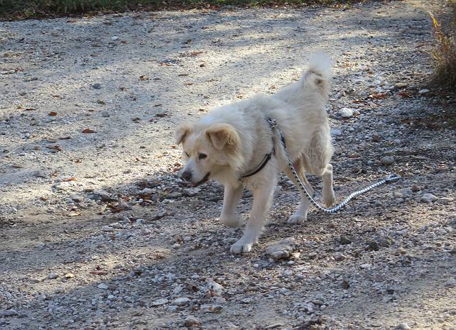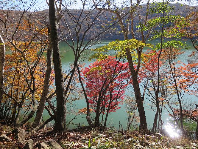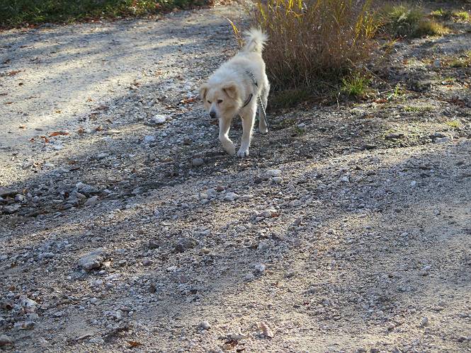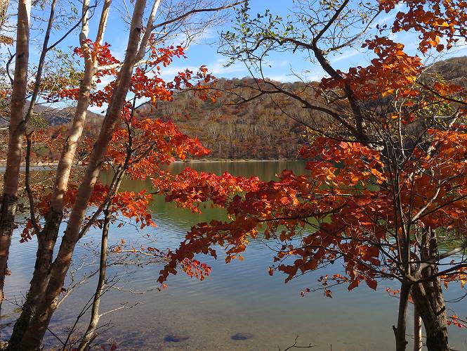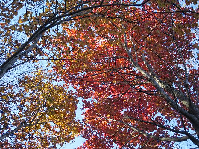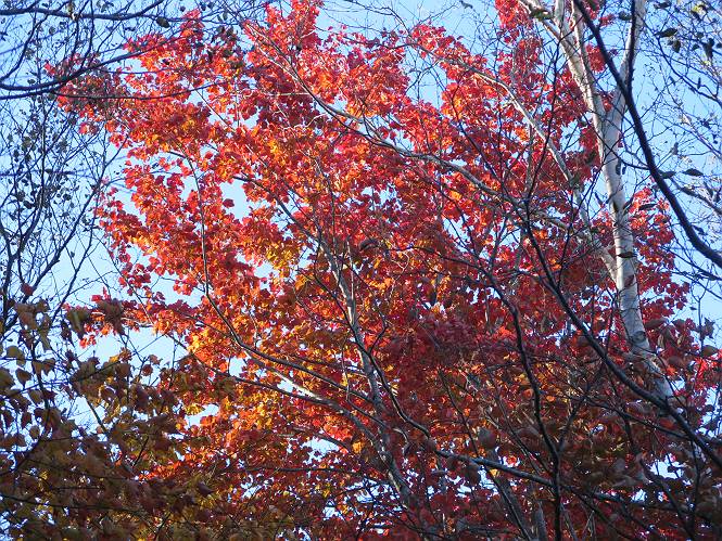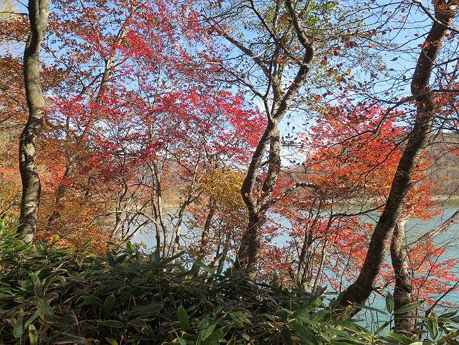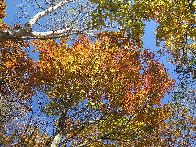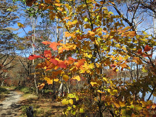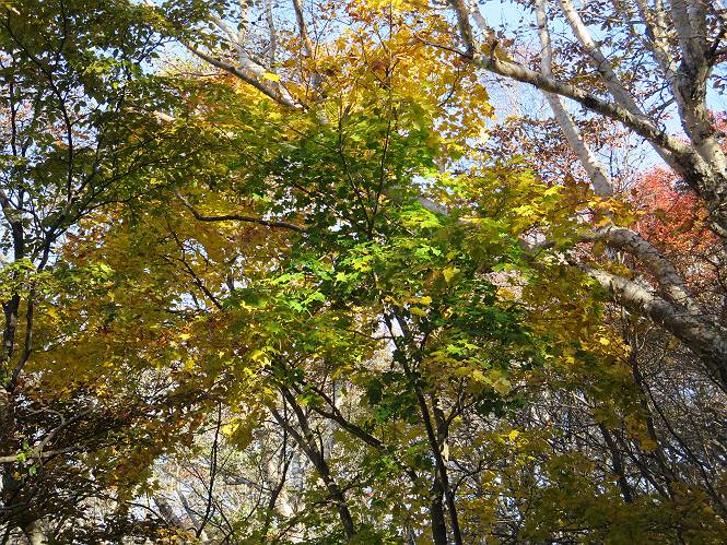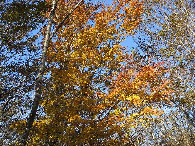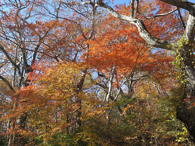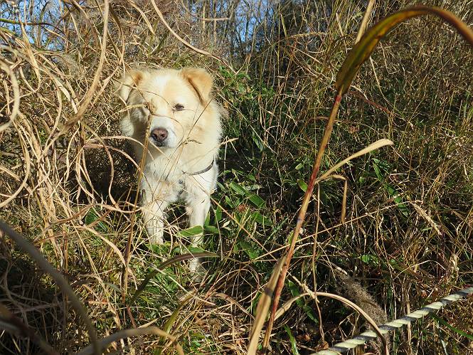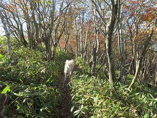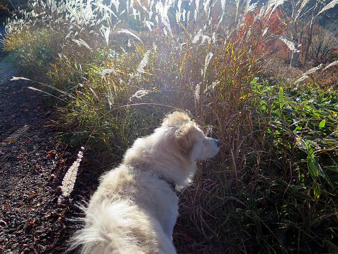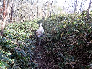 | 平成二十七年十月十五日 Before 写真集目次へ Next 足を怪我して2ケ月過ぎました。朝夕の散歩は普通に歩けてますが、時々ビッコをひいて、「まだ、だなあ」、と言われて、山には行ってませんでした。今日は、一番l簡単そうな、赤城の長七郎山に連れてってもらえることになりました。うれしくて、うれしくて、「ワン、ワン」吠えてしまいました。 赤城山は紅葉真っ盛り、7時前ですが、いっぱい車が停まってました。ここは小沼の駐車場ですが、20台ほどです。出発です、右回りで一周します。 しばらくぶりで、少し緊張するなあ。 小沼の南の浅香嶺、紅葉がきれいですね。カメラを構えた人が、沢山いますよ。 ぼくのすぐ前にもいます。わざわざ逆光で撮っているんですって。 赤城の山が見えるところに出ました。 右が駒ヶ岳、左が黒檜山です。 左は大沼のまわりです、紅葉がきれいですね。 奥に見えるのは、武尊山ですって。 一番左はアンテナが沢山立っている地蔵岳です。 みんな、何を撮っているんだろうね。 ここから長七郎山に上がって行きます。林道のような道をしばらく歩きます。 道に沿って、赤、黄、橙、色んな色、キレーイ。 真っ赤なカエデです。 お父さんは、写真ばかり撮っていて、なかなか進みません。 今日は、ゆっくりと、ぼくの足慣らし、だってさ。 おやおや、緑と黄色、これもいいね。 黄葉の始まりだって。 ふーん、そういうことか。 「忠治、ゆっくり、そんなに早く歩くな!」、 こんなに良い道だものね。 あれっ、行き止まり?、と思ったら道が狭くなるんだ。 北寄りに、山並が見えました、皇海山と袈裟丸山だそうです。 「石ころ、根っこ、気をつけるんだぞ」 今度は、草と笹の間を歩いてます。 ロープの外は崖になっているそうです。 笹の道を抜けたかと思ったら、 続きがありました。 その先は、長七郎山の山頂のようです。 長七郎山山頂到着です。 姿勢を正して、黒檜山を入れてもう一枚。 黒檜山山の東に、日光白根山と皇海山が見えてます、大きくして撮りました。 長ーい休憩をして、おやつ」と水を頂きました。後ろは地蔵岳です。 地蔵岳の左には荒山、となり奥に浅間山が見えてます。 東側はススキが茂っていて見えません。 そろそろ、下るんですって。 「忠治、ゆっくりだぞ」 ちょっと下ると、平で広い場所に出ました。 隅の方を回ってます。 別に意味はないのです、遊んでいるだけです。 ガレた場所を通って、また広い場所に出ました。 また、細い道になるようです。 紅葉した木が出てきました。 この木もカエデかな?、と言ってました。 ここで、山はお終いですって、あとは林道歩きだそうです。 きれいだな。 ちょっと降りてみたいなあ。 ちょっとだけ、林の中を歩きました。 危ない場所はありませんでした。 紅葉のトンネルを通って、 少し、進みますと、 小沼尻に出ました 小沼尻から見た黒檜山です。 こちらは、地蔵岳です。 湖畔の道沿いにはずーと紅葉が続いてました。 紅葉を入れてぼくも撮ってもらいました。 こんなポーズ、いいでしょう。 お父さんが、「小沼周辺の紅葉が、一番いいかな」、って言ってました。 きれいだったね、後ろの山が歩いてきた長七郎山です。 道路に出ました。 「忠治、端を歩け!」 駐車場に戻りました。 おやつをもらって、「忠治、車に乗った!」 「ぼく、嫌だよ、まだ帰りたくないよ」 そんなわけで、2ケ月ぶり、一番簡単な長七郎山を時間をかけて、ゆっくり、足場の良い場所を選びながら歩きました。この調子なら、簡単な山を何度か繰り返せば、・・・・・、と言ってました、良かった。 Before 写真集目次へ Next |