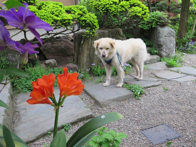 | 平成二十八年五月三日 Before 写真集目次へ Next この間、袈裟丸山に連れてってもらった晩から、またお腹の調子が悪く、下痢が始まってしまいました。夜中に2度トイレに起き、嘔吐もして、散々でした。でも、お医者さんには行かず、様子をみるって、お母さんが言ってました。今日も、まだ、下痢が続いてますが、食欲がでてきたし、大丈夫そうだってさ。そんなわけで、一日中、お庭をブラブラ、寝転んだりしてました。 お庭の花、オダマキだって。 これもオダマキだそうです。 ぼくの右の花はヒメシャガです。 赤いのがクンシラン、紫色がテッセンです。 これは何でしょう、ナニワイバラというそうです。花が1000個ついているんだって。ツルの格好につくったのですが、重くて変形してしまいました。 後ろの赤い花は、オキザリスというそうです。 これはシロバナシランというそうです。 夕飯は、いつもの半分ほど頂きました。早く治して、また、お山に連れてってもらおうかな。 Before 写真集目次へ Next |