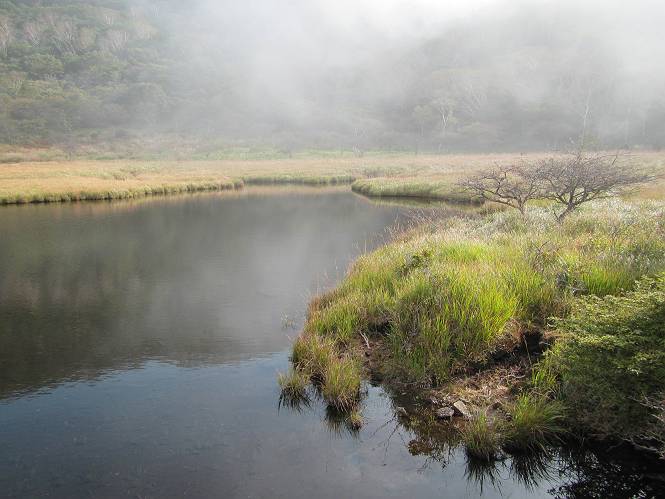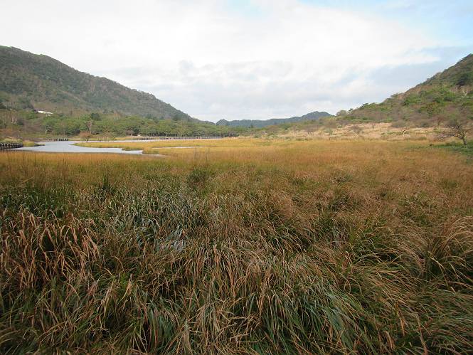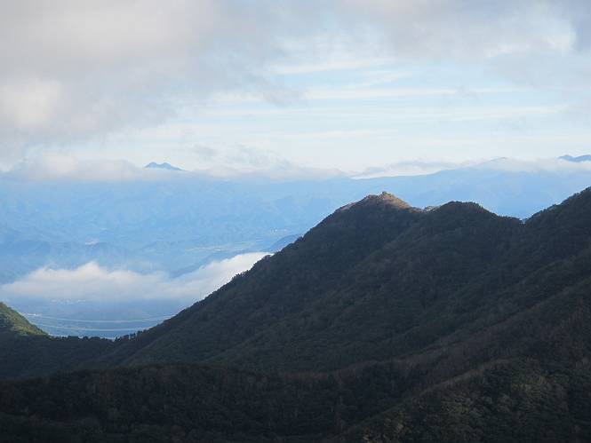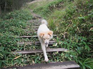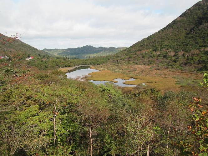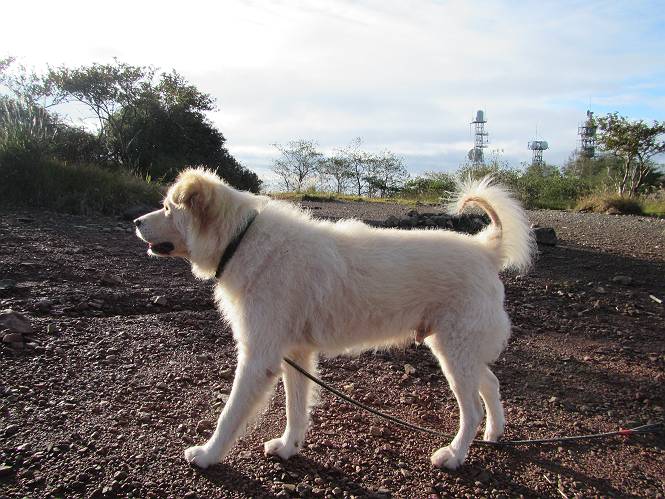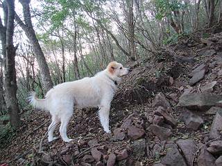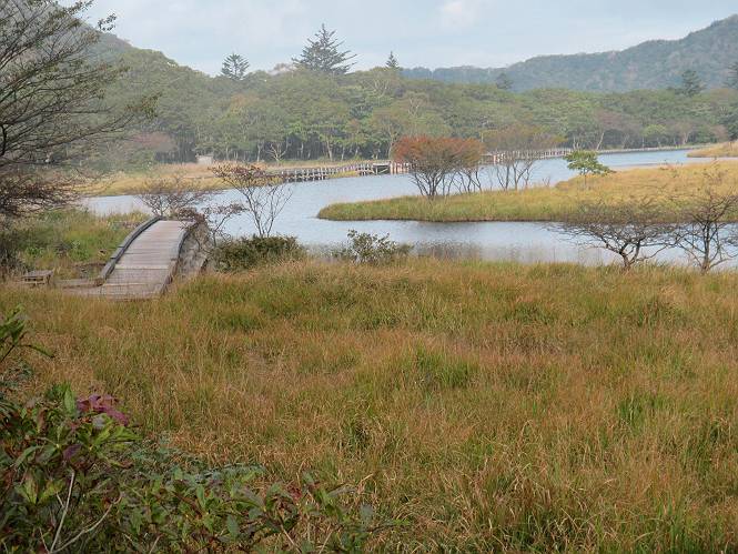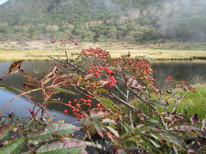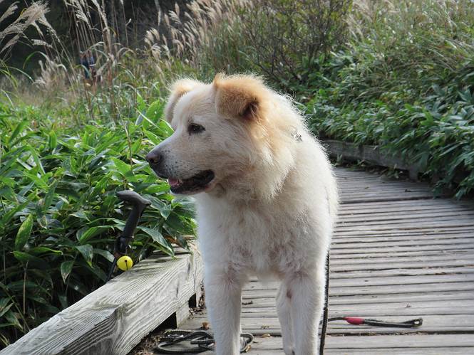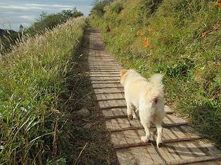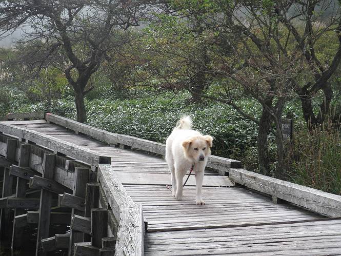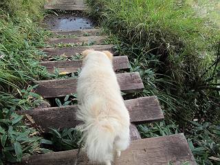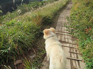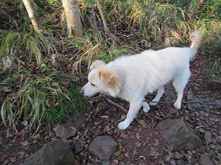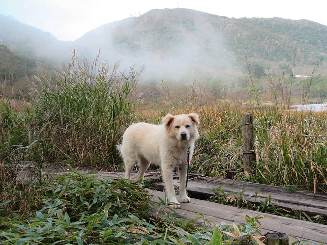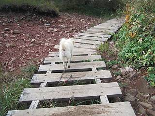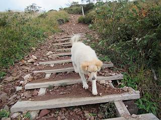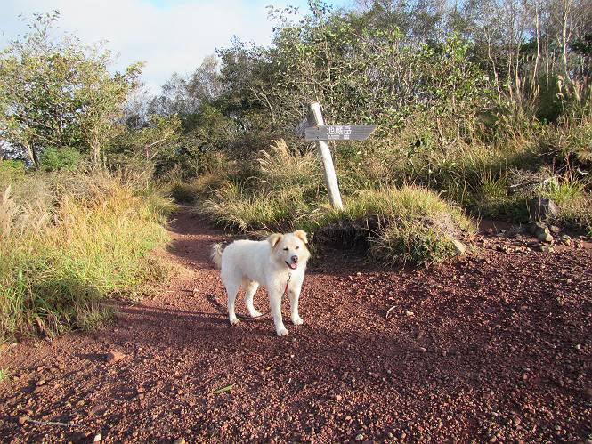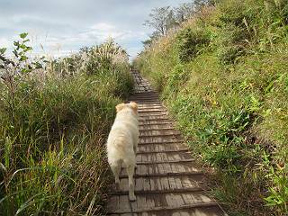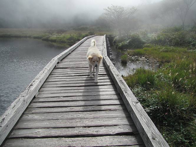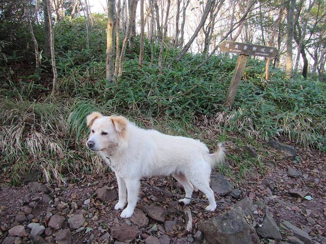 平成二十八年九月三十日 Before 写真集目次へ Next 大分涼しくなったので、2,3ケ月ぶりかな、赤城山へ行ってきました。見晴山駐車場から地蔵岳へ上り、八丁峠から道路を歩き鳥居峠へ、ここから覚満淵の木道歩き、また道路を少し、句碑めぐり遊歩道を歩いて見晴山駐車場に戻りました。 見晴山駐車場です、ここからスタートします。 ちょっと進んだところから右に曲がって、緩やかに上がって行きます。 笹に被われた雑木林です、右は牧場のようです。 下の方で鹿が鳴いてました、追って行きたいのですが、「ダメ!」が始まります。 角張った石ころの道に出たり入ったり 岩がひとまわり大きくなって、その先で新坂平からの道に合流しました。 徐々に急坂になって、歩きにくくなっていきます 踏ん張って、上がって行きました。 森の中に陽がさし、アンテナが見えてきました。 もう少しで山頂のようです。 山頂部に出ました、ヤッター、しばらくぶりなのでうれしかったです。 アンテナが沢山ありますね。 草が紅葉して、綺麗です。 奥の方へ行ってみよう。 小さな半身の地蔵様がありました。 平らな山頂部を北側に進みます。 一面のススキの間を通って、 三角点のある山頂に出ました。 オヤツとお水を頂いて、おいしかったです。 大沼と黒檜山、霧が大分払われてきましたが、もう少しです。 左側を大きくすると、小黒檜山の左に燧ケ岳が見えてます。 誰も来ないなあ、どうしたんでしょう。 とりあえず、八丁峠へ下ります。 小石を敷き詰めたような道を、緩やかに下って、 木段に出ます、長いですよ。 この先で、 小沼が見えました。 ちょっと木が被ってますね。 抜けると木道に出ました。 草が綺麗ですね。 陽がさして、 ススキの穂が輝いてます。 笹が多くなると、八丁峠までもう少しです。 長いなあ、 走っちゃおう 木段が終わって、 ちょっと先で道路に出ました、駐車場です。 ここが八丁峠です。その先、小沼駐車場付近で行ったり来たり、 結局、道路を歩いて、鳥居峠に行きます。 地蔵岳が、こんな形に見えます。 ショートカットもしました。 法面の一ヶ所だけ、紅葉の進んだ場所がありました。 鳥居峠の駐車場に出ました。 ここから覚満淵を見下ろしました。 草紅葉が綺麗ですね、あっちへ行ってみよう。 鹿避けネットをくぐらしてもらいました。 東の木道から覚満淵を眺めてます。 綺麗ですね、時々霧がかかります。 南周りで草紅葉を見ながら歩いてます。 綺麗ですね。 周りの木が紅葉したら、・・・・・ また、霧がまってきました。 ひとが出てきましたね、写真を撮っているのかな。 レンゲツツジの紅葉です、始まったところですね。 マユミの実です。 これはテンナンショウだそうです。 ナナカマドの実です、葉は大分傷んでますね。 ズミの実です。 霧です、 見えなくなってしまいそう。 そろそろ、ガスもまいてきたことだし、 道路の方へ、行きましょうか。 鹿避けの引き戸を通って、 ビジターセンターの所から道路を歩いてます。 ここからも八丁峠へ行けるそうです。 スキー場の横を通って、 句碑めぐり遊歩道に入りました。 道路がすぐ下に見えます。 山の中におじさんがいるよ、「キノコ採りかな?」 句碑ですが、ぼくは解んないよ。 少しずつ上がってます。 ここで、沢の水を飲みました、ついでに遊びました。 ここから少し進むと、駐車場です。 久しぶりに楽しかったです、ぼく疲れてないよ。 Before 写真集目次へ Next |