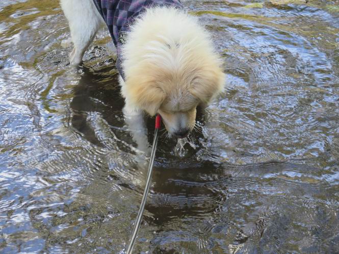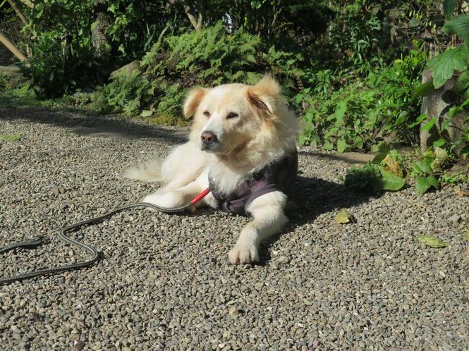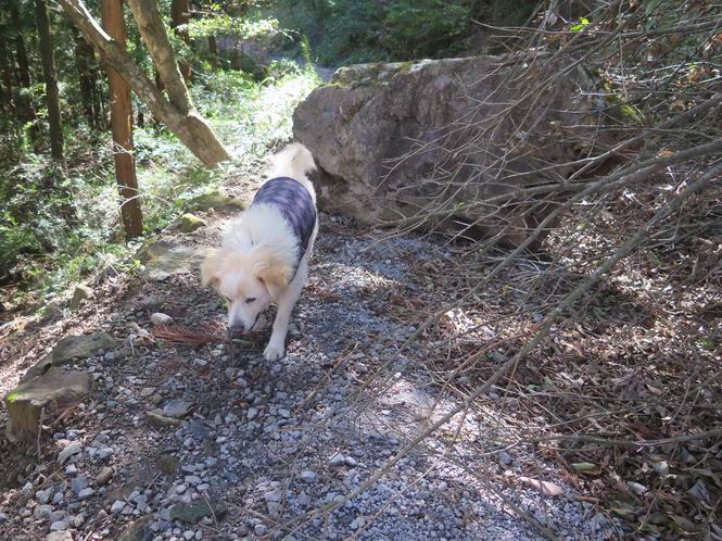 | 平成二十八年十月二十九日 Before 写真集目次へ Next 朝早くから、お勝手の下水がつまっちゃって、お父さんとお母さんが直してましたよ。ぼくは、ひとりで、遠巻きにアッチコッチ歩きまわって、遊んでました。 油のカスが固まってつまっていたそうです。これから支度をして、中之条の方に紅葉を見に連れてってくれるそうです。 車で走り出すと、流れが良くありません。行き先を変更して、赤城の大滝になりました。工事中の林道を歩き、沢に向かいましたが、おじさんたちが数人工事をしていて通れません。 工事中の林道から、紅葉を眺め戻り、 今度は大猿の散策だってさ、最近歩いた沢筋から、奥の方へ入ってきました。後ろの岩は最近落ちたようです、端はやっと通れました。 みんな、好き好きな歩き方をしてます。ぼくは、山際を歩いたり、谷側を歩いたり、ひどい蛇行を繰り返しているようです。 沢に入って行きたいけど・・・・・。 クサリを越えて、 道も蛇行してます。 小さくて、きれいな沢に下りました。リードは濡れないようにお父さんが持ってます。 石を投げてもらって、それを探すのが面白いんです。 夢中になって、お腹まで、顔も濡れてしまいました。 ビショビショ、 この石ころだったかな? ぼくが水遊びをしていると、お母さんがドンドン先に戻っています。「待って!」 家に戻ったら、柿の葉がいっぱい散ってました、風が吹いたようです。今日は土曜日で、晴れ、混んでいたので仕方ありませんね。 また、連れてって下さい。 Before 写真集目次へ Next |