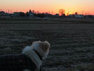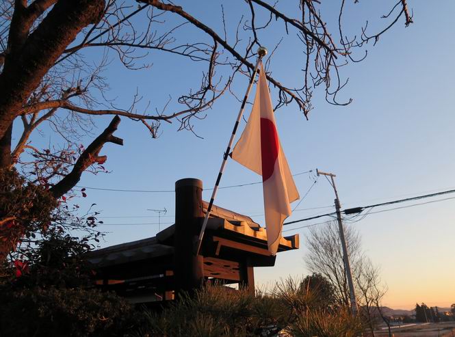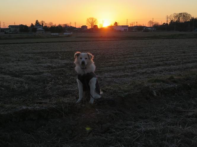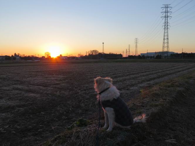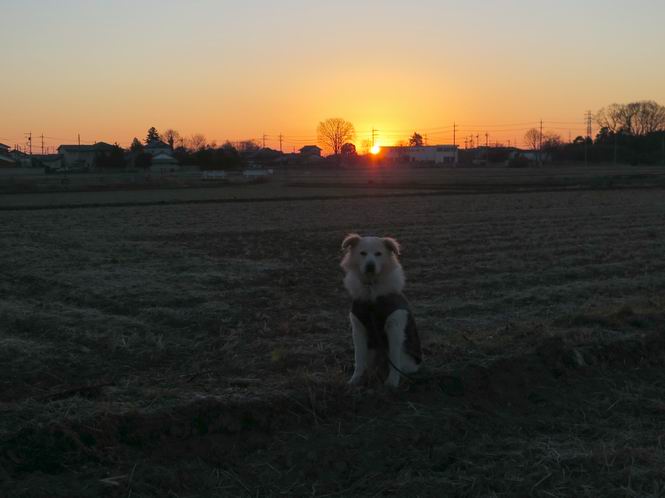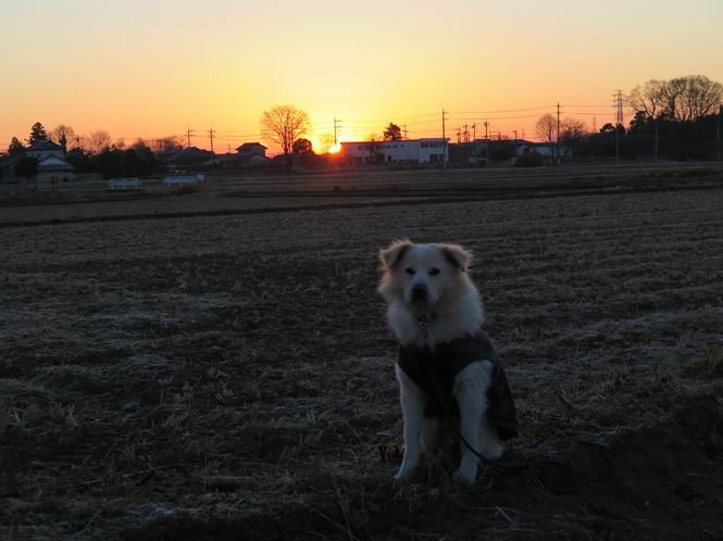 | 平成二十九年一月一日 Before 写真集目次へ Next いつものお正月、今日は静かでいい天気です。いつもの場所で、初日を拝んできます。インターチェンジの東の方なので、車で向かいます。温かい車の中で日の出を待っていましたが、そろそろぼくの出番のようです。 大分明るくなってきました、そろそろかな、あの辺かな、 今年も怪我、病気しないように・・・。 初日の出です。 ちょっと建物にかかってますが、良い日の出だそうです。 大体昇りきったようです。 おお、まぶしい、綺麗だな、新しい年が始まったんだ、この一年が良い年でありますように。 家に戻ると国旗があがってました、そよ風に少し揺れてました。 おせち料理を頂いて、散歩に出ました。赤城山の山頂には雲がかかってました。 山頂は吹雪いているのかなあ。雪遊び、したいなあ、連れてって。 高速道路の南に出ました、後ろは太田の金山です。 山頂は初詣の人で、お正月は混むんですって。 家に戻って国旗の傍で一枚、前の通りを、昼頃、ニューイヤー駅伝の選手が走るんだよ。 あらためて、明けましておめでとうございます。 2016/12/31撮影 今年も皆様方にとって、良い年でありますように、願ってます。 2016/12/31撮影 今年もよろしくって言いたいところですが、わけあって、ぼくのホームページも1月末で終了することになりました、あと2,3回の更新ですかね。ご覧頂いていた皆さん、有難うございました。ぼくも、お父さん、お母さん、みんな健康で頑張ってます。皆さんもお体を大切に、楽しい生活をして下さいね。 Before 写真集目次へ Next |