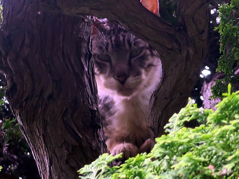 我が家の枝垂れ桜の根元で土に還してやりました。写真は最近の木登り&けんか相手の仮名アカトラ写真です。
