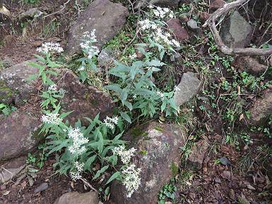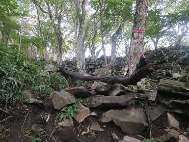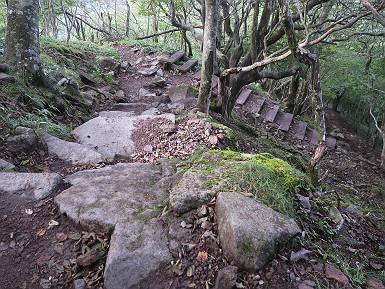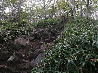 | 山行日 2024年9月25日 曇り一時晴れ 単独 コース 黒檜山登山口→黒檜山→駒ケ岳→駒ケ岳登山口→おのこ駐車場→黒檜山登山口(総距離5.0km) 山間足慣らしに赤城山に出かける。先日までの猛暑はどこへやら、家を出る時16℃、登山口で10℃、ちょっぴり着込んで坂道に入る。天気はイマイチ、眺望も残念だった。出発時間が早いせいか、大タルミまで誰にも会わず、登山口に戻って15℃、汗をかくこともなかった。紅葉はまだまだって感じ。 5:47,黒檜山登山口出発 地蔵岳&大沼 6:04,猫岩 露岩の道が連続する ニホンカモシカに出合う 尾根に出て、富士山ビューポイント、雲が垂れ込め眺望きかず 北方向に目指す黒檜山 樹間に地蔵岳 駒ケ岳からのルートと合流して 7:12-7:29,黒檜山 北のビューポイント往復 眺望イマイチ、日光白根山 皇海山 男体山 浅間山 榛名山 鈴ケ岳、 武尊山 笠ケ岳 至仏山 燧ケ岳 万太郎山 谷川岳 朝日岳 巻機山 万太郎山 オジカ沢ノ頭 谷川岳 武能岳 燧ケ岳 笠ケ岳 日光白根山 皇海山 分岐点に戻って 7:33,黒檜大神 7:35,進んで花見ケ原コース分岐 木段を下る 樹間から長七郎山 小沼 地蔵岳 軽く登り返して振り返る 黒檜山 7:57,大タルミ メギの実 大タルミから黒檜山 木段を登り返して 8:10,駒ケ岳山頂 駒ケ岳から大沼&鈴ケ岳 緩やかに下って関東ふれあいの道碑 8:26,休憩所 小沼 しばらく急坂を下る ゴマナ? 8:59,駒ケ岳登山口へ ノコンギク? ワレモコウ 9:16,駐車点到着 総所要時間は、3時間29分、山中で9人に出合った。 8080221の雑記帳(続)へ 記録一覧へ |