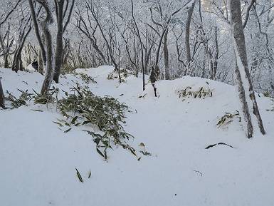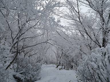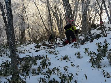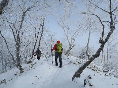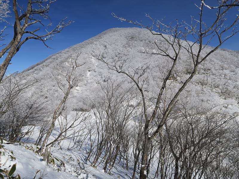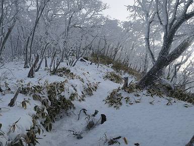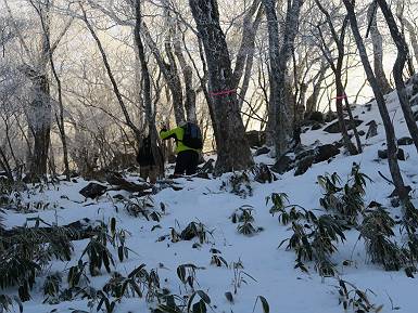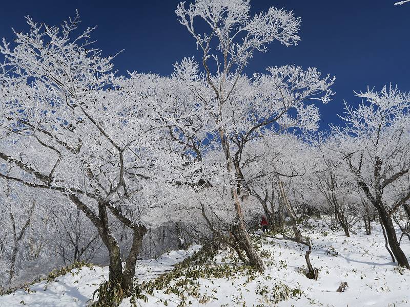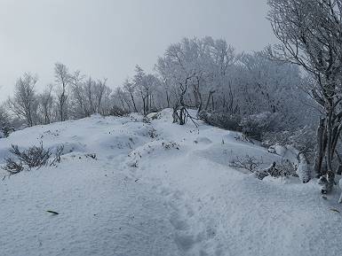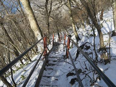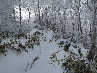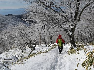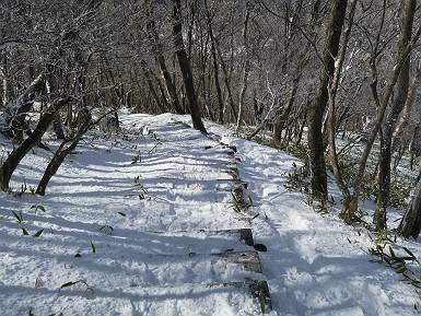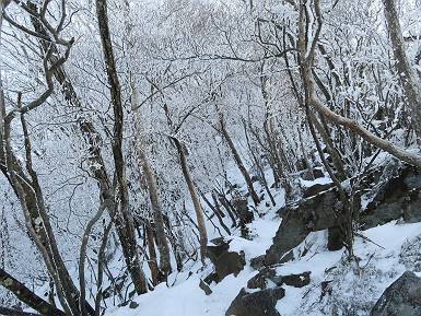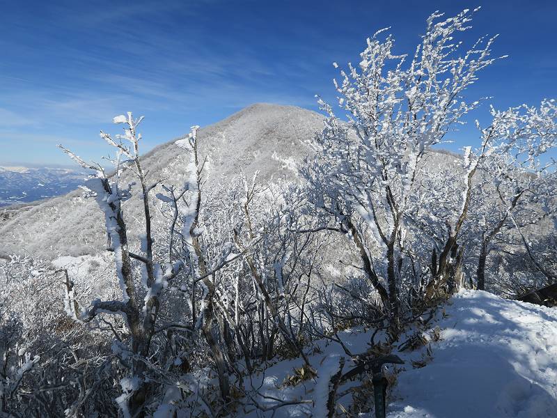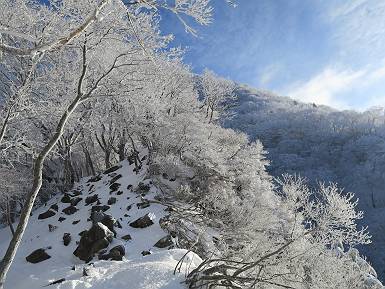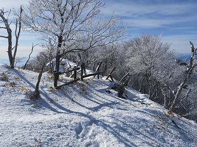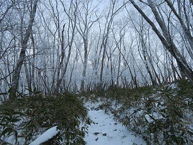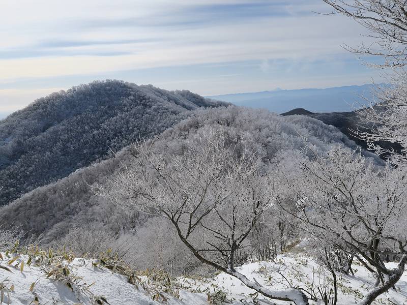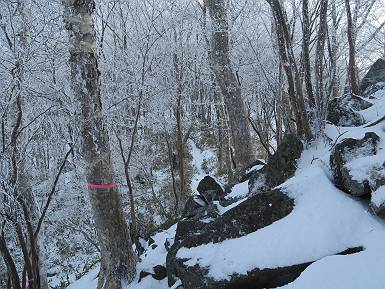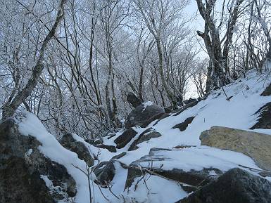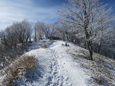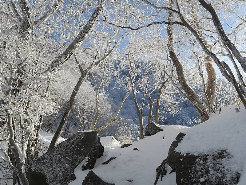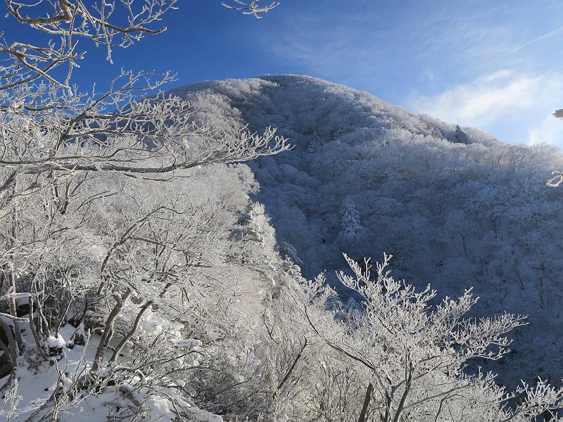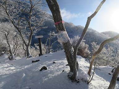 | 山行日 2024年12月25日 晴れ コース 黒檜山登山口→黒檜山→駒ケ岳→駒ケ岳登山口→黒檜山登山口(5km) 今日は良い霧氷が見られるだろう。早朝のおのこ駐車場から見上げる黒檜山には少々雲が。 路肩に駐車して7:18,スタート。 霧氷を鑑賞しながらゆっくり歩く、ゴロゴロ岩が歩きにくい。 猫岩付近から地蔵岳 7:40,猫岩 8:15,富士山ビューポイント 地蔵岳の左に富士山遠望 地蔵岳の右に八ヶ岳 北方向に向かう黒檜山 急坂が続く 枝間から浅間山 同、富士山 ガスってきちゃった 9:17,駒ケ岳からの道を合わせる 9:22,黒檜山着 ガスの中ビューポイントへ向かう 9:29,祠、しばらく様子をみる・・・・・ 薄日が差すが、駒ケ岳経由で下ろう ビューポイントに向かうハイカー 青空も・・・・・ 9:39, また雲ってしまった、帰ろう 9:46、分岐点通過 黒山大神 周辺の霧氷 9:46,分岐点 木段注意 雲が取れてきた、趙七郎山、小沼、地蔵岳、小沼の南に富士山 東に筑波山 やすべーさんにバッタリ、元気だなあ 向かう駒ケ岳と富士山遠望 へ小ピーク 鈴ケ岳、北アルプスと四阿山 10:24,下って大タルミ 大タルミから黒檜山 軽く登り返して、黒檜山を振り向く 10:46,駒ケ岳着 黒檜山左に上越の山並み 駒ケ岳山頂から浅間山〜草津白根山方面 浅間山 ![]() 仙ノ倉山、谷川岳方面倉山 苗場山方面 草津白根山方面 黒檜山 11:12,ベンチ 上の鉄階段 下の鉄階段 アイゼンを外して・・・・・ 11:54,駒ケ岳登山口 おのこ駐車場 おのこ駐車場から黒檜山 駒ケ岳西斜面 黒檜山登山者駐車場 12:15,登山口の路肩 総所要時間は、4時間57分、距離はおよそ5km、累積標高差は430mほど。黒檜山の岩場と駒ケ岳の階段には往生しました。 8080221の雑記帳(続)へ 記録一覧へ |