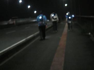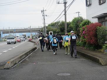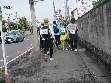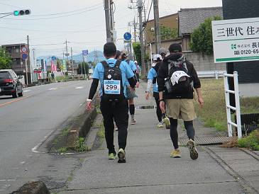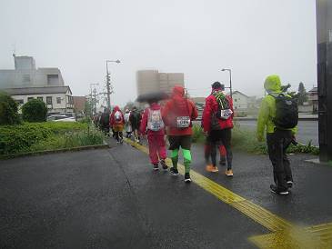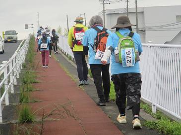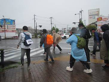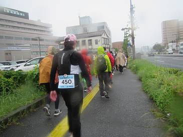 | 山行日 2025年5月10日 雨のち曇 600名参加 コース 前橋市役所利スタート→伊勢崎cp→太田cp→桐生cp→前橋市役所ゴール 小雨の中、前橋市役所駐車場を出発、伊勢崎市に入るまでは予定通り歩けたが、このあとが体調がすぐれず、尾島のエイドポイントでリタイヤしてしまいました。 前橋市役所駐車場集合 挨拶があって、 9:00スタート 小雨の中前橋市内を通過 高崎市内通過 12:53,エイドポイントで休憩 利根川を渡って再び前橋市 東善町右折 高速道をくぐり玉村町へ 15:03,伊勢崎市に入る 広瀬川を渡り、間もなく 16:24,伊勢崎cpで休憩 R354に入り 側道を歩く 東武線踏切を渡り 境木島、ここでスタート地点から39.5km 夕日に輝く路端の花 陽が沈む 上武高架下 東武線陸橋を下って 19:50,尾島エイドポイント、ここで残念だがリタイヤ 総所要時間は、10時間50分、距離は45.7km。 8080221の雑記帳(続)へ 記録一覧へ |