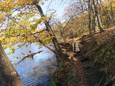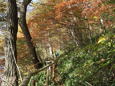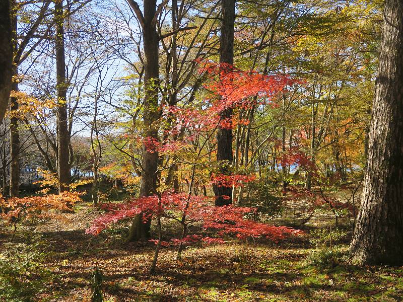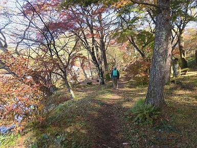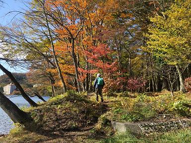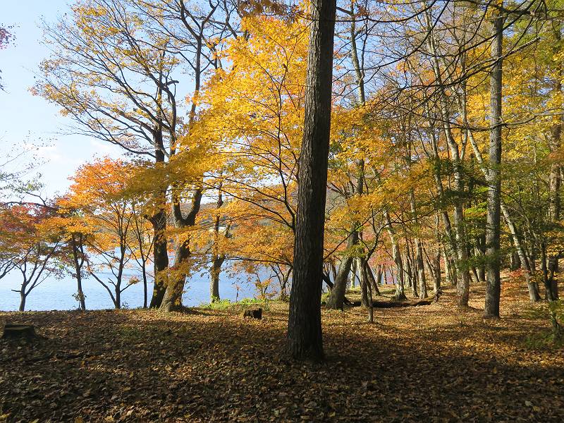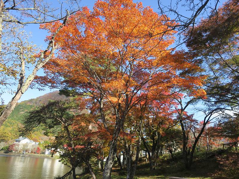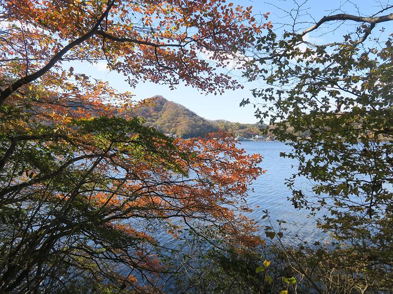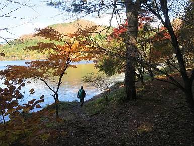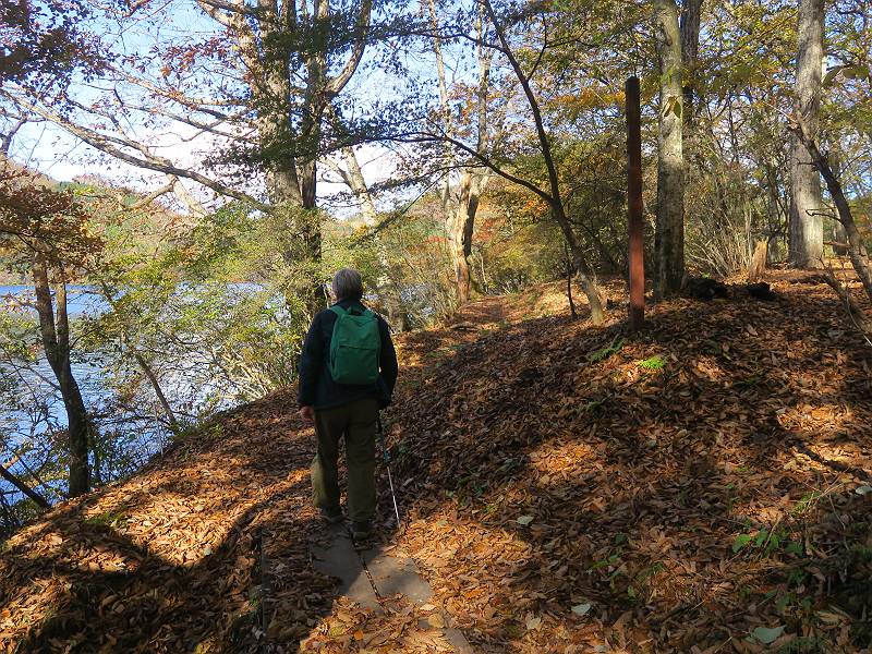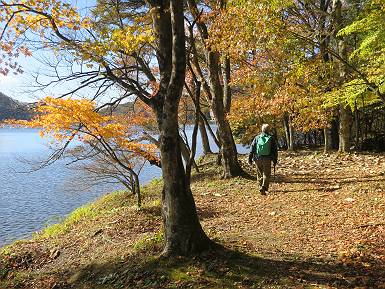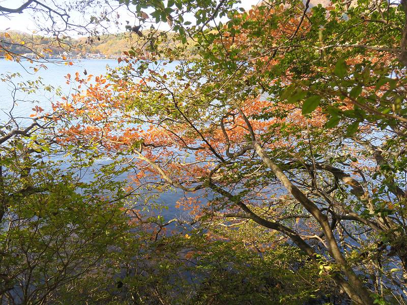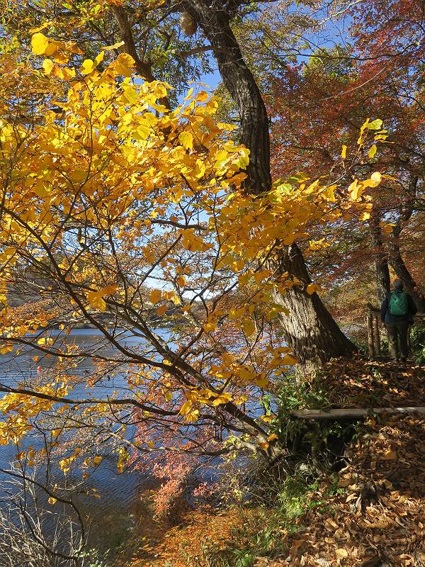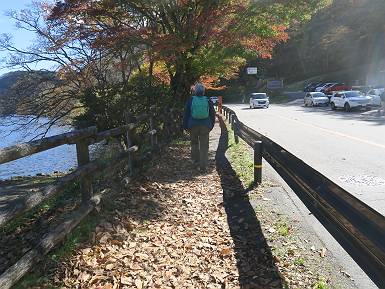 | 山行日 2024年11月7日 晴れ 2名 コース ビジターセンター駐車場→榛名湖温泉→湖畔の宿記念公園入口→ビジターセンター駐車場 大泉のYさんと榛名湖畔を歩く、紅葉が見頃と聞く。日光方面を予定していたが、4時前に中禅寺湖に着いてないと渋滞に巻き込まれて大へんらしい、そんな情報があるので榛名に変えた、でも道路が込み1時間余計にかかってしまった。天気は快晴、紅葉はモミジが見頃、Yさんの喜ぶ顔は終始満足そうだった。 9:47,ビジターセンター駐車場出発 榛名湖西に掃部ケ岳 南に天目山 キャンプ場から遊歩道に入る 楢ノ木に30-40cmのスズメバチの巣 掃部ケ岳 掃部ケ岳 広葉樹の林を抜ける 烏帽子ケ岳 鬢櫛山 10:20,烏帽子ケ岳を正面に榛名湖温泉付近 榛名富士、相馬山 この辺で休憩20分 南側に回り込んで・・・・・ ほどなく駐車場に戻る、11:36 お疲れさまでした、総所要時間は1時間49分、湖畔の紅葉は見頃でした。 8080221の雑記帳(続)へ 記録一覧へ |